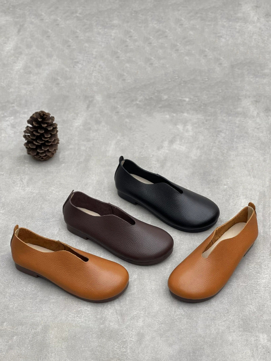 Zapatos casuales de tacón bajo de cuero suave para mujer
