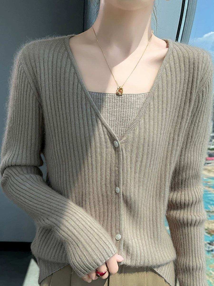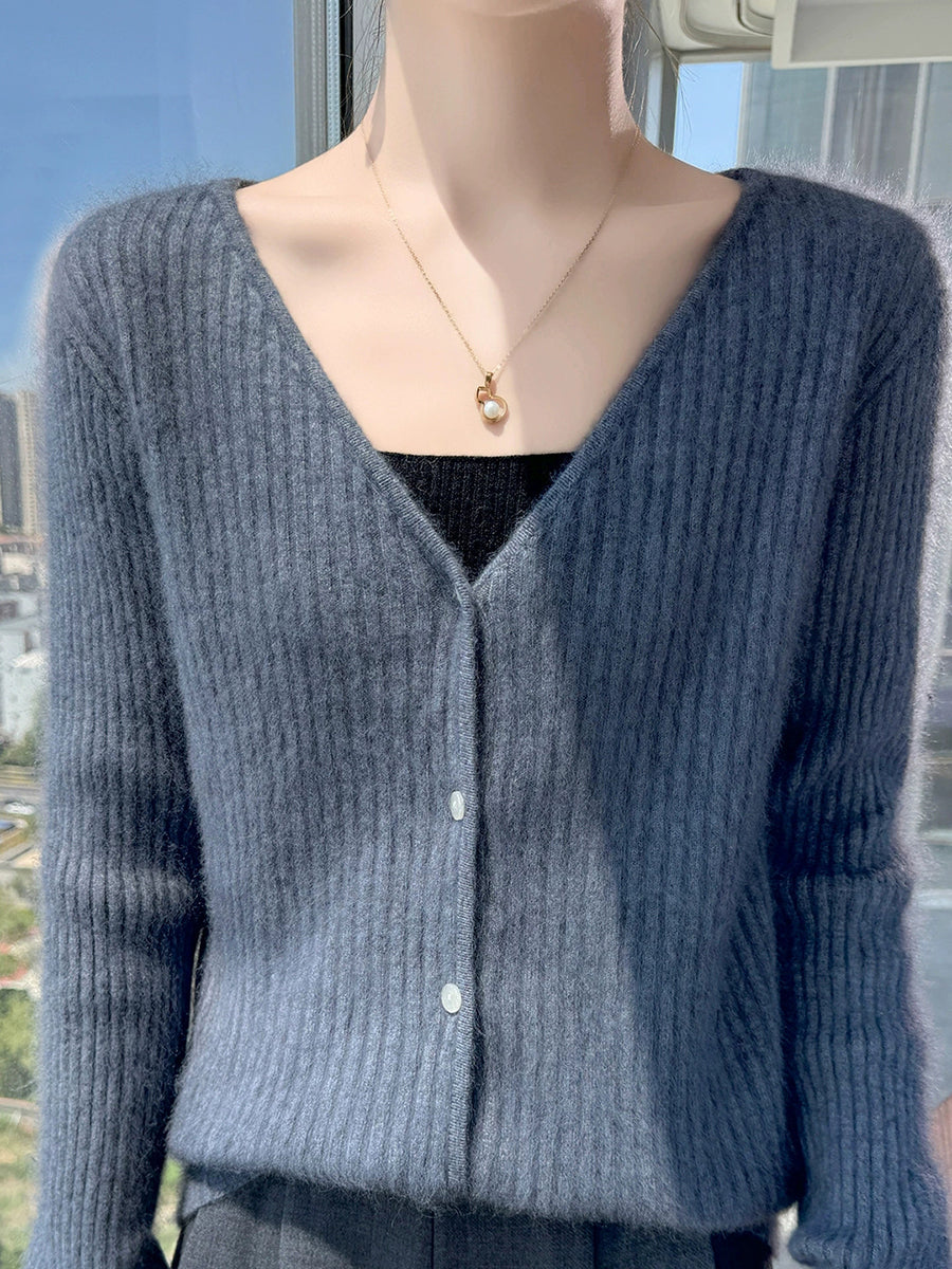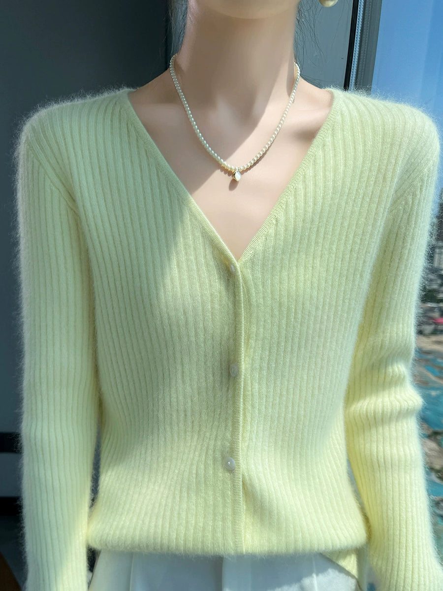 Suéter casual de primavera con cuello en V y color puro para mujer