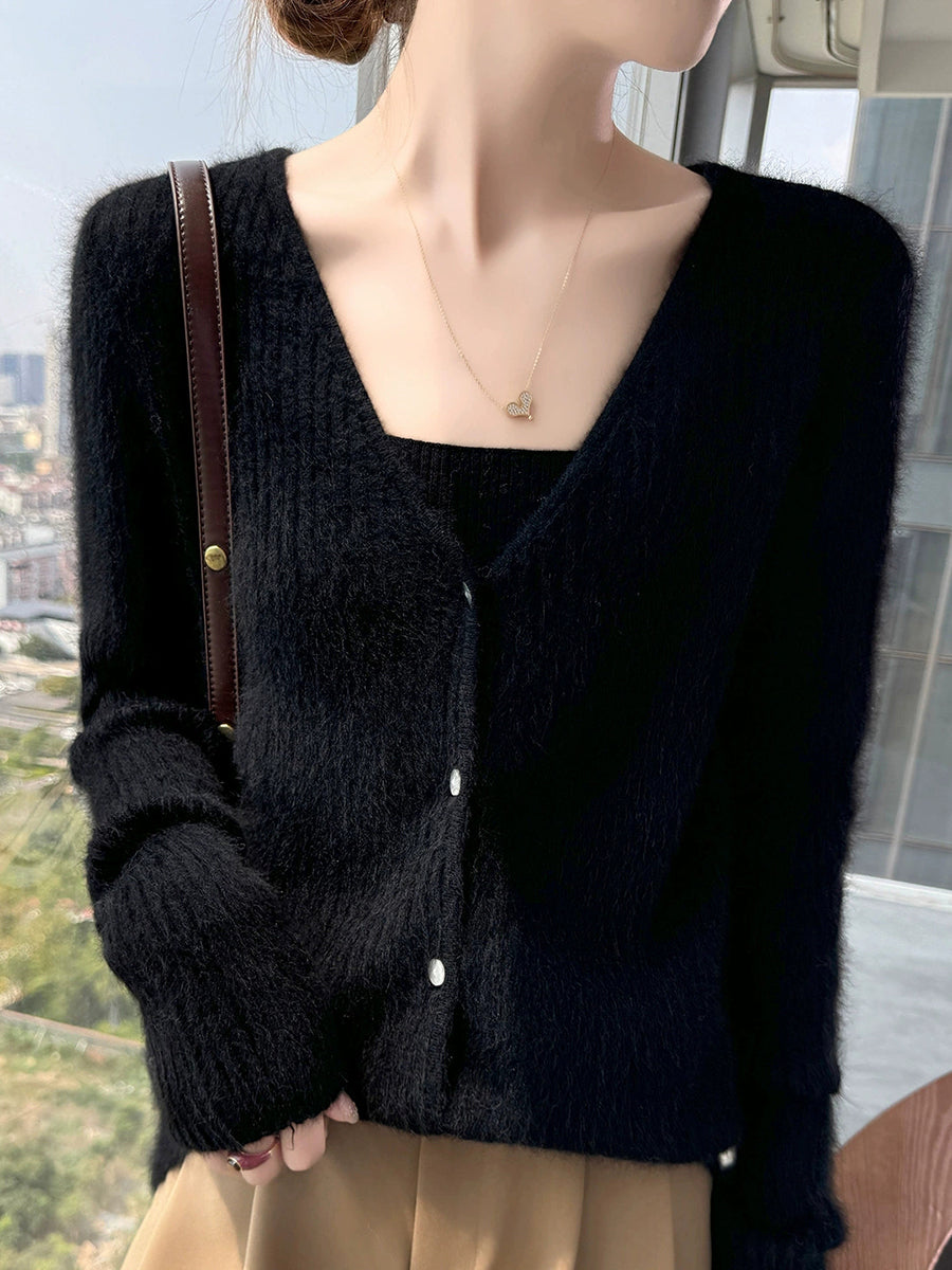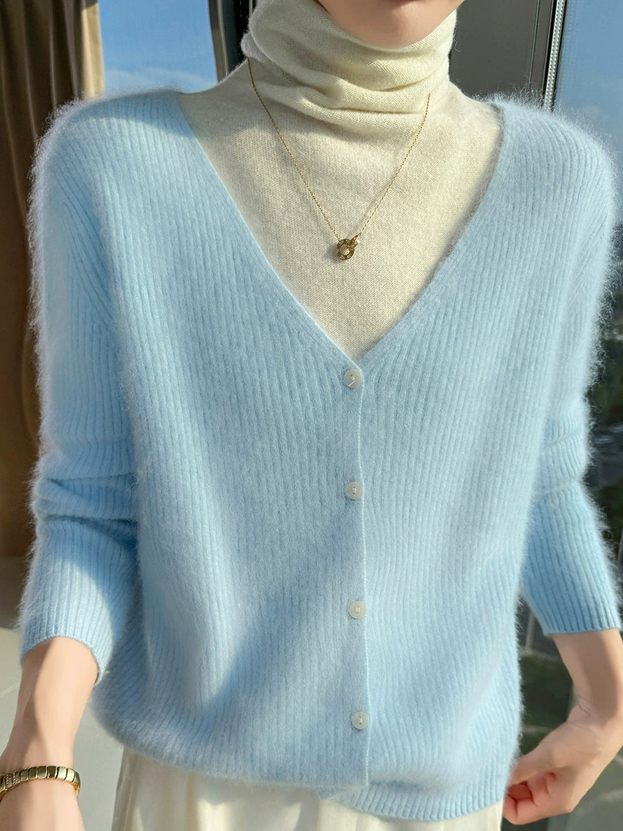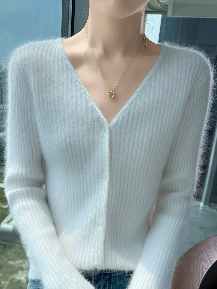 Suéter casual de primavera con cuello en V y color puro para mujer