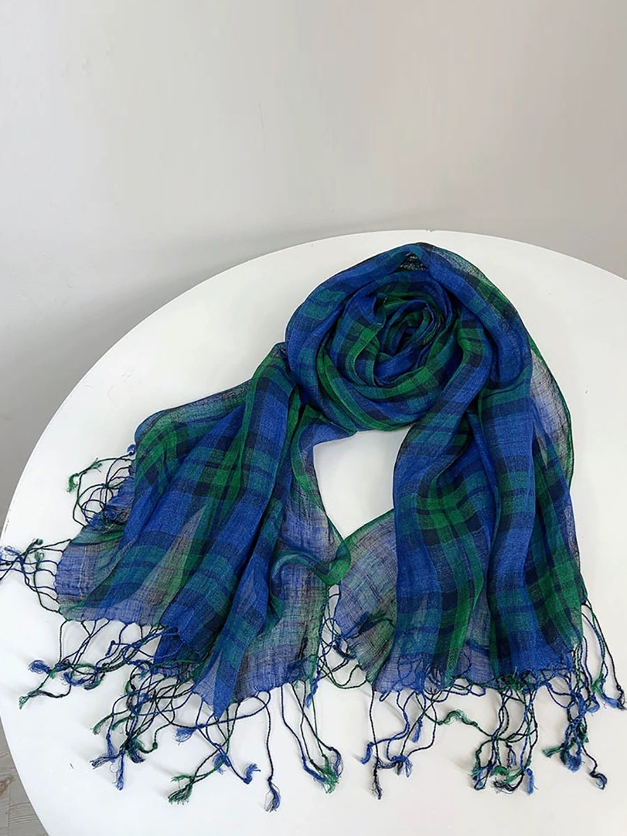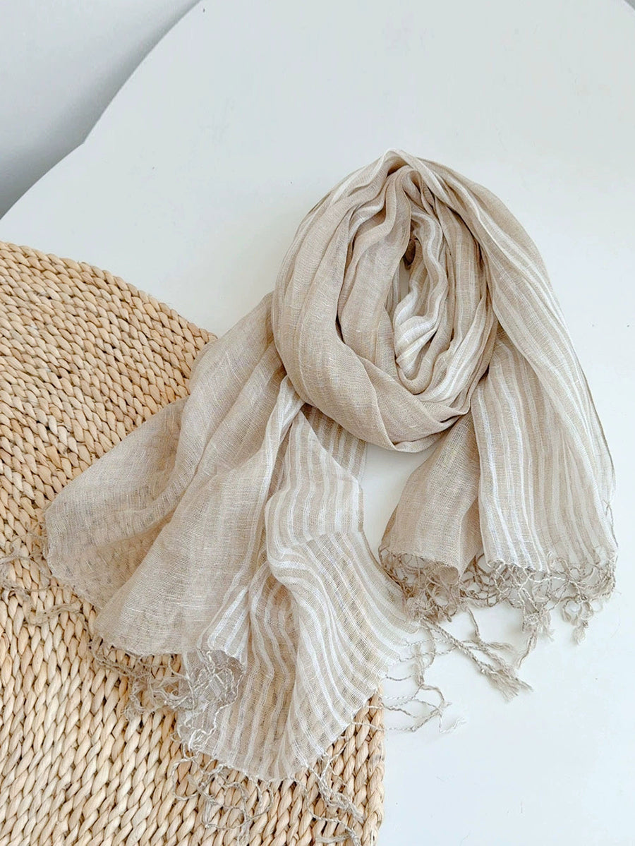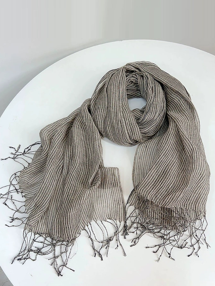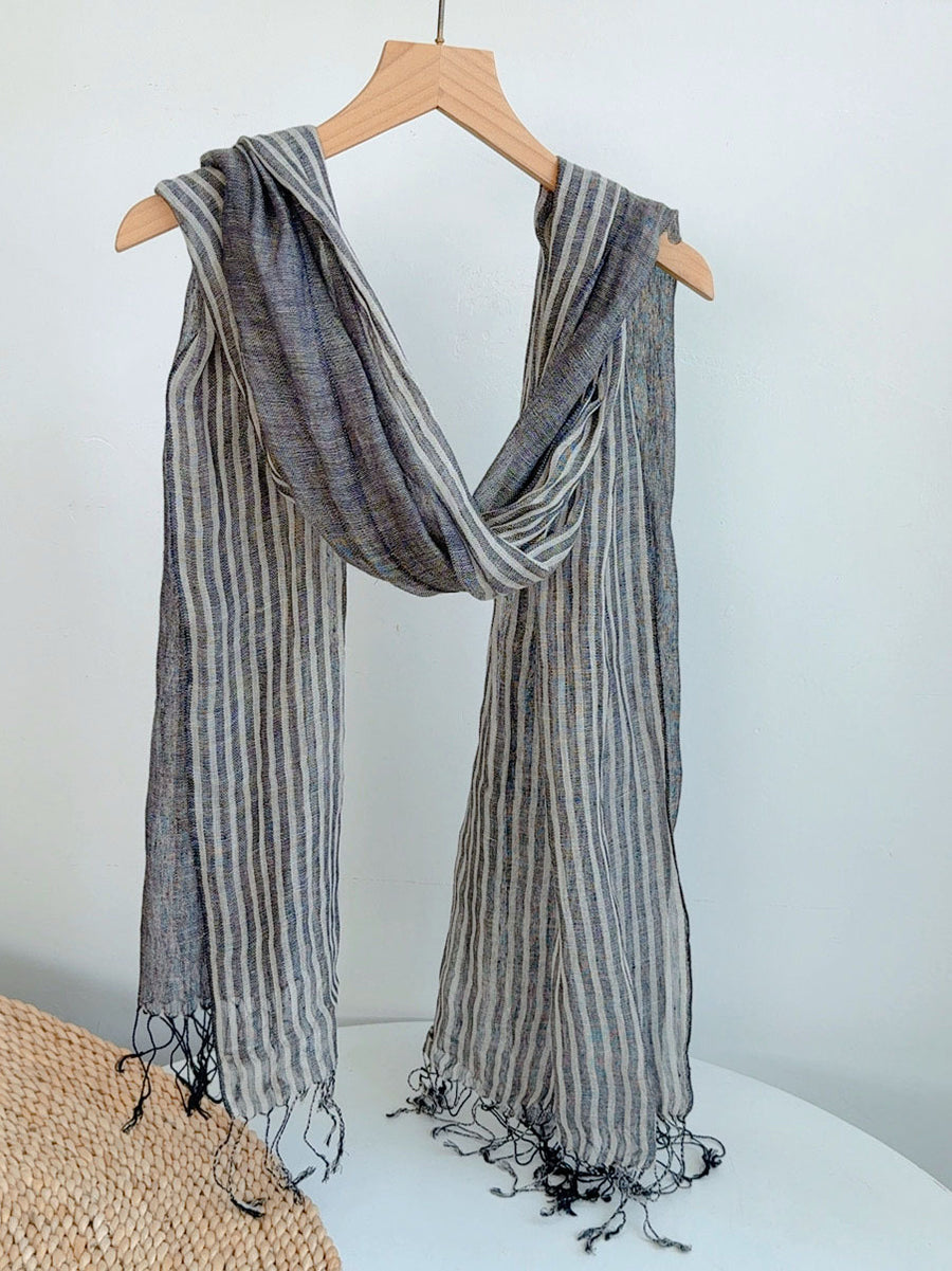 Bufanda chal informal con borlas suaves a rayas para mujer