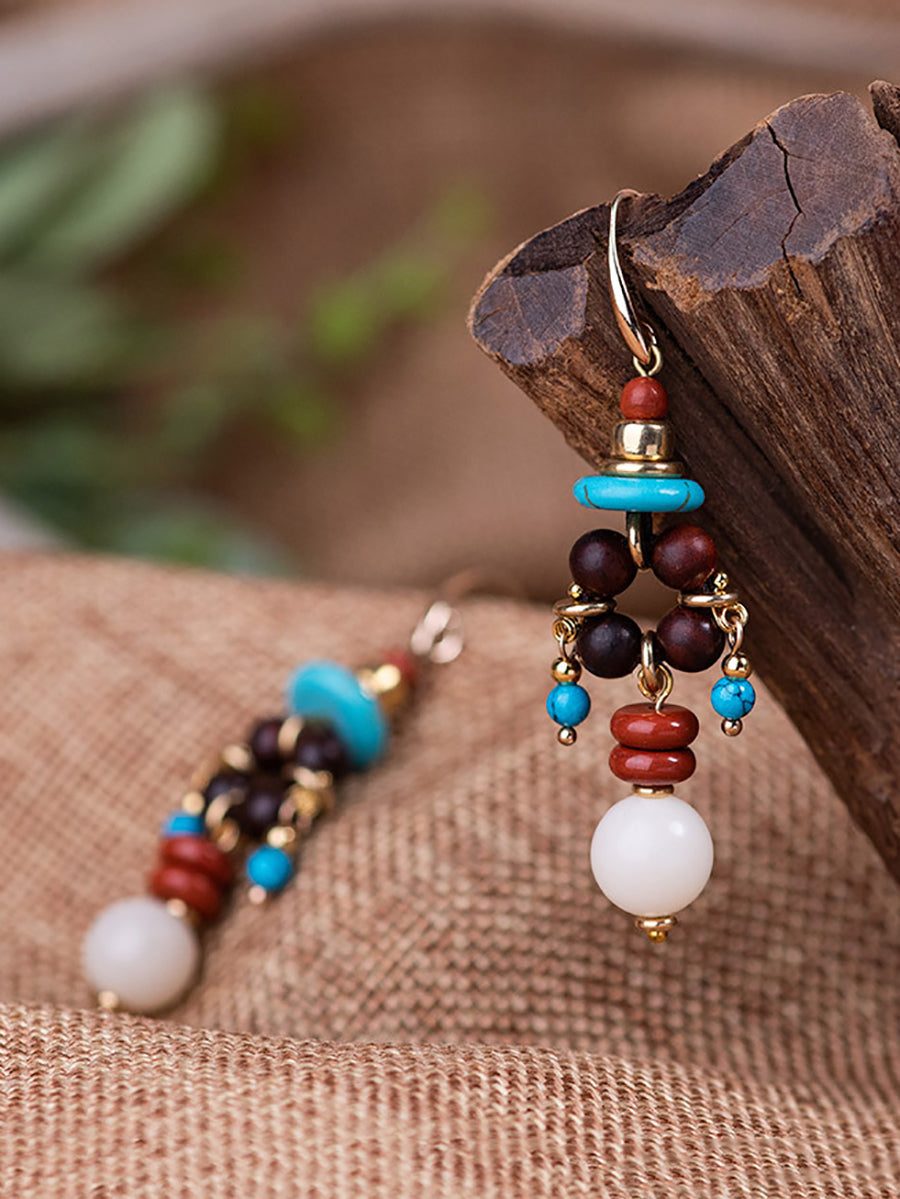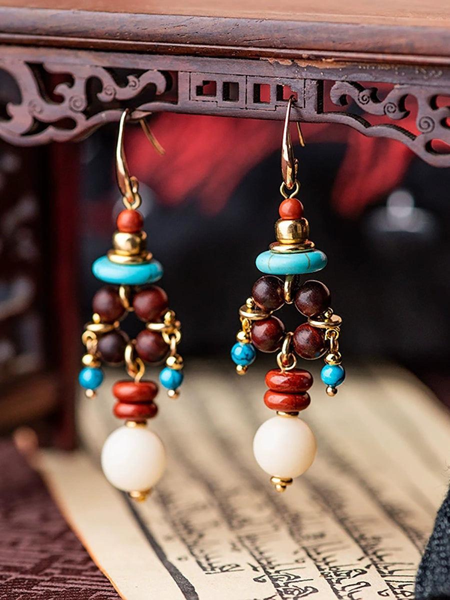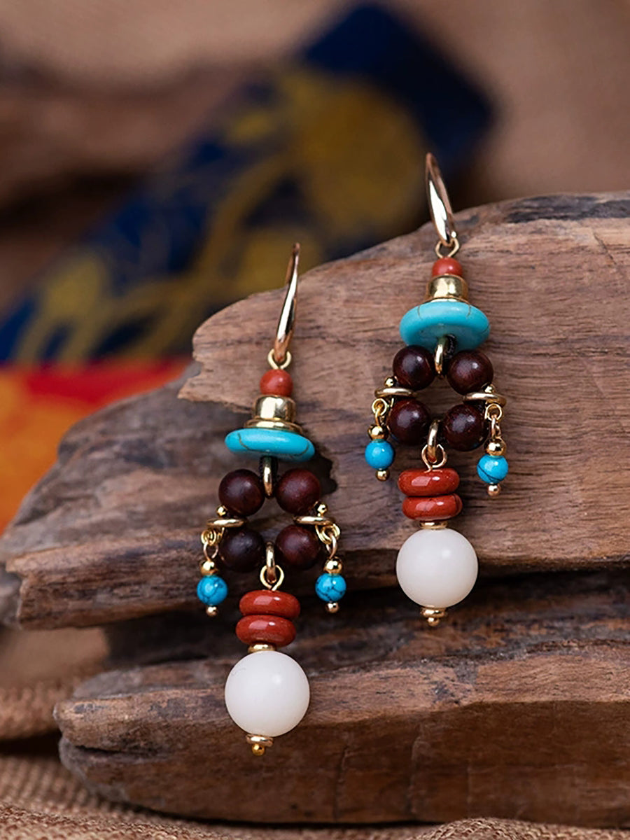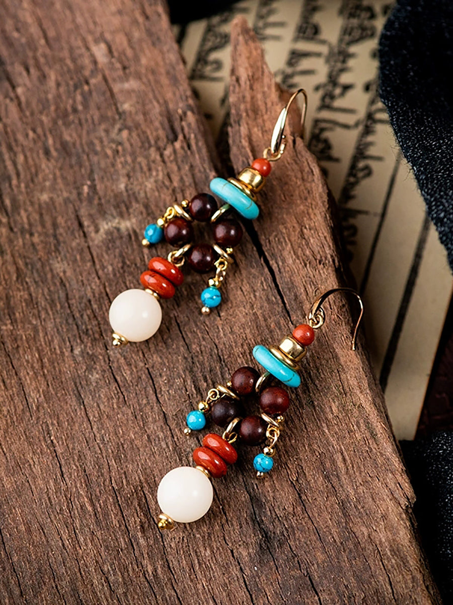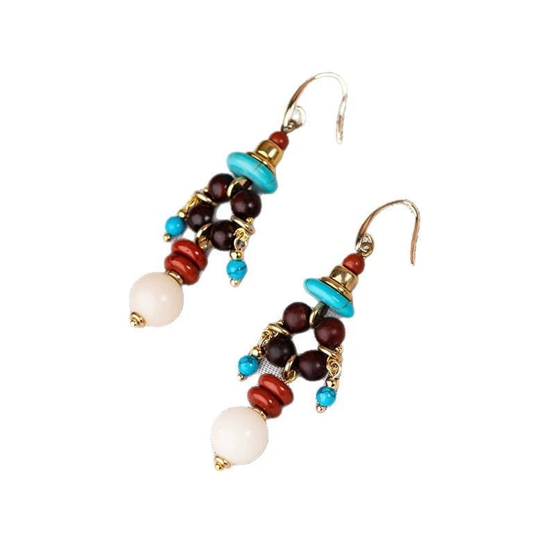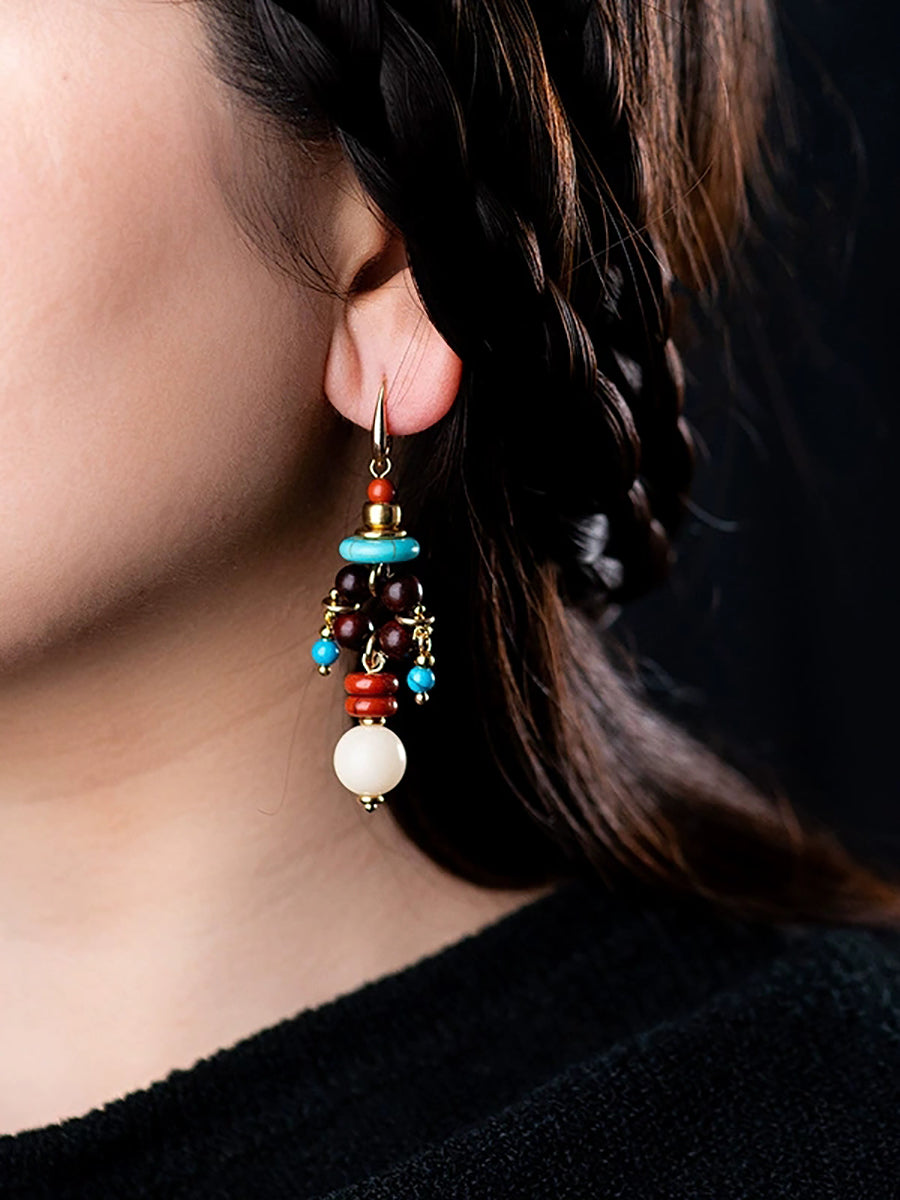 Pendientes de borlas de aleación con cuentas étnicas para mujer