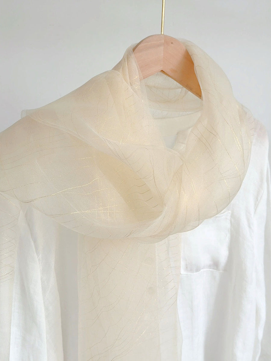 Bufanda tipo chal fino de hilo dorado para mujer