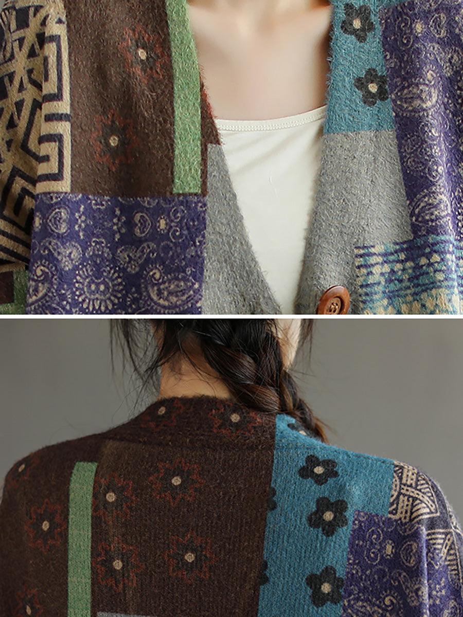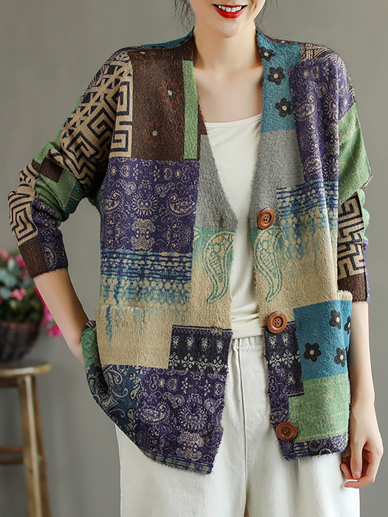 Abrigo tipo suéter de manga larga con cuello en V y costuras de bolsillo de talla grande