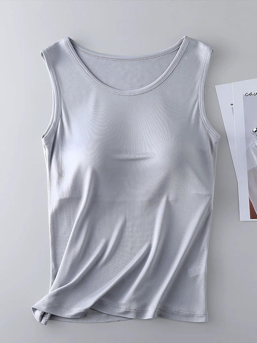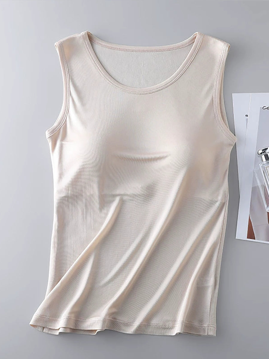 Chaleco de mujer de color puro con cuello redondo y almohadillas para sujetador