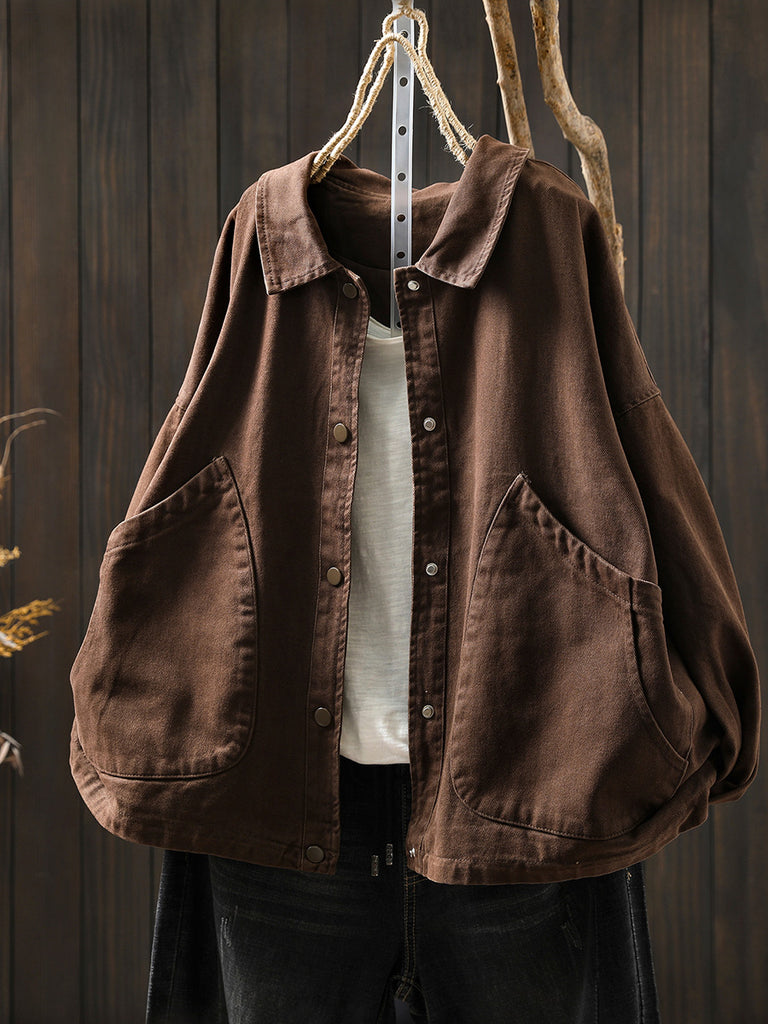 Camisa de mujer 100 % algodón con cuello vuelto y color puro