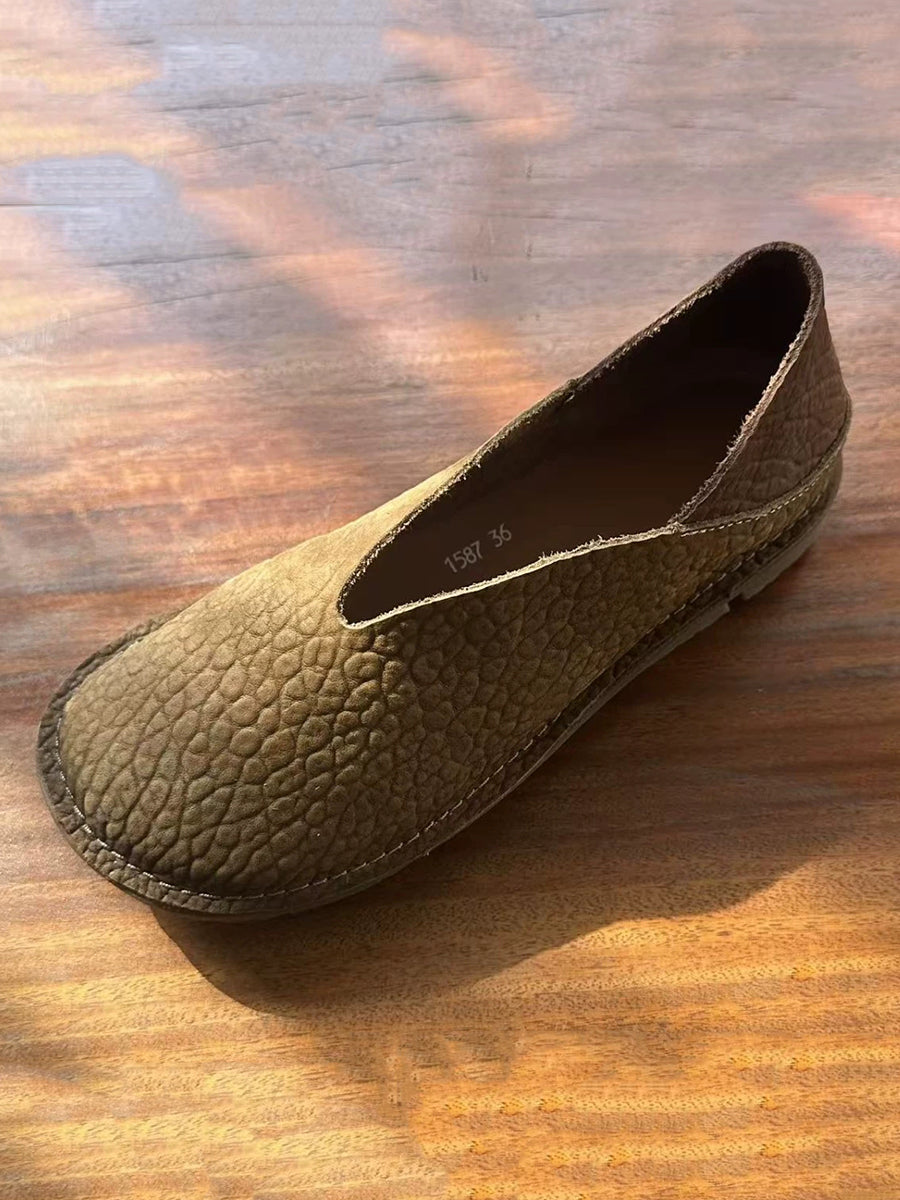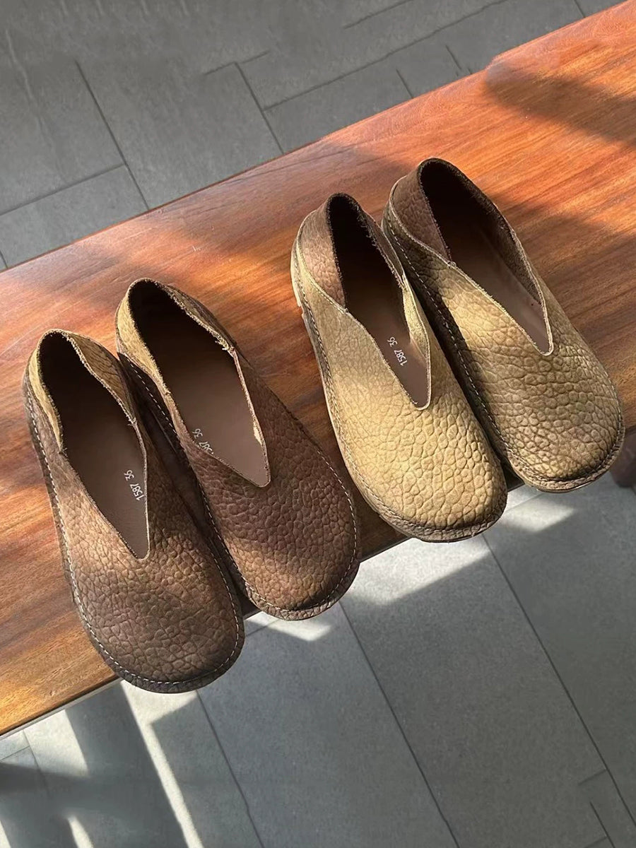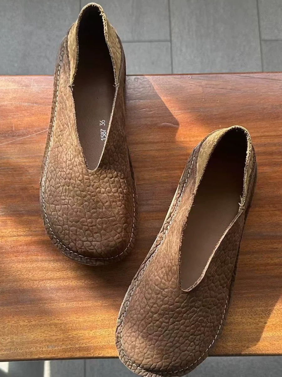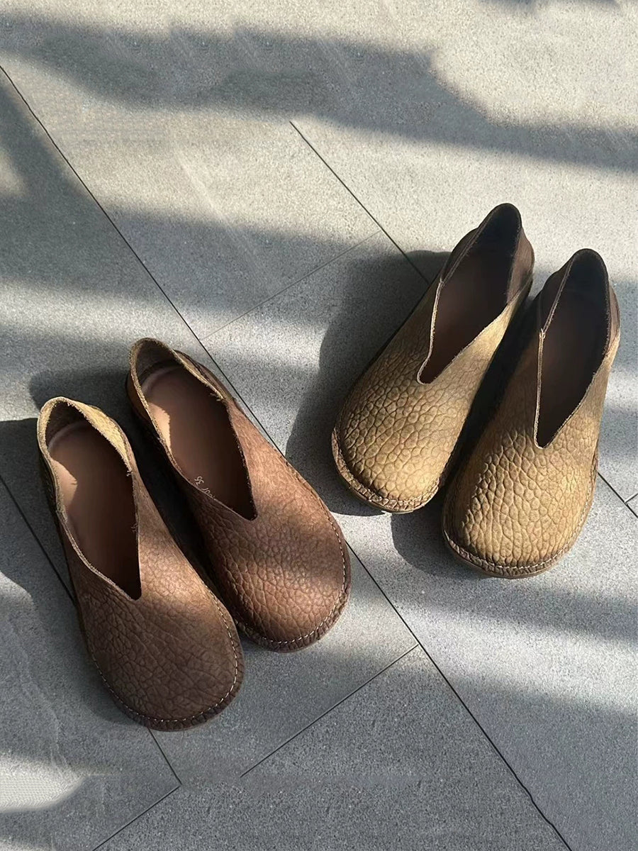 Zapatos planos retro de piel auténtica con empalmes para mujer