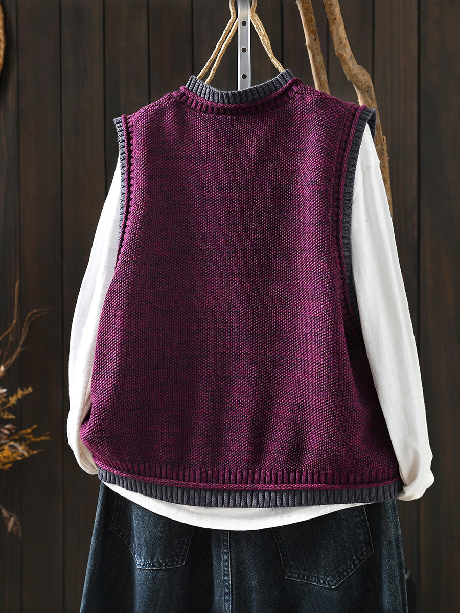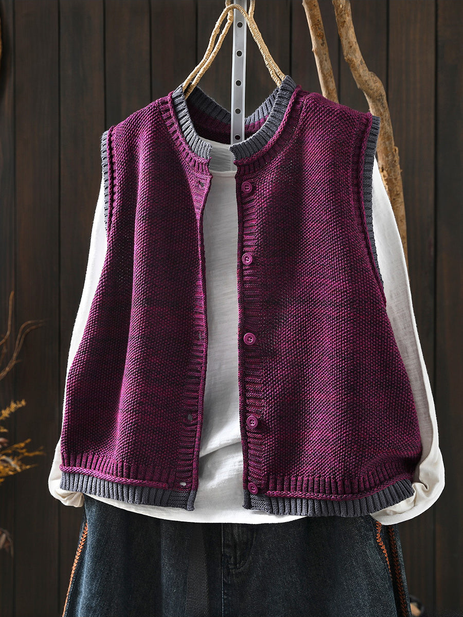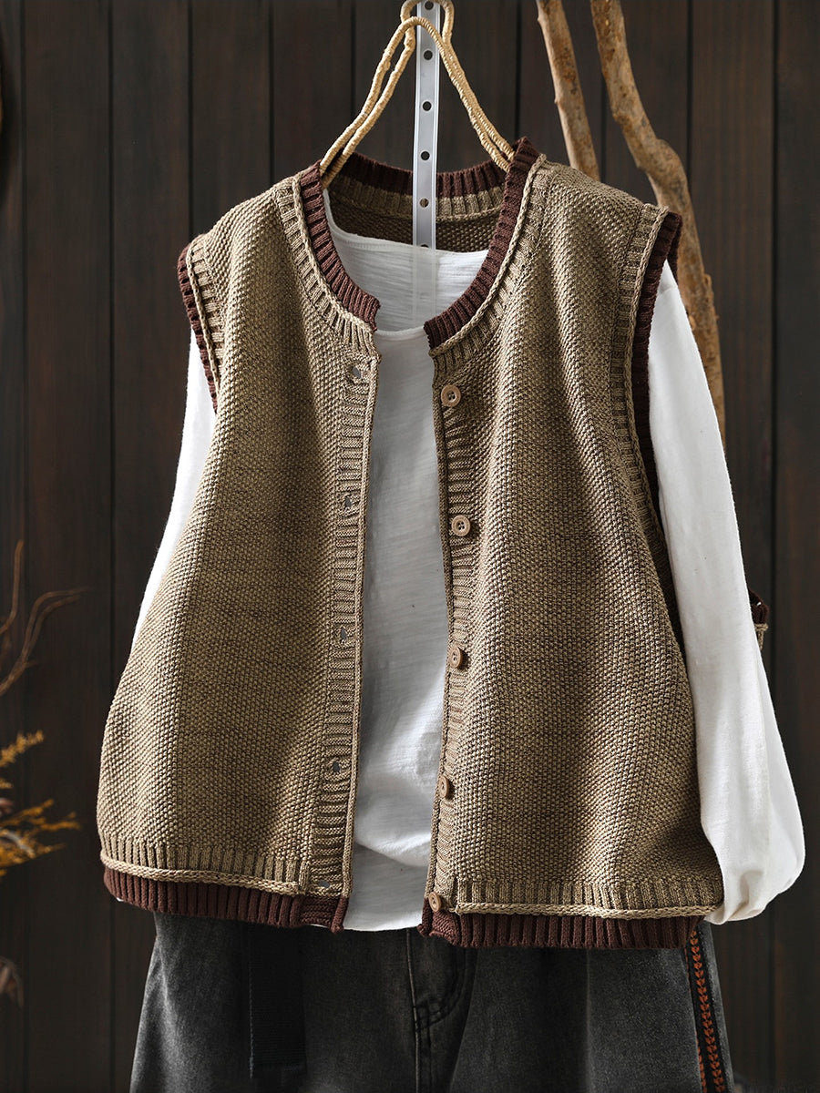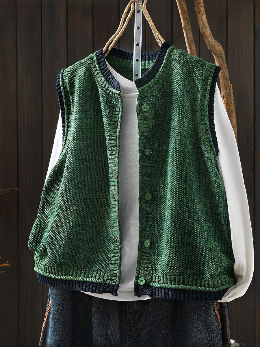 Chaleco de punto con cuello redondo y bloques de color artístico de primavera para mujer