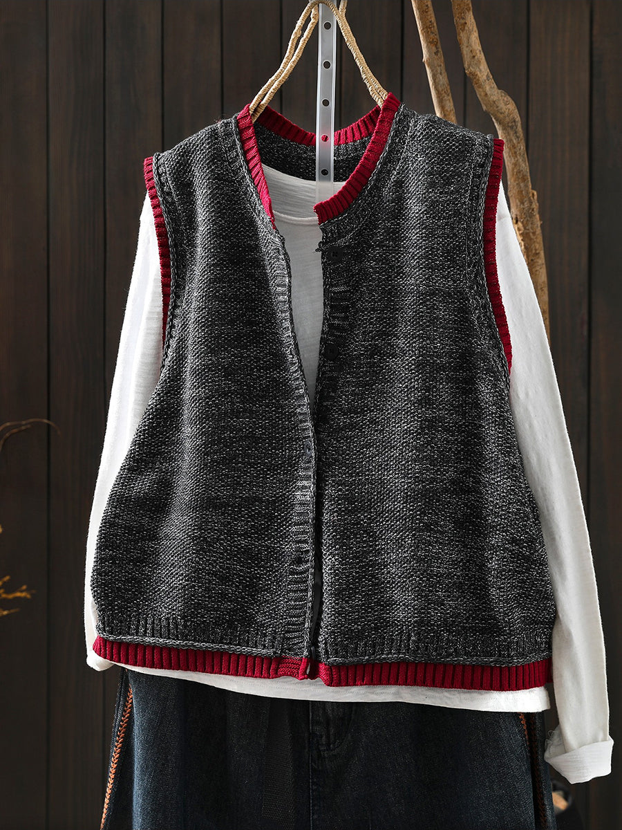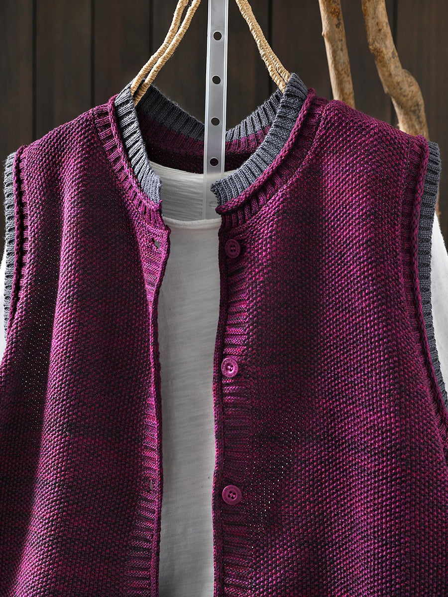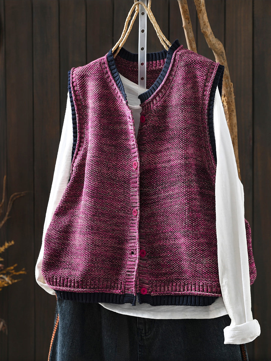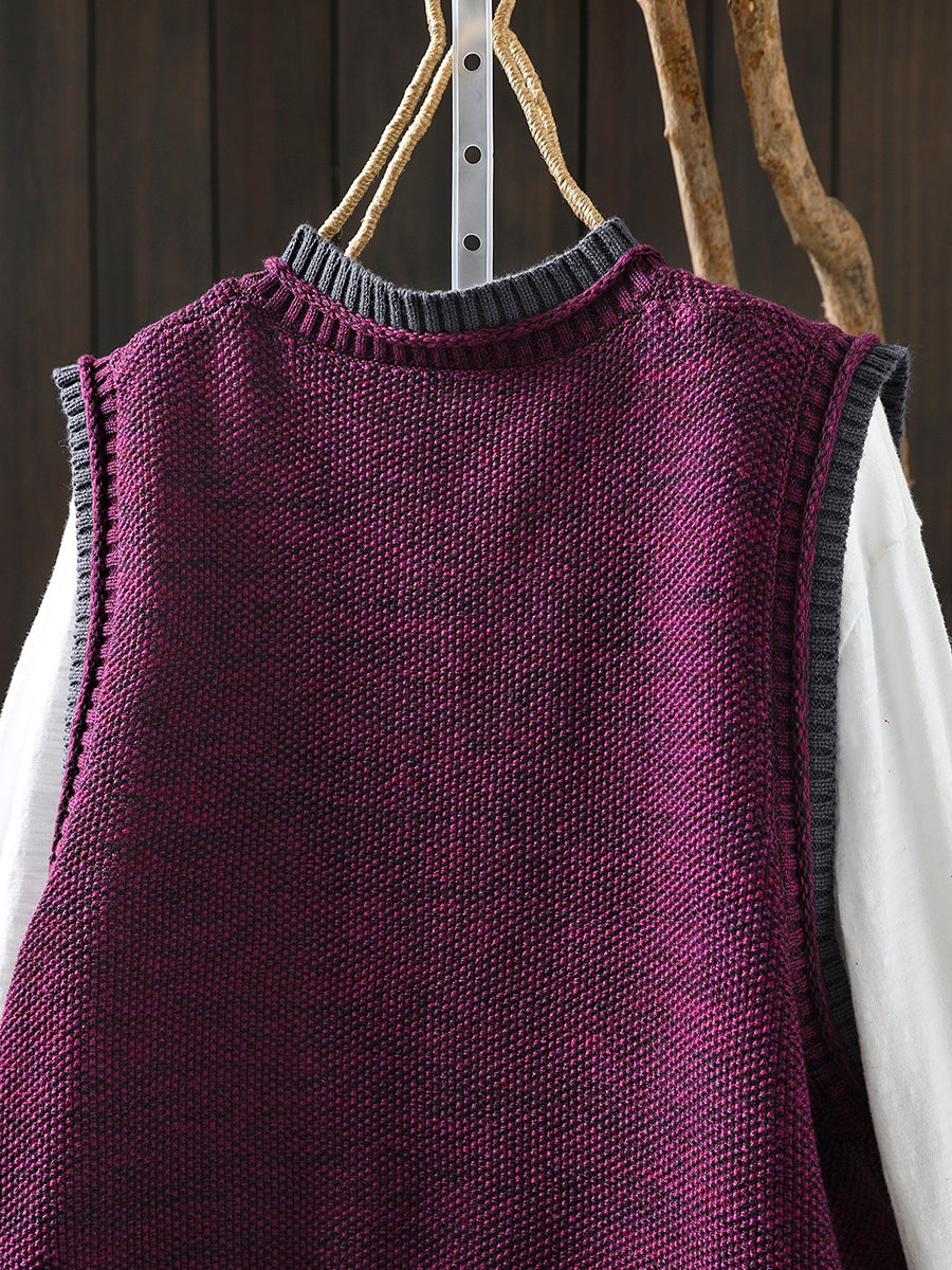 Chaleco de punto con cuello redondo y bloques de color artístico de primavera para mujer