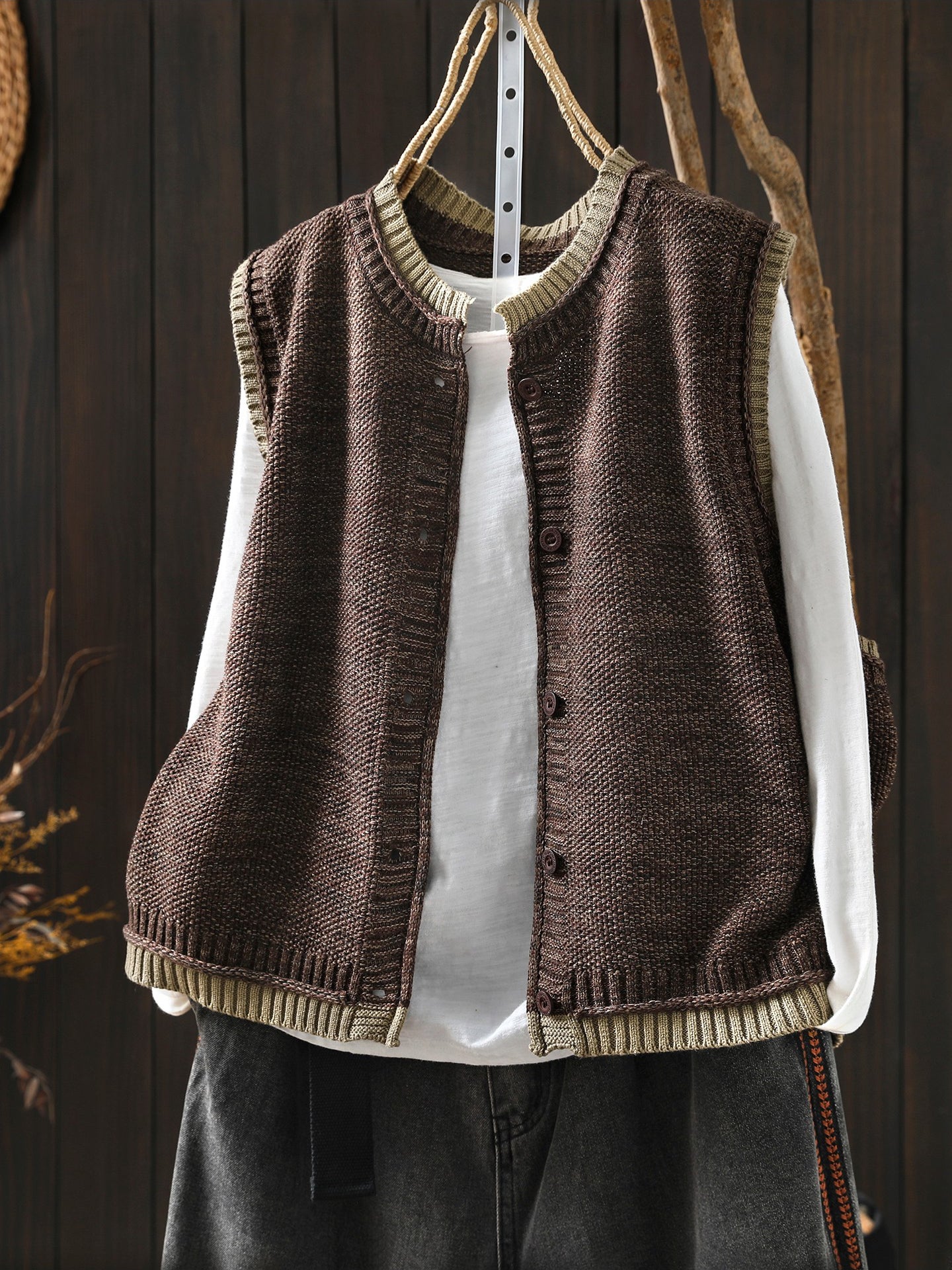 Este chaleco de punto combina un 55 % de algodón con un 45 % de acrílico para una óptima regulación de la temperatura durante los meses más fríos. El distintivo dobladillo ondulado artístico realza el discreto diseño de cuello redondo, ofreciendo una estética refinada que se adapta a la perfección de la primavera al otoño. La mezcla de fibras proporciona una excelente durabilidad y facilidad de uso, lo que lo convierte en una prenda esencial para tu armario de temporada.