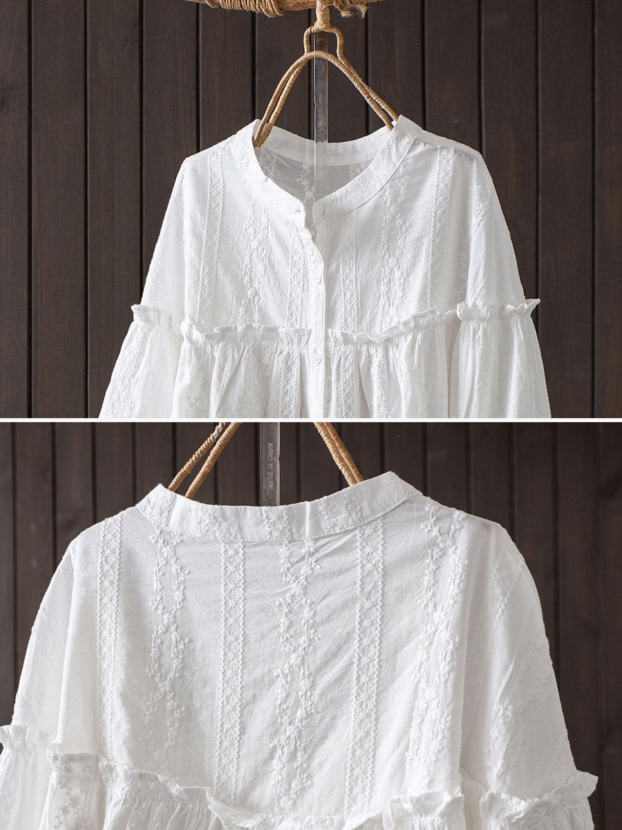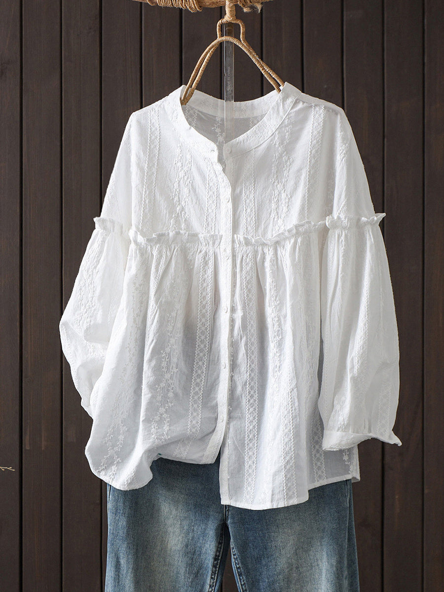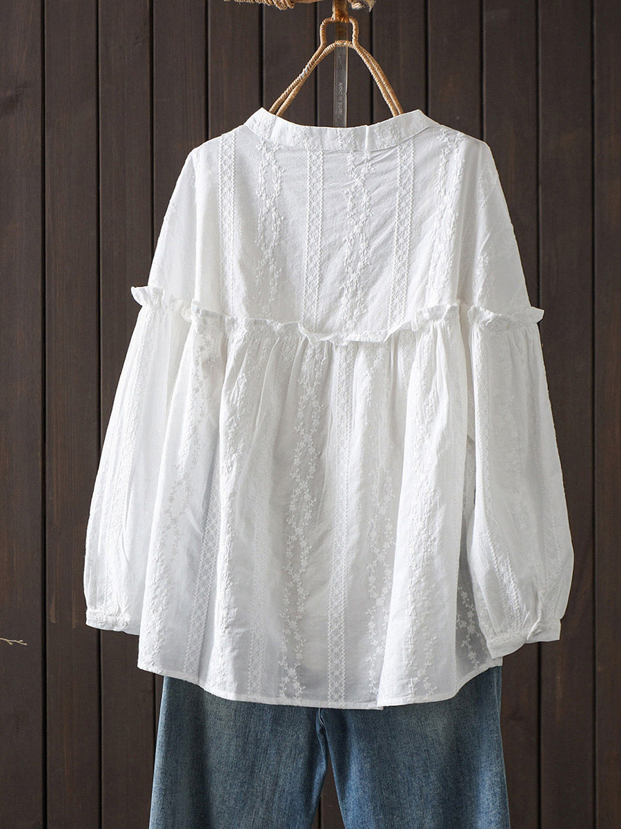 Blusa de cuello alto con bordado artístico de primavera para mujer