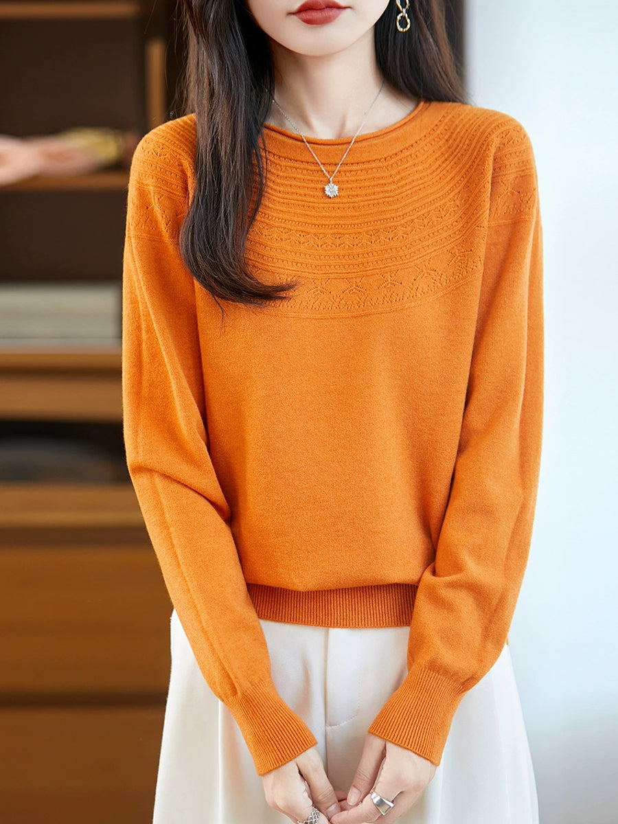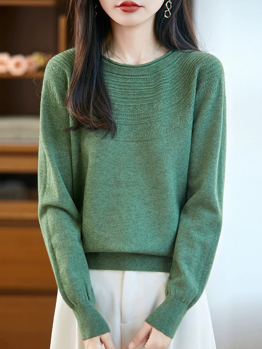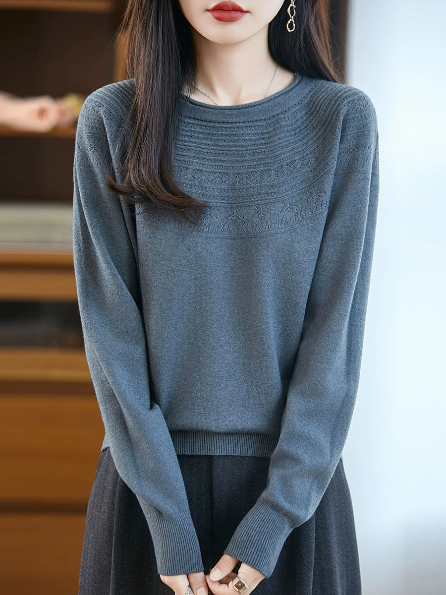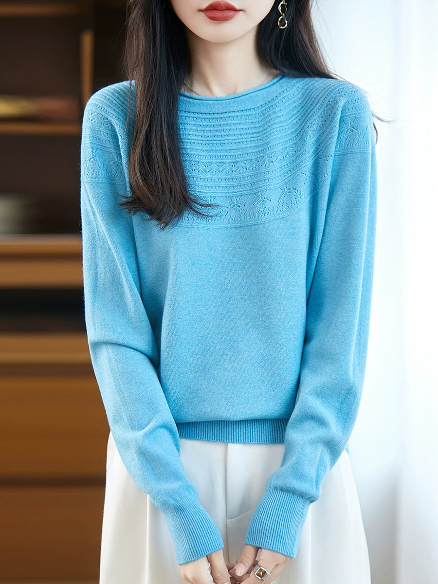 Suéter de punto artístico de primavera para mujer con cuello redondo