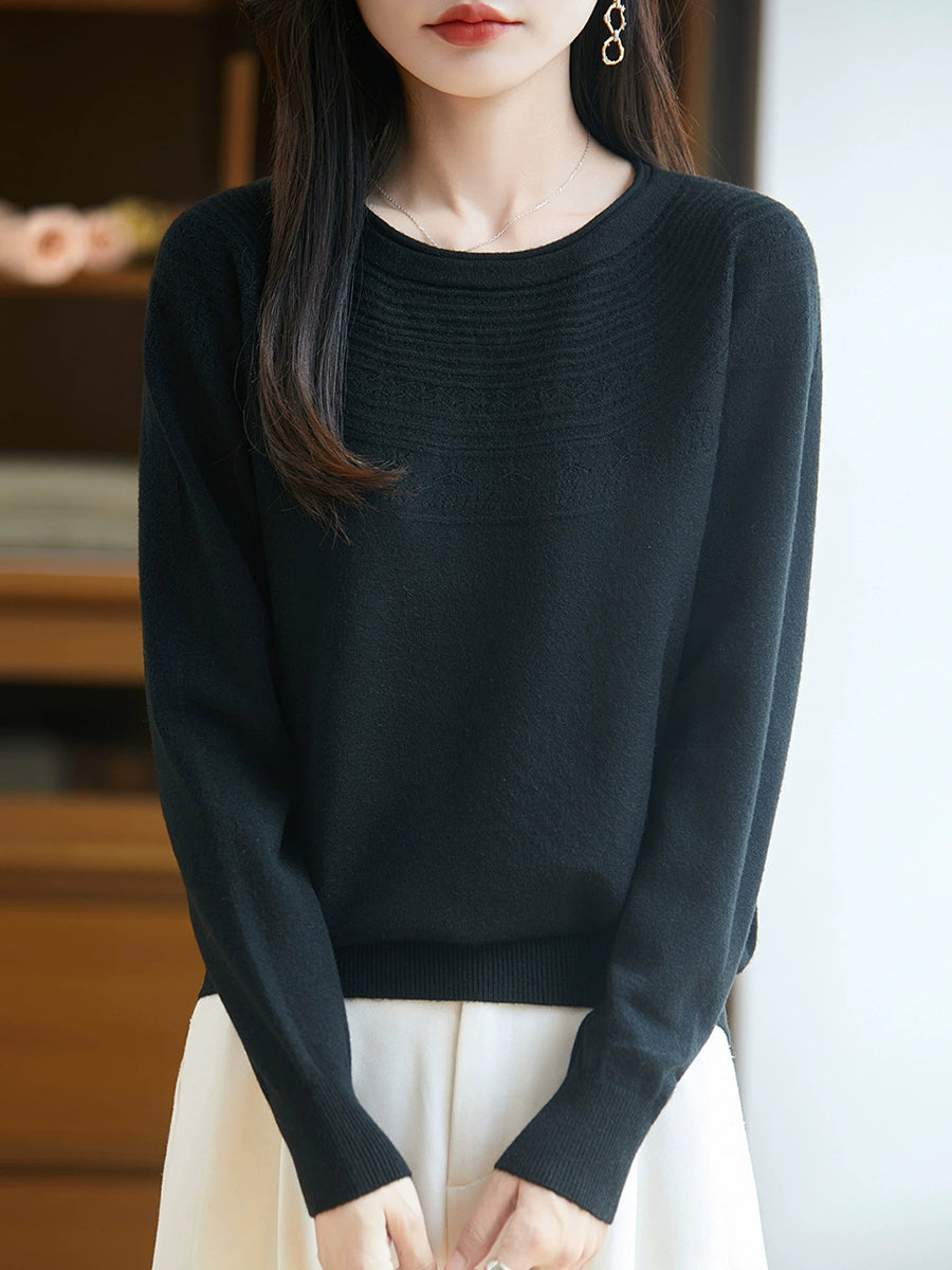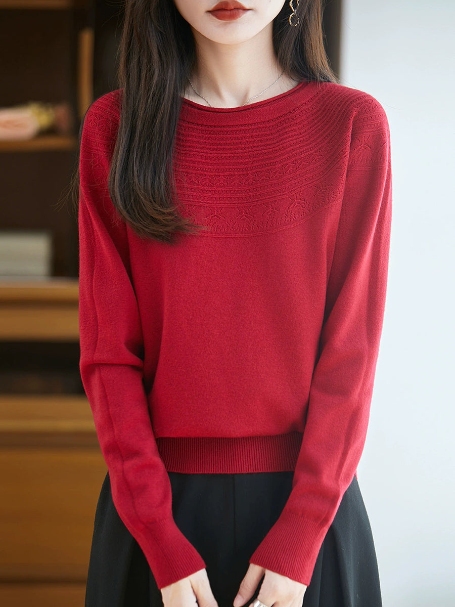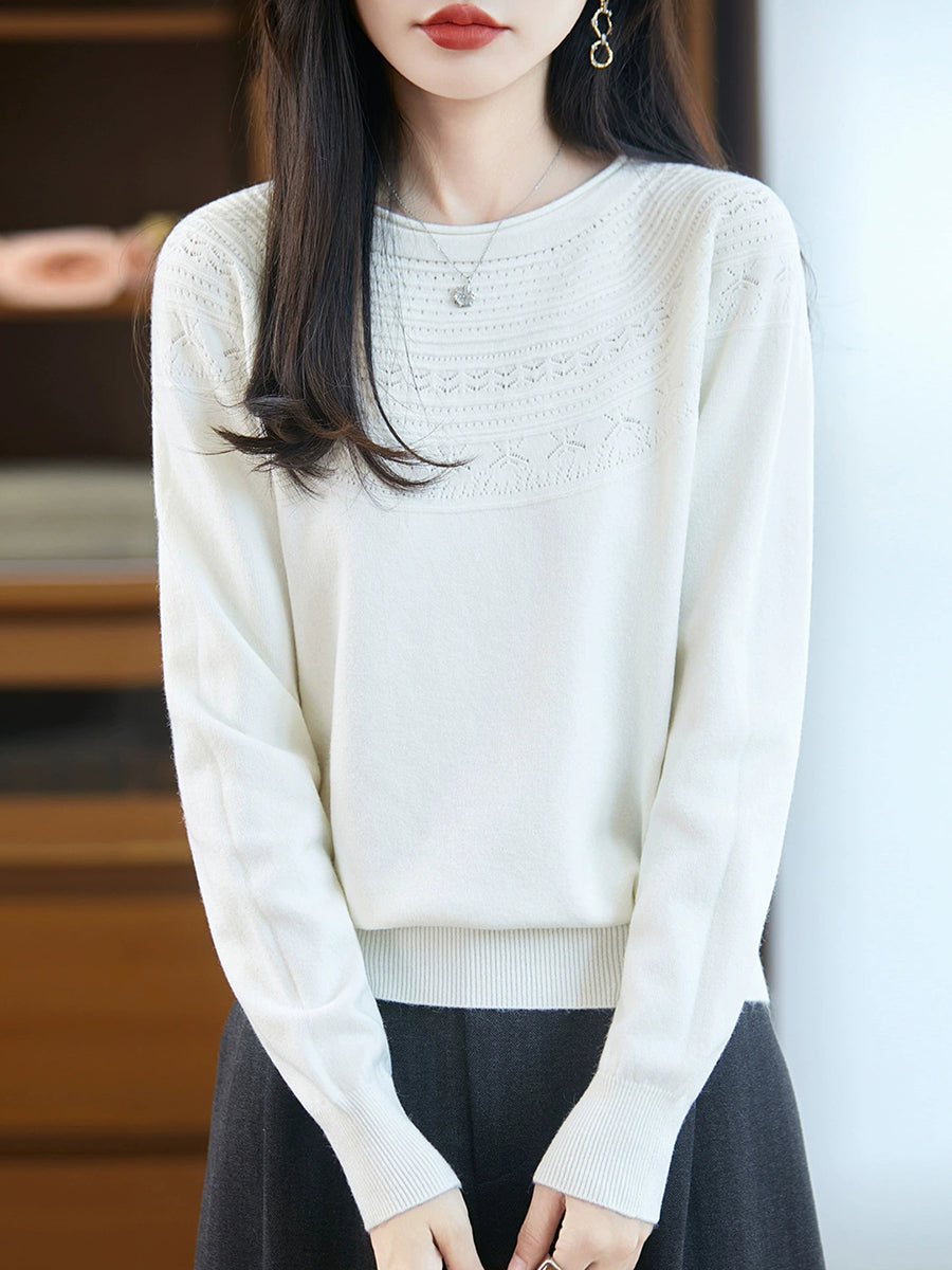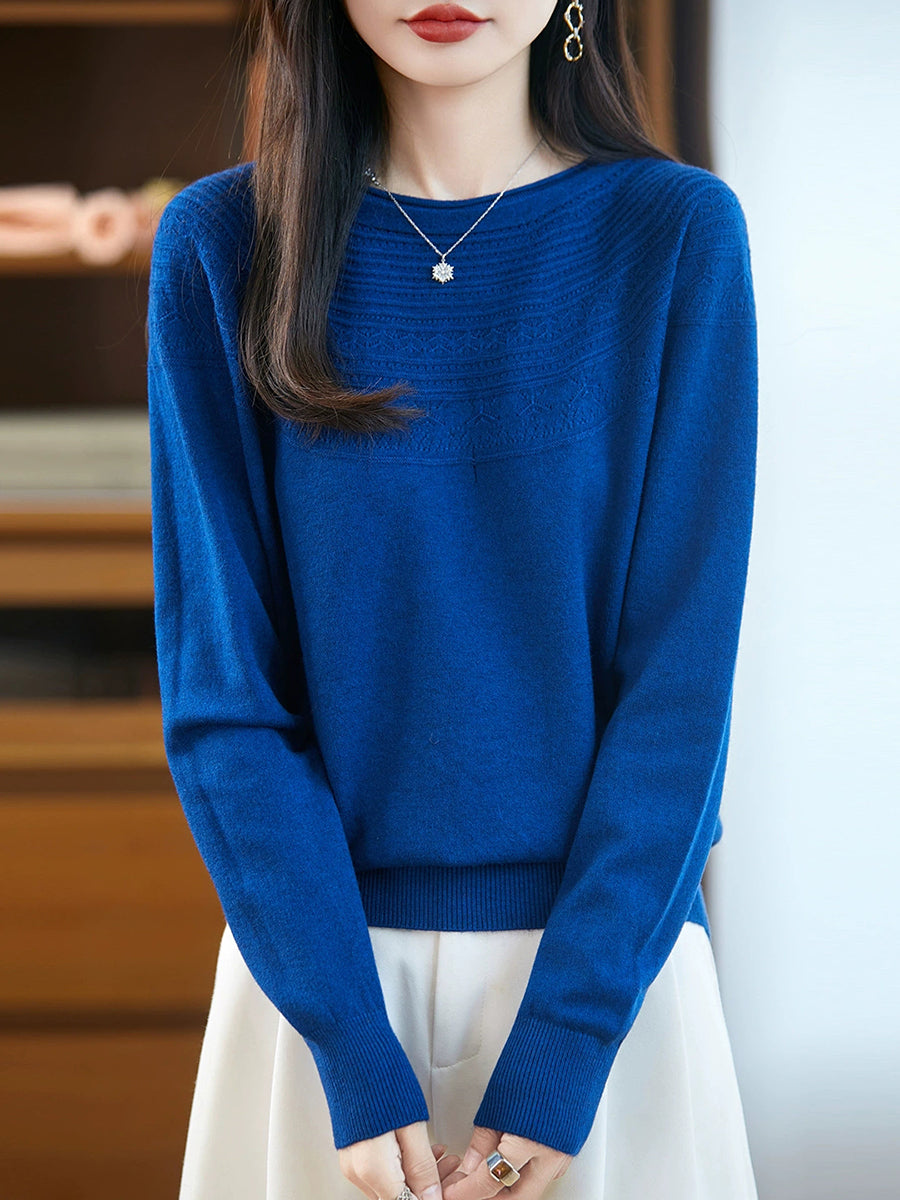 Suéter de punto artístico de primavera para mujer con cuello redondo