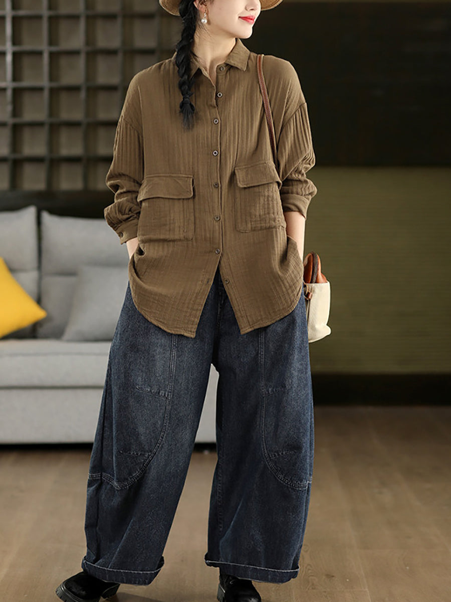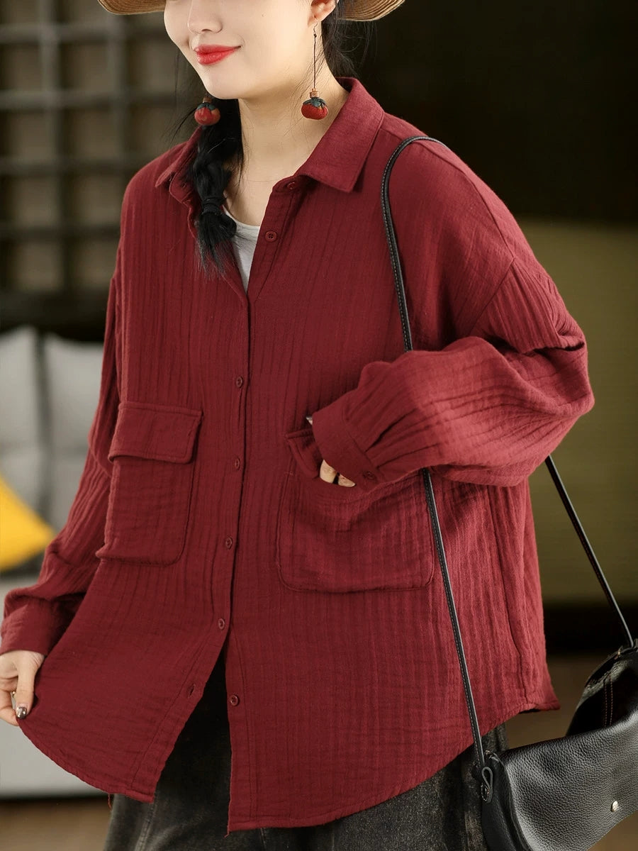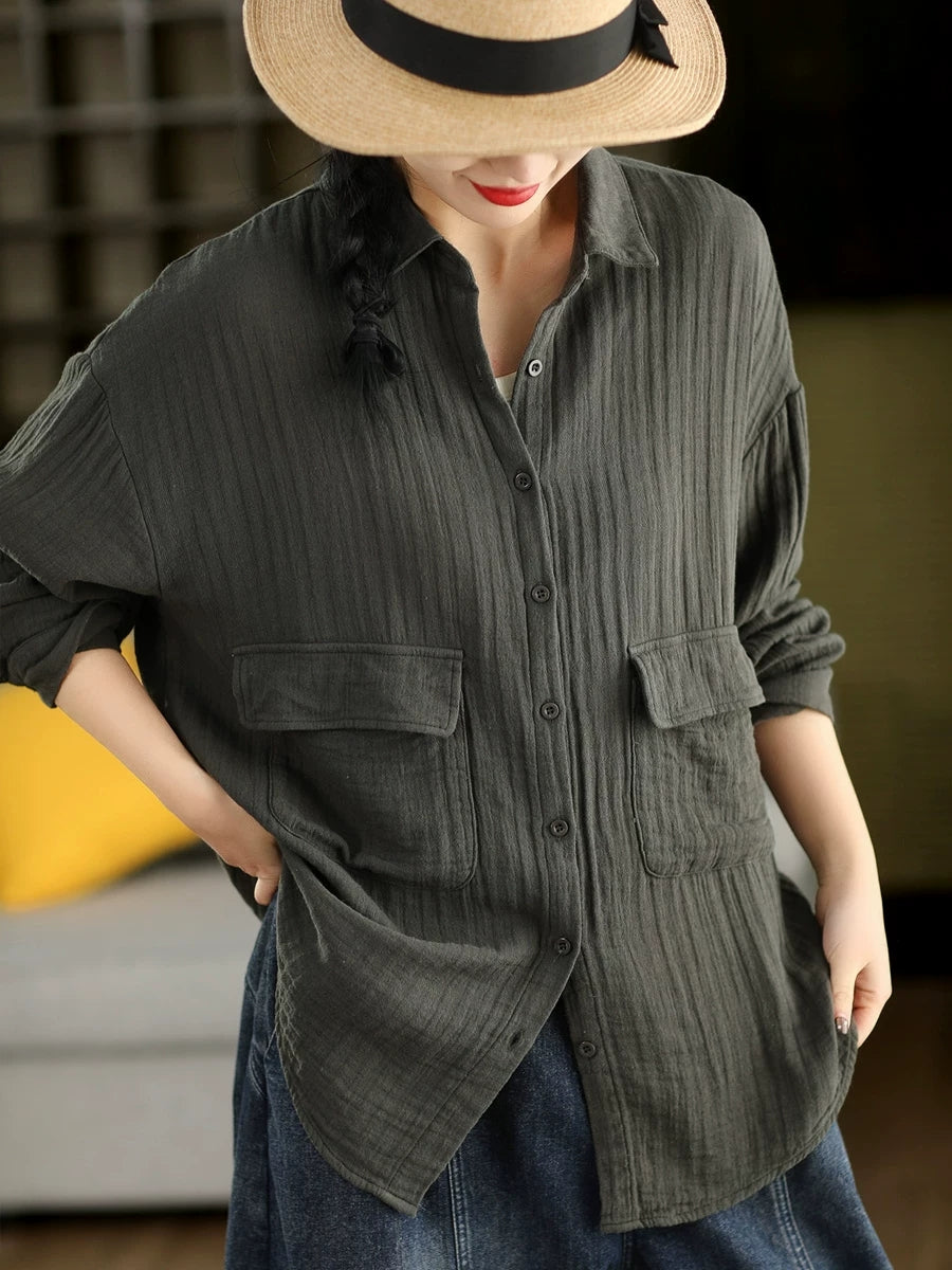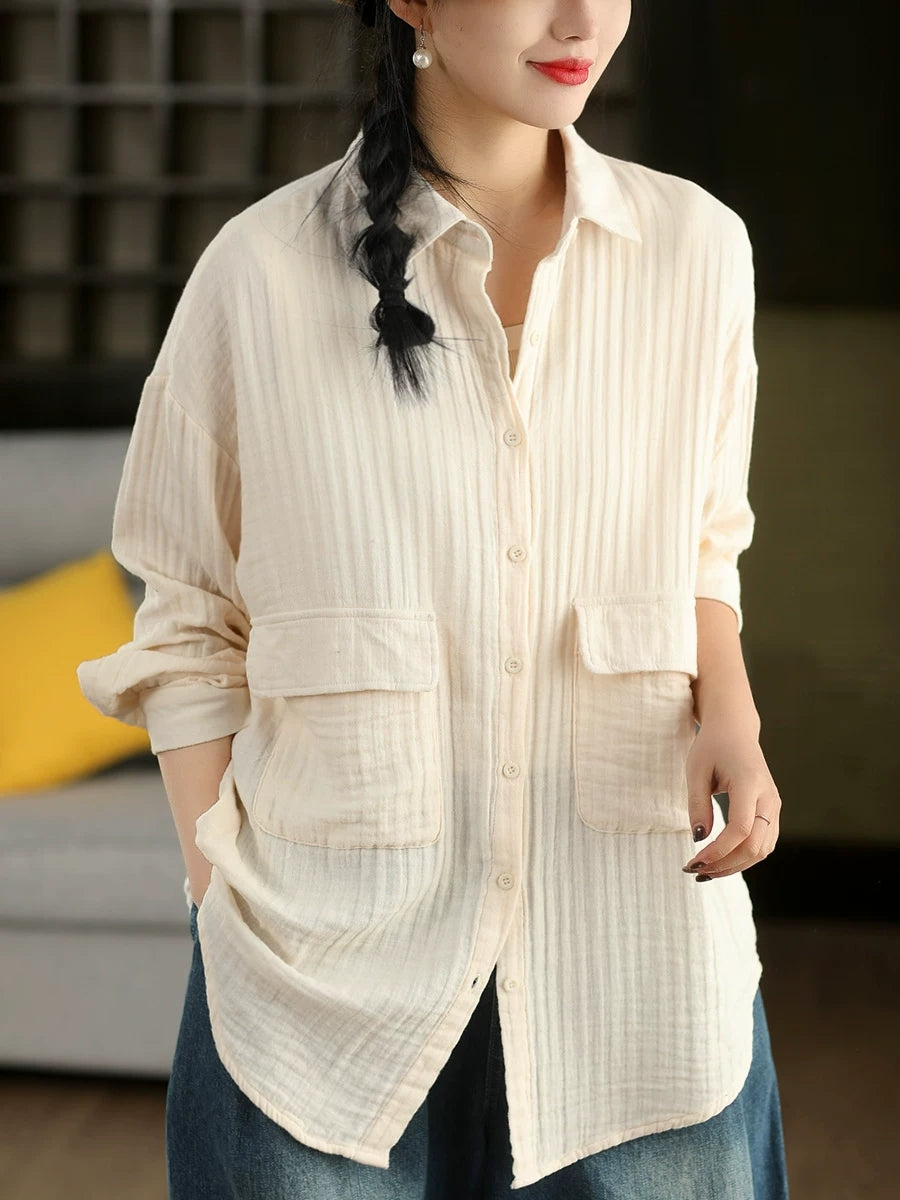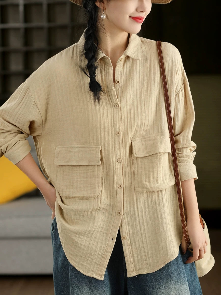 Camisa de primavera para mujer, 100 % algodón, color puro y artístico