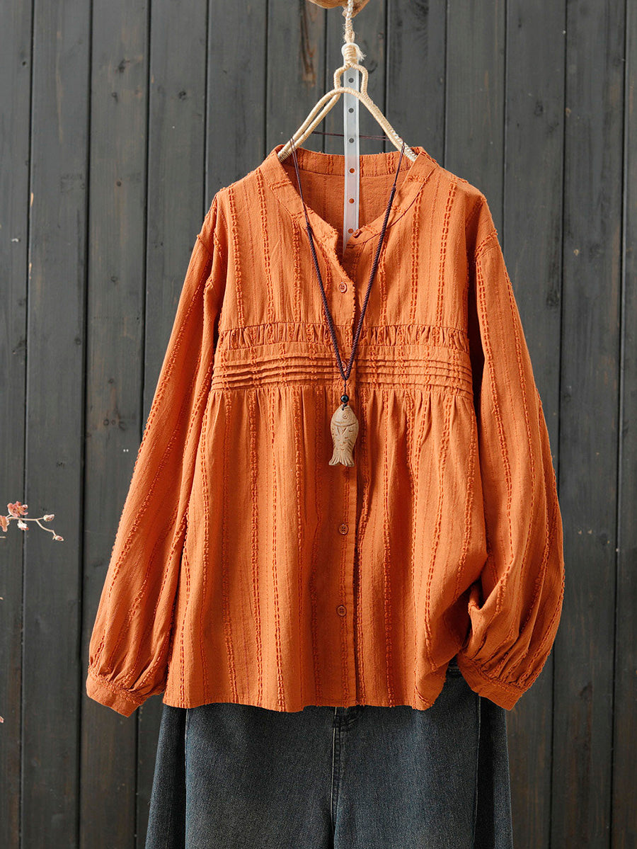 Camisa de primavera para mujer, 100 % algodón, color puro y artístico