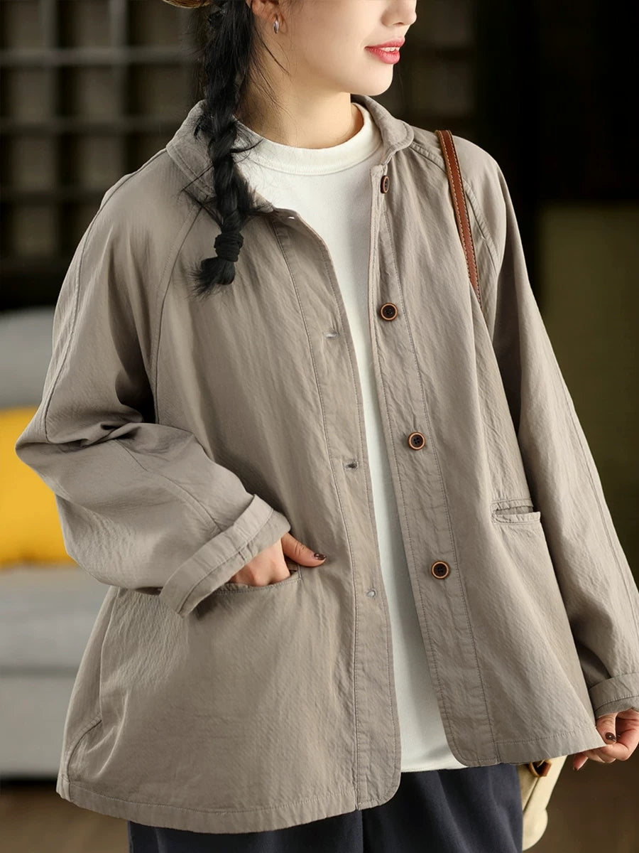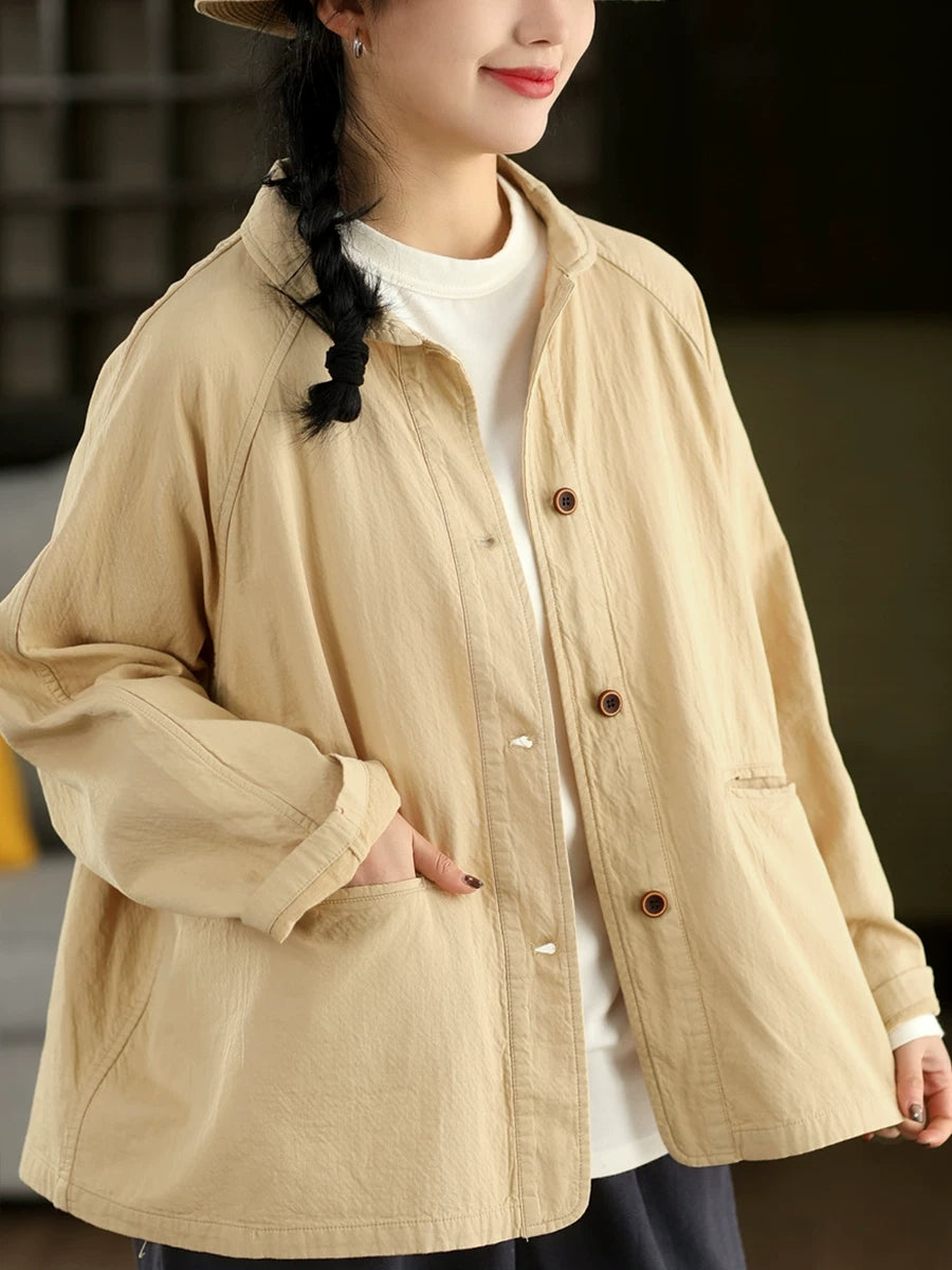 Camisa de algodón 100 % de color puro y estilo artístico para mujer, primavera