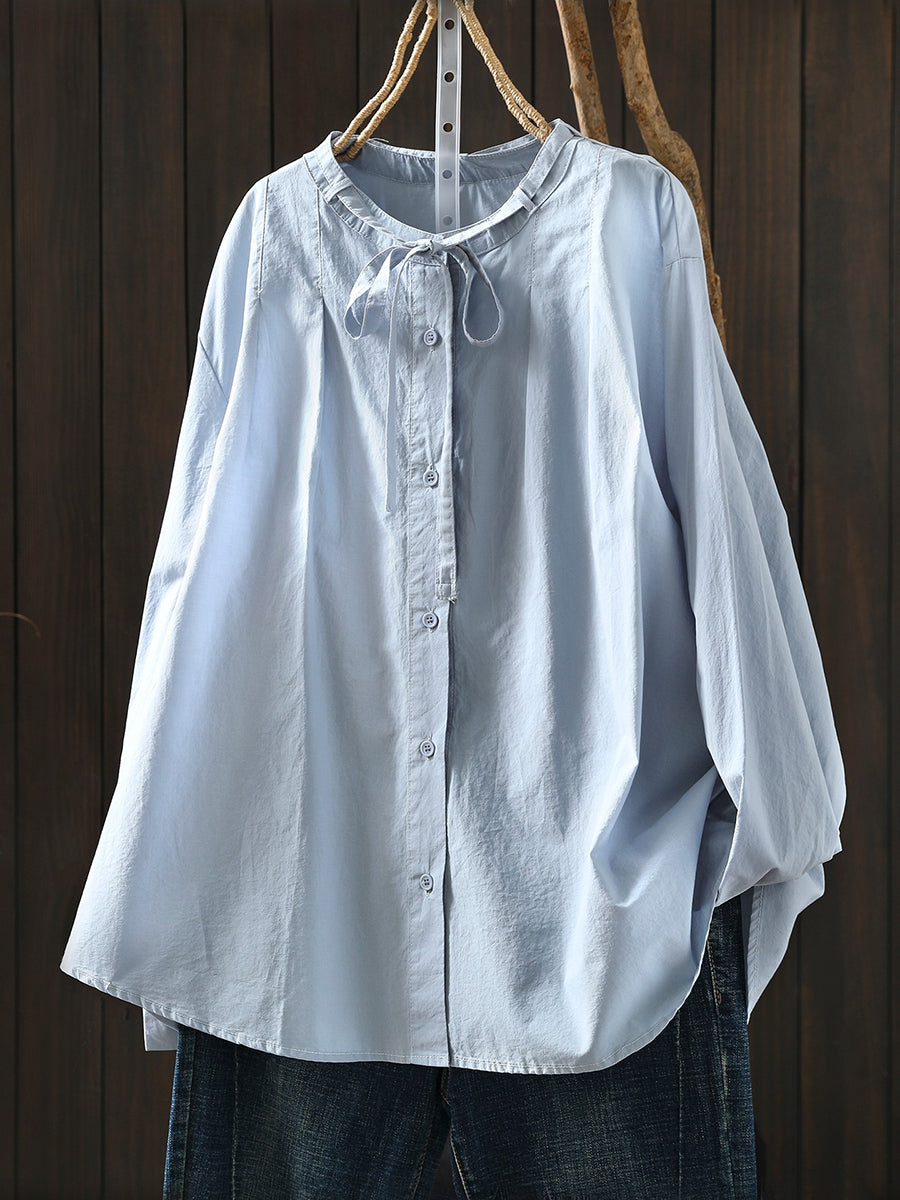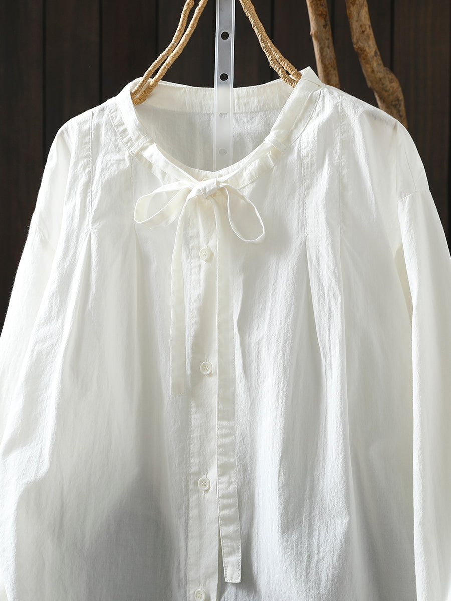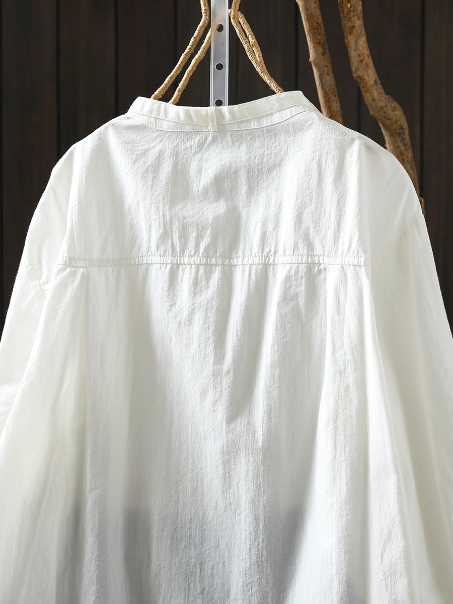 Blusa de cuello alto 100 % algodón de color puro y estilo artístico para mujer, primavera