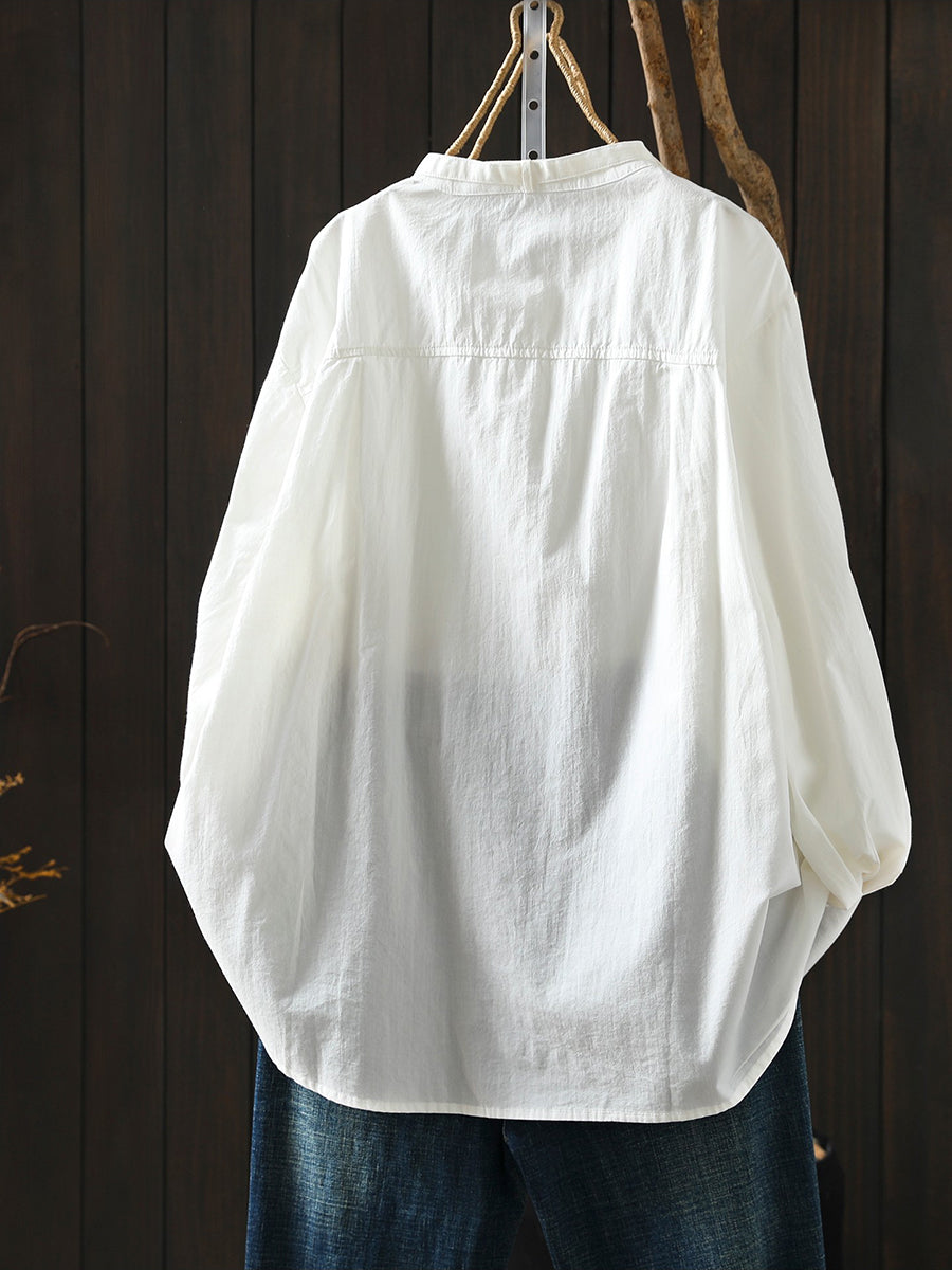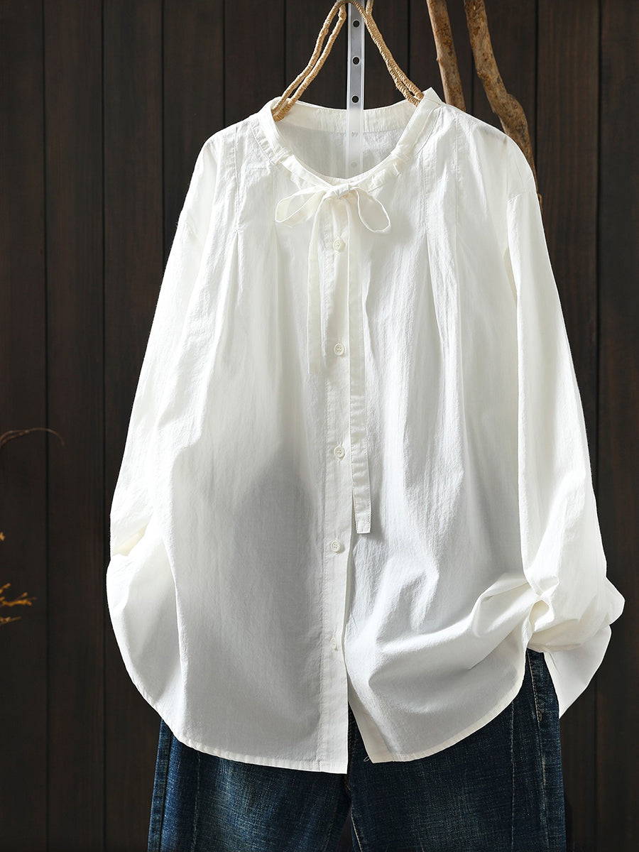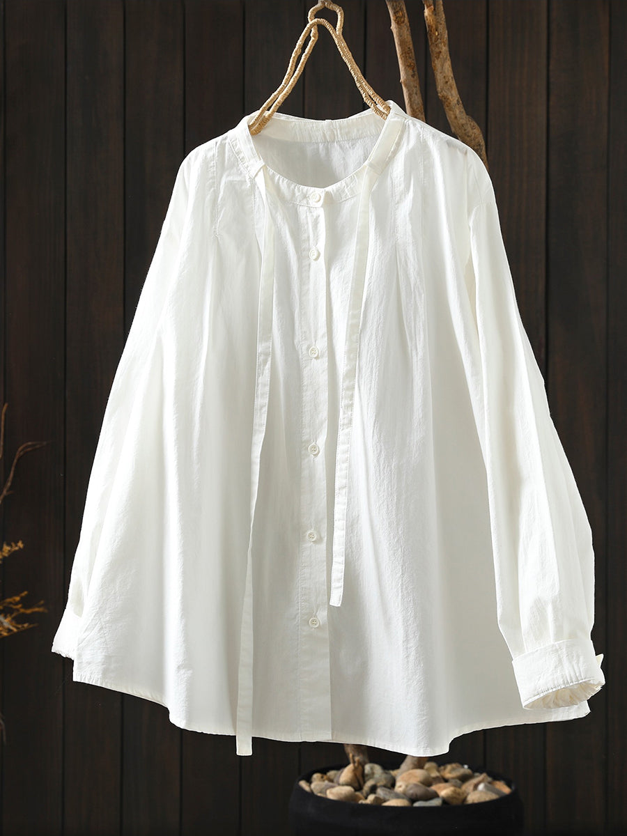 Blusa de cuello alto 100 % algodón de color puro y estilo artístico para mujer, primavera