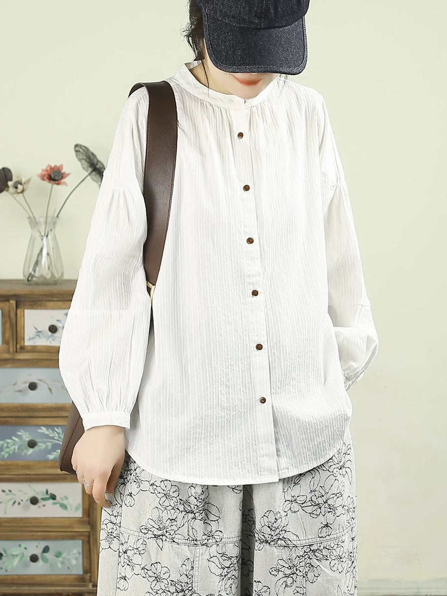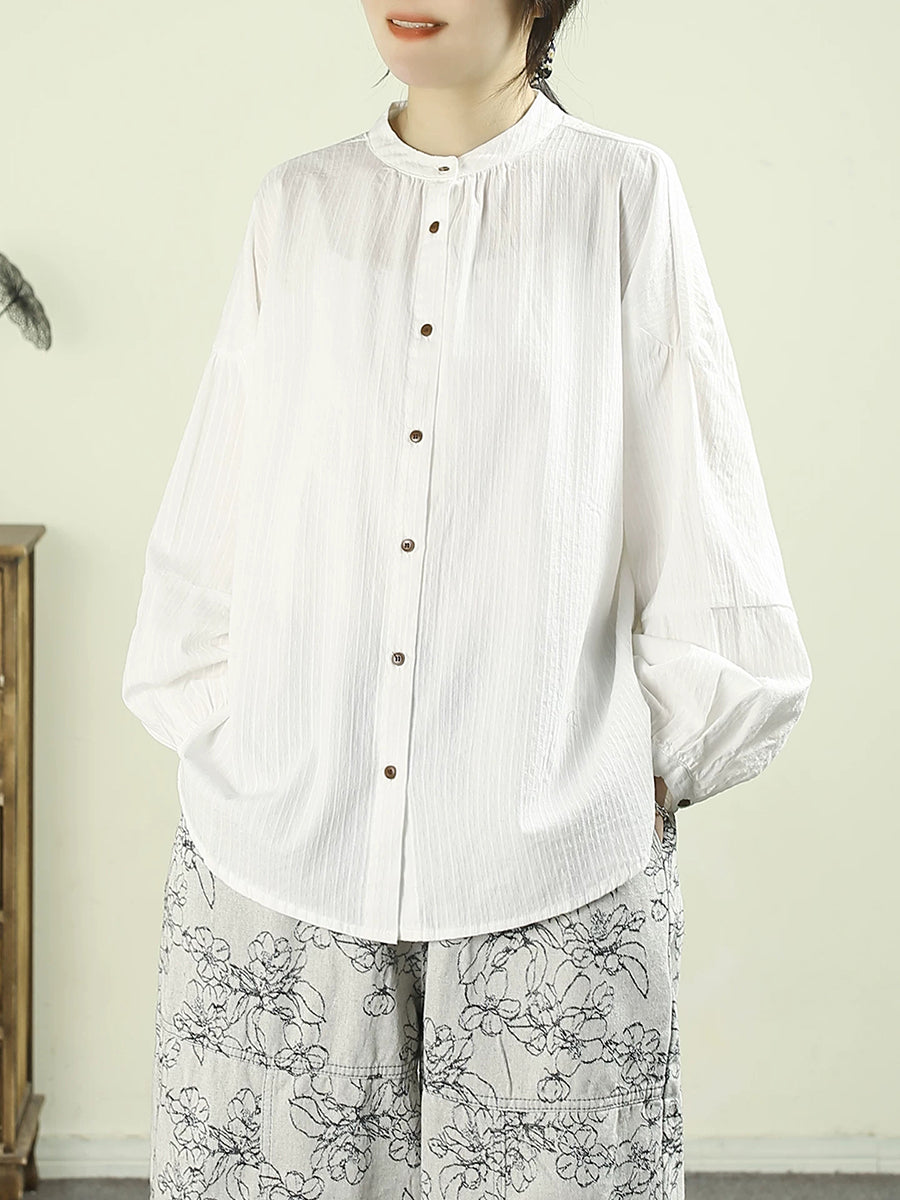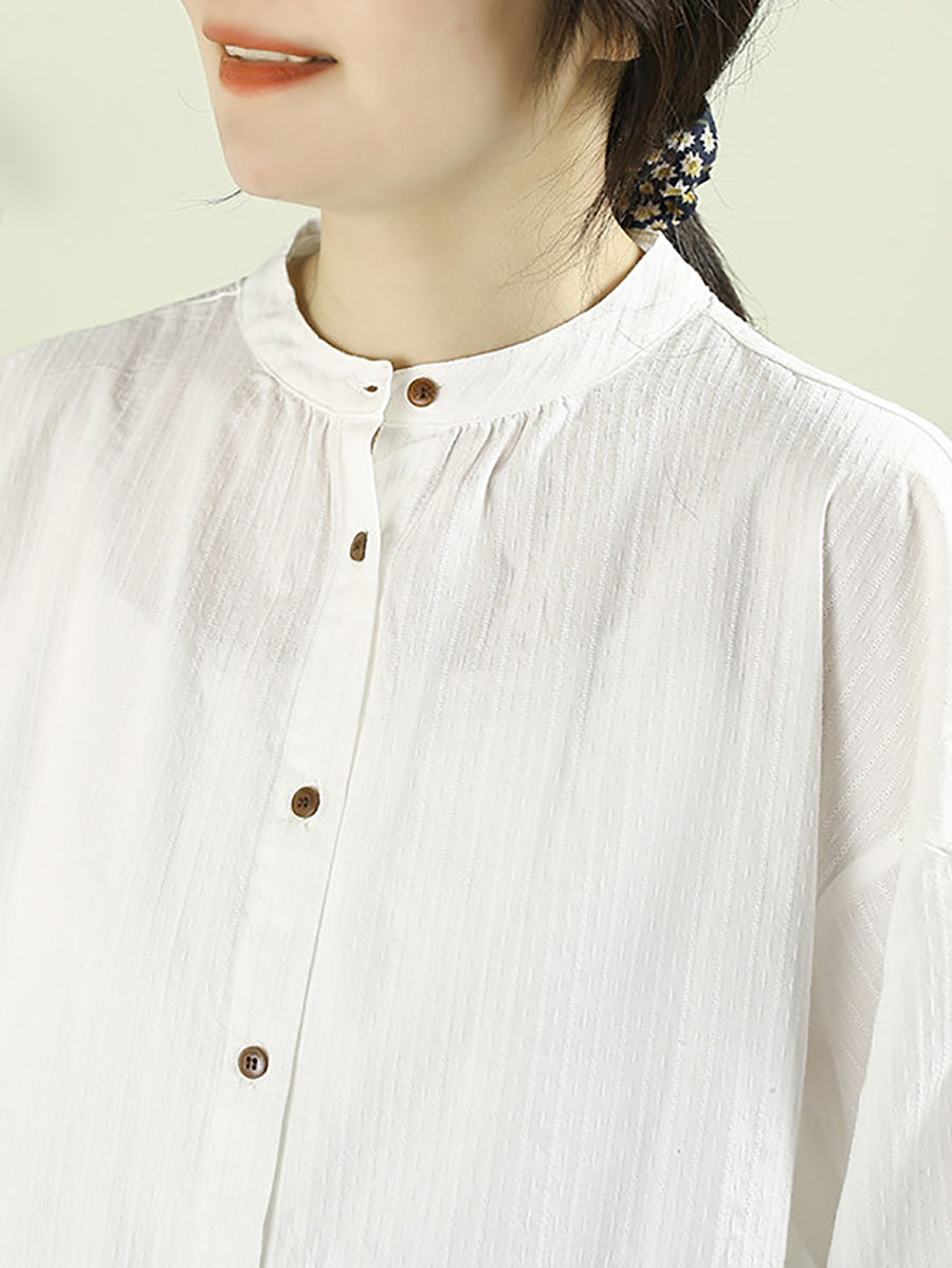 Camisa de cuello alto 100 % algodón de color puro y estilo artístico para mujer, primavera