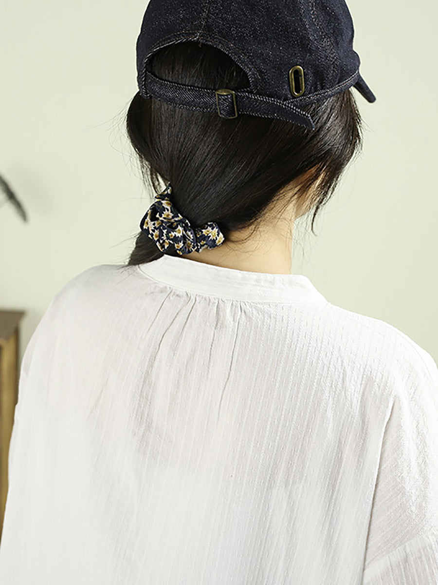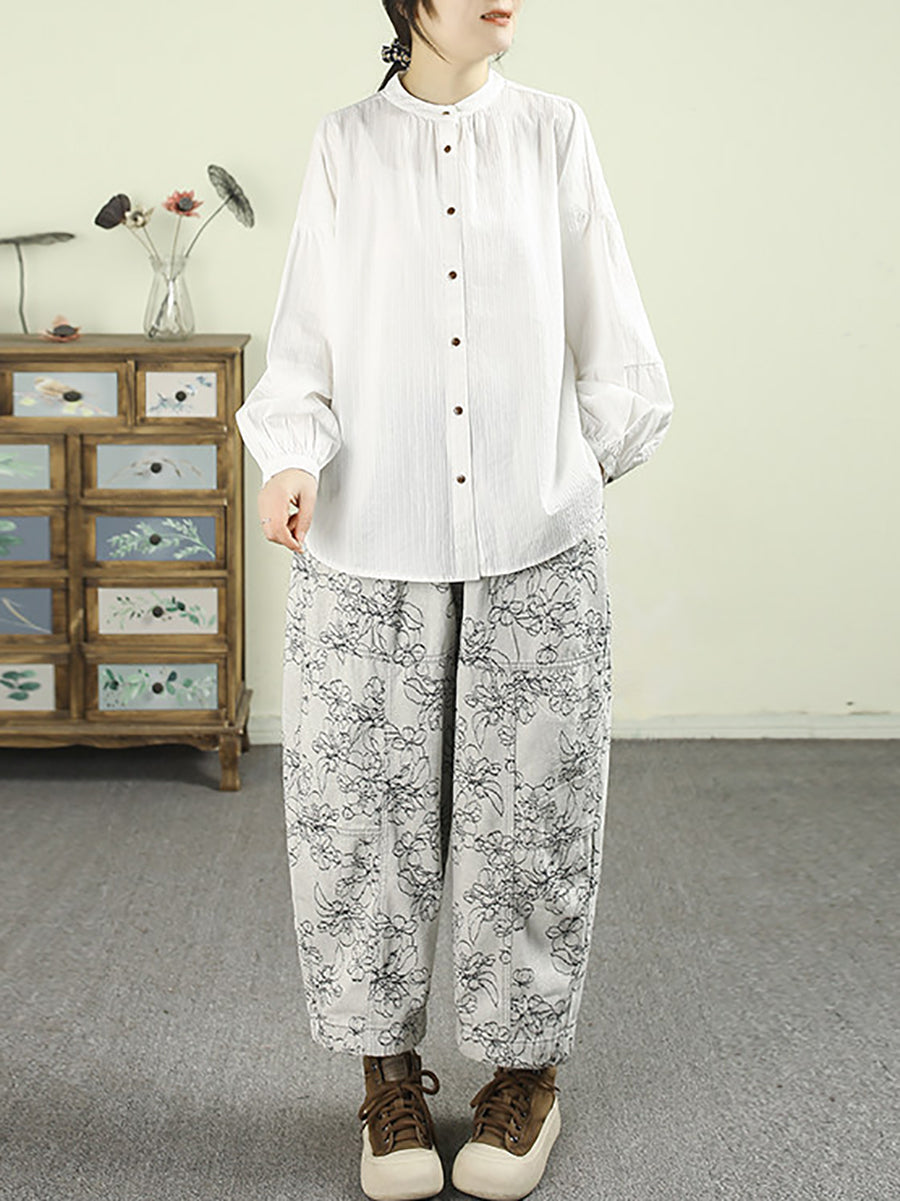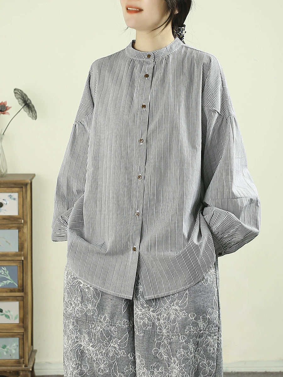 Camisa de cuello alto 100 % algodón de color puro y estilo artístico para mujer, primavera