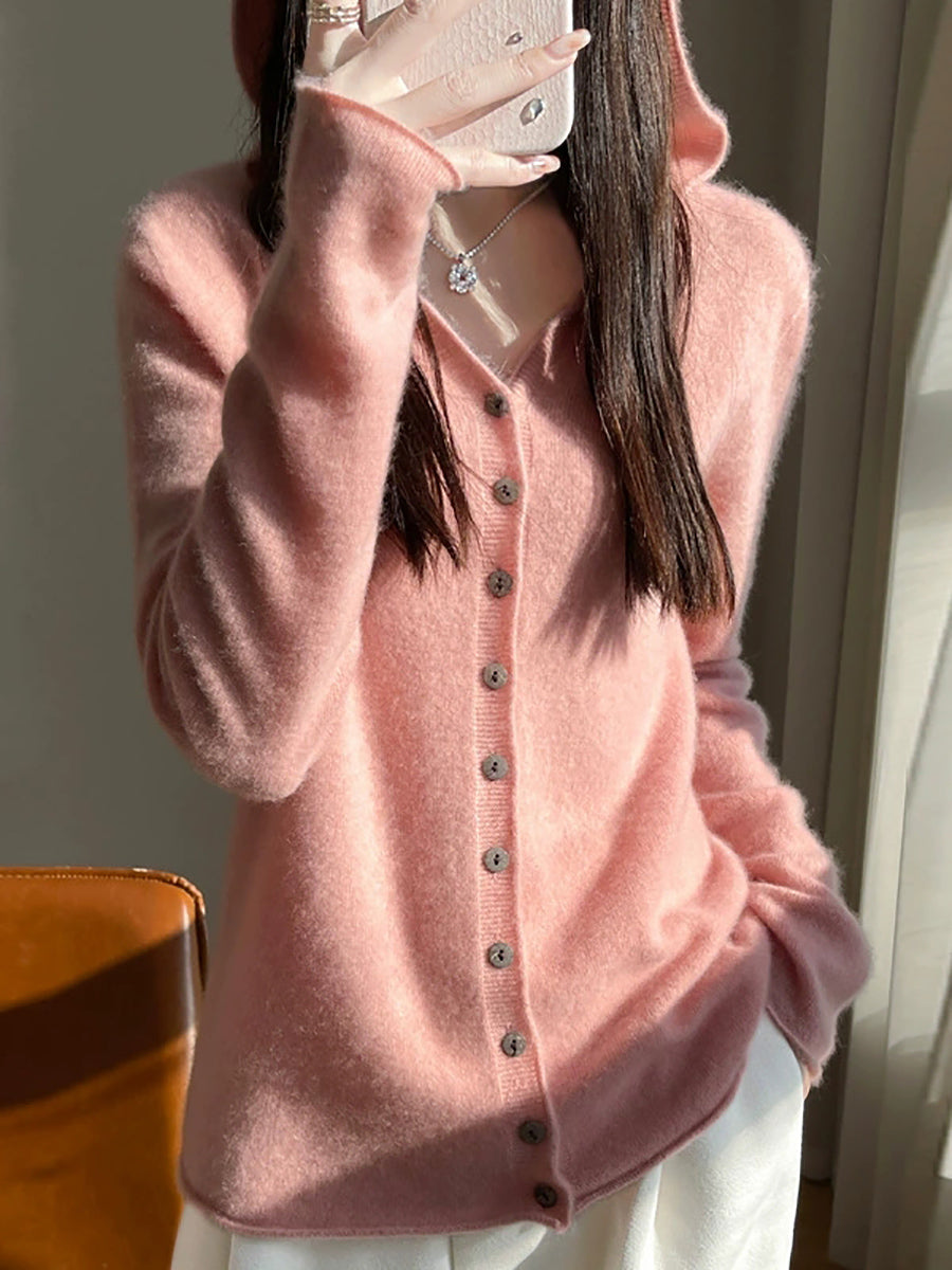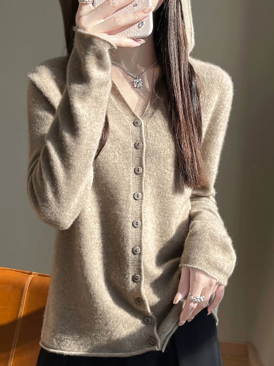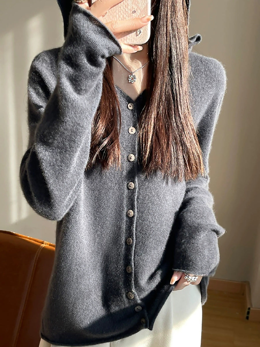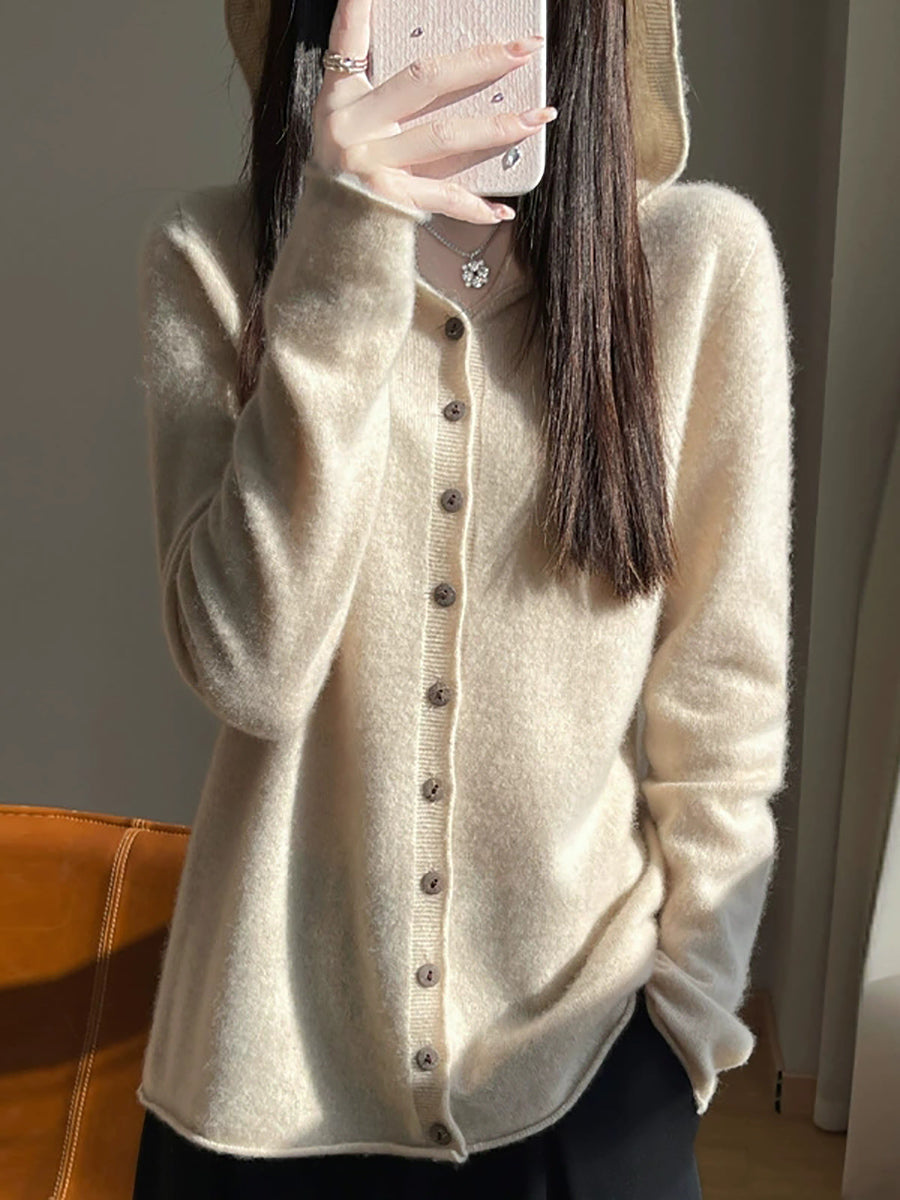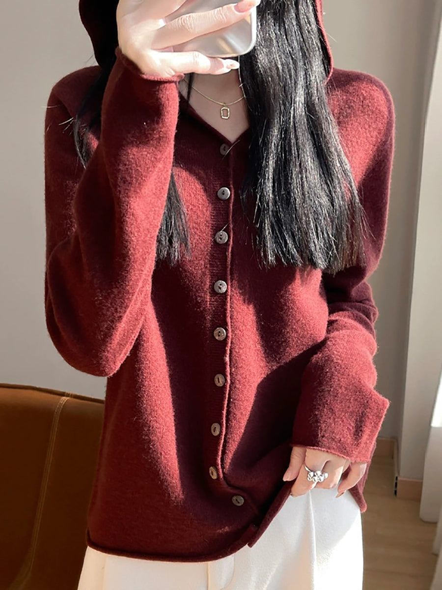 Cárdigan con capucha de primavera para mujer, estilo artístico, de color puro
