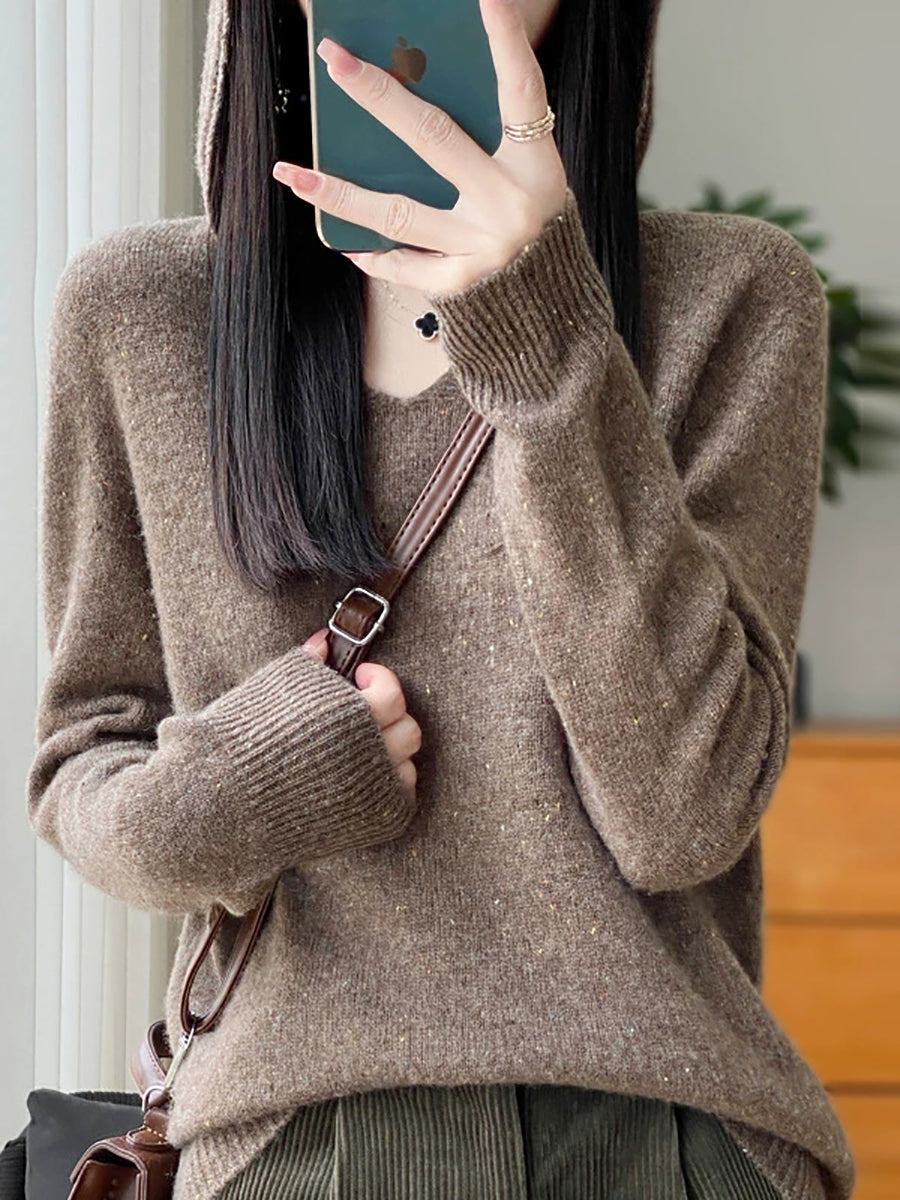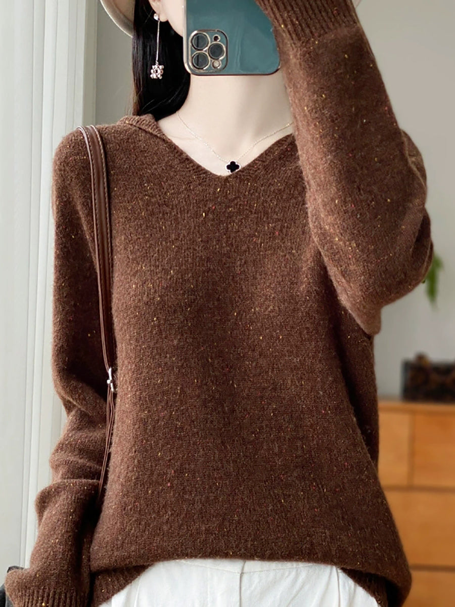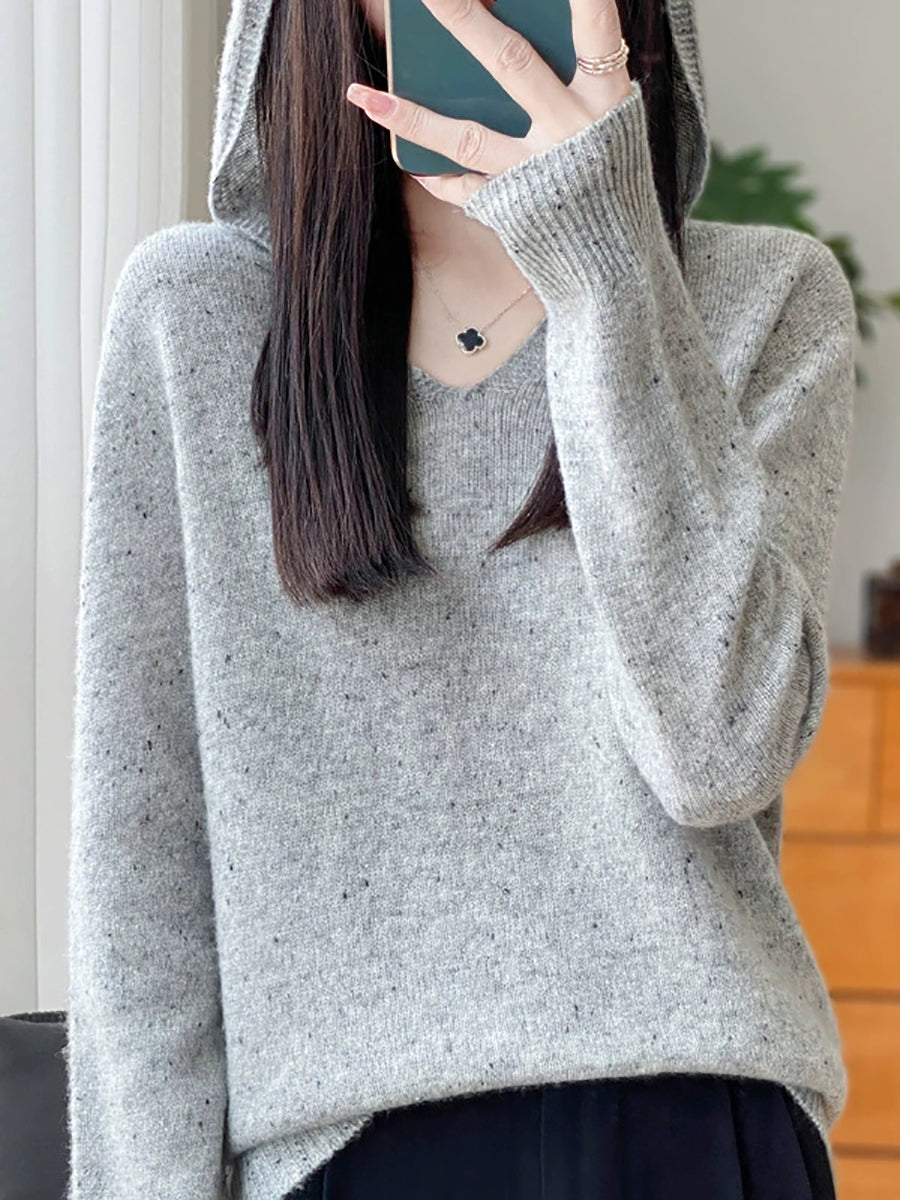 Suéter de lana con capucha de color puro y estilo artístico de primavera para mujer