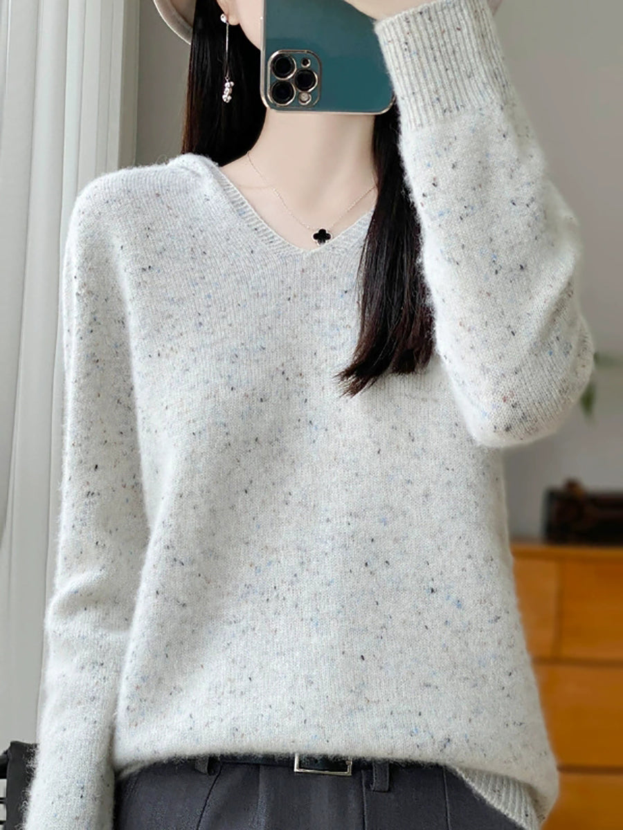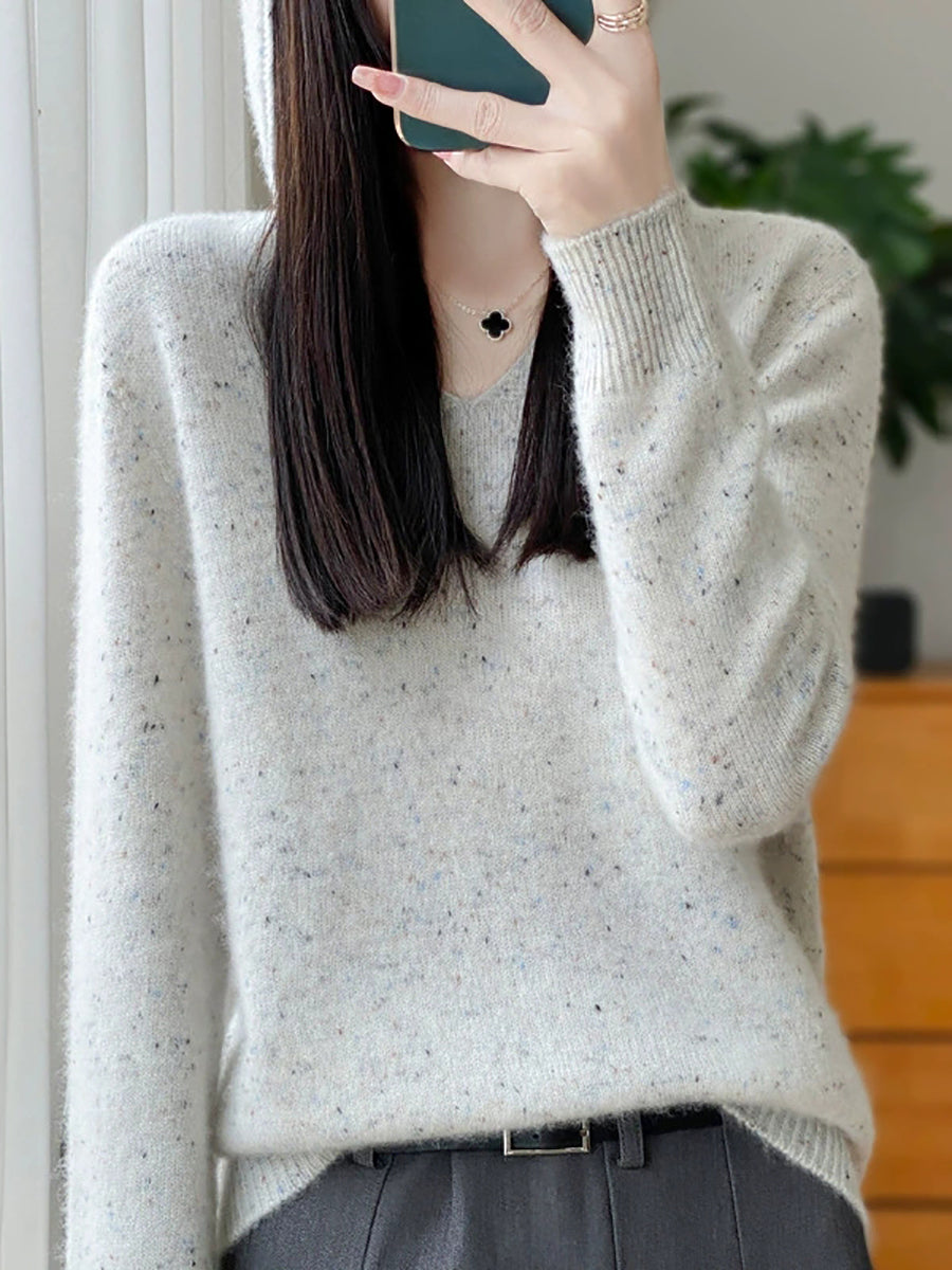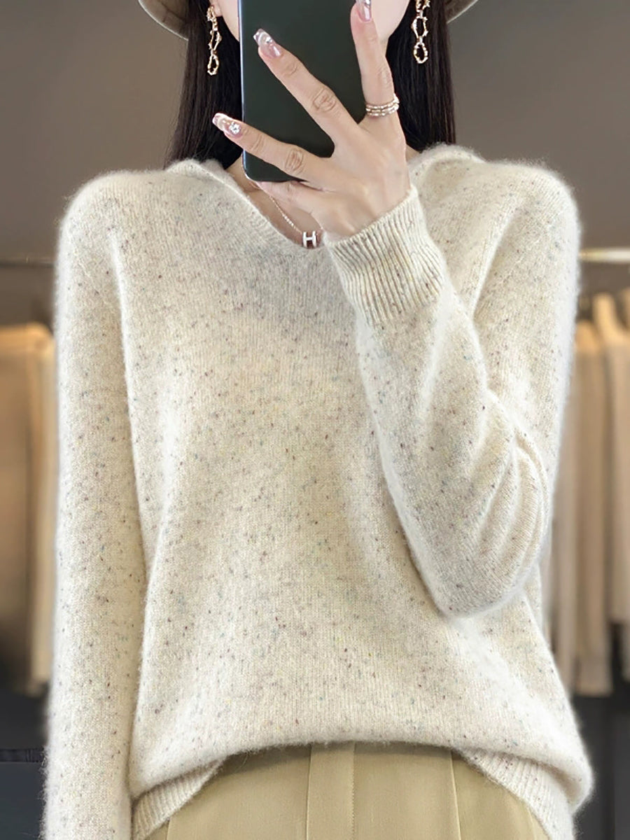 Suéter de lana con capucha de color puro y estilo artístico de primavera para mujer