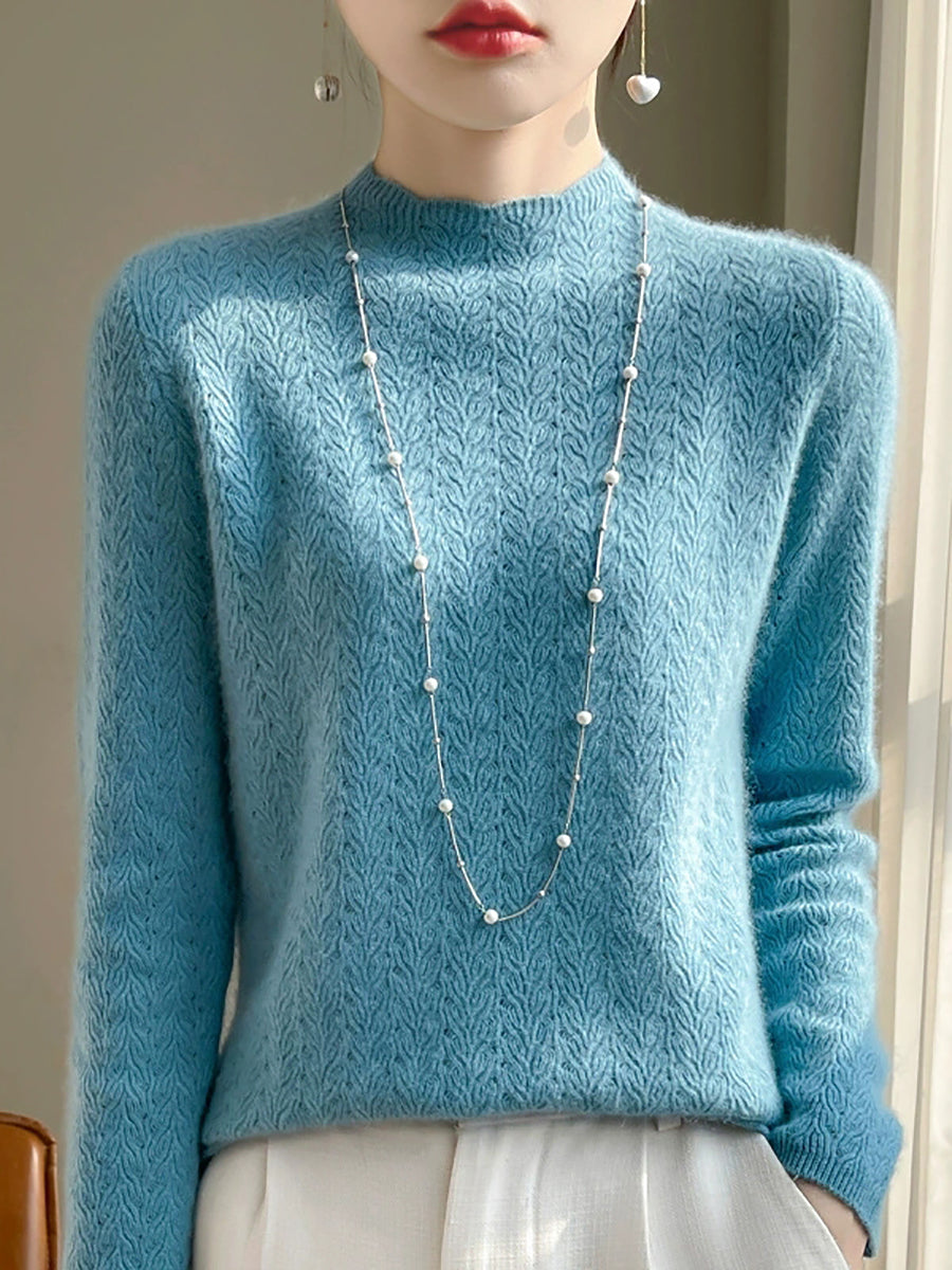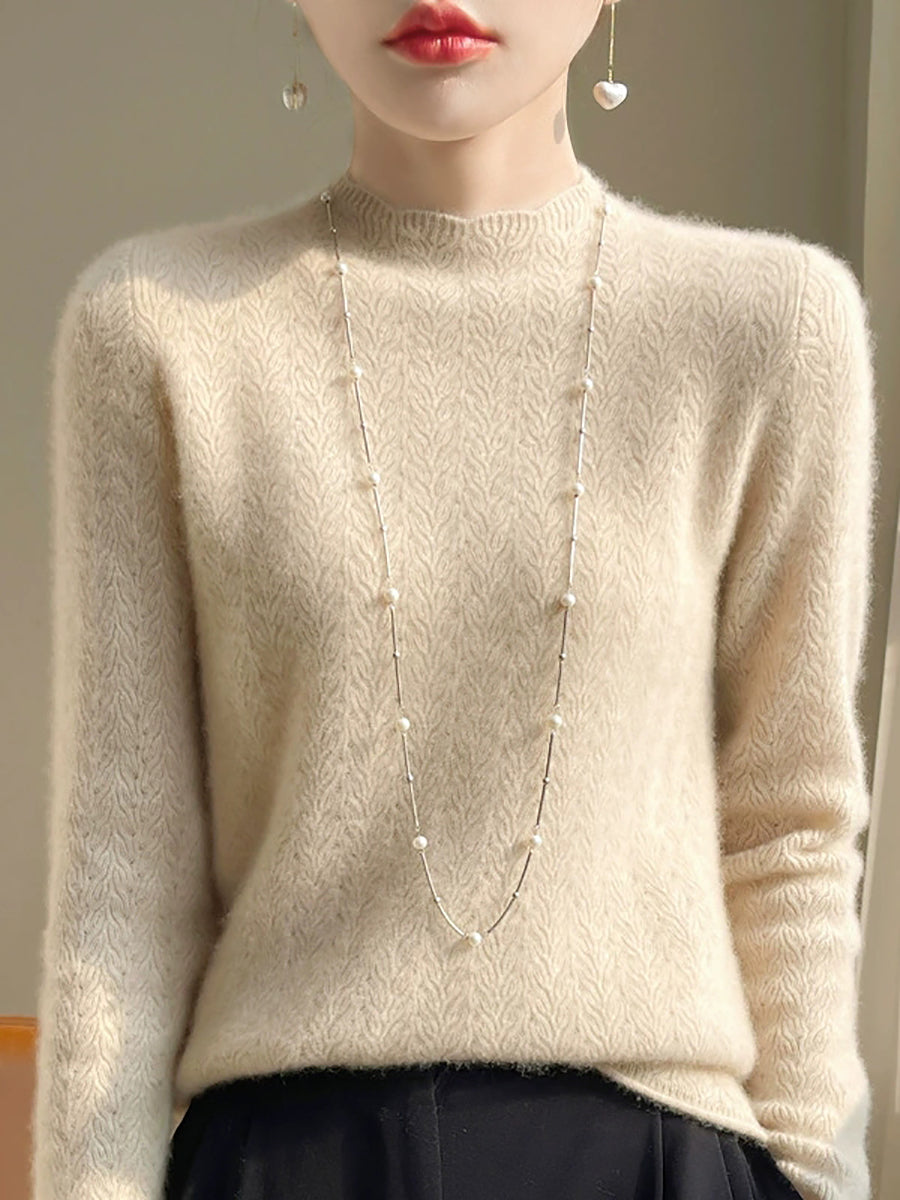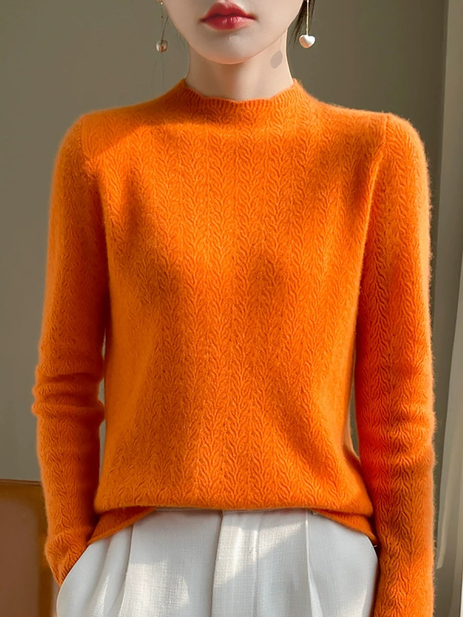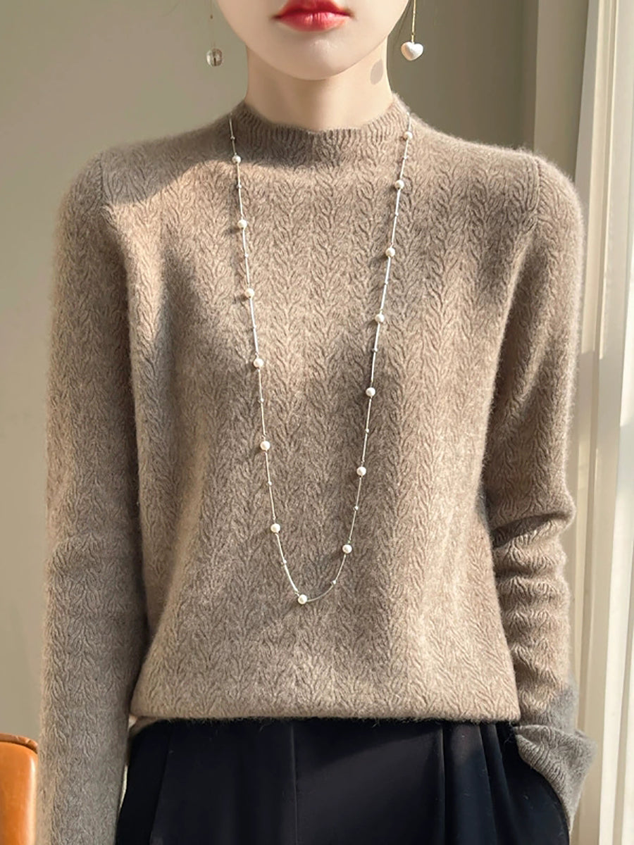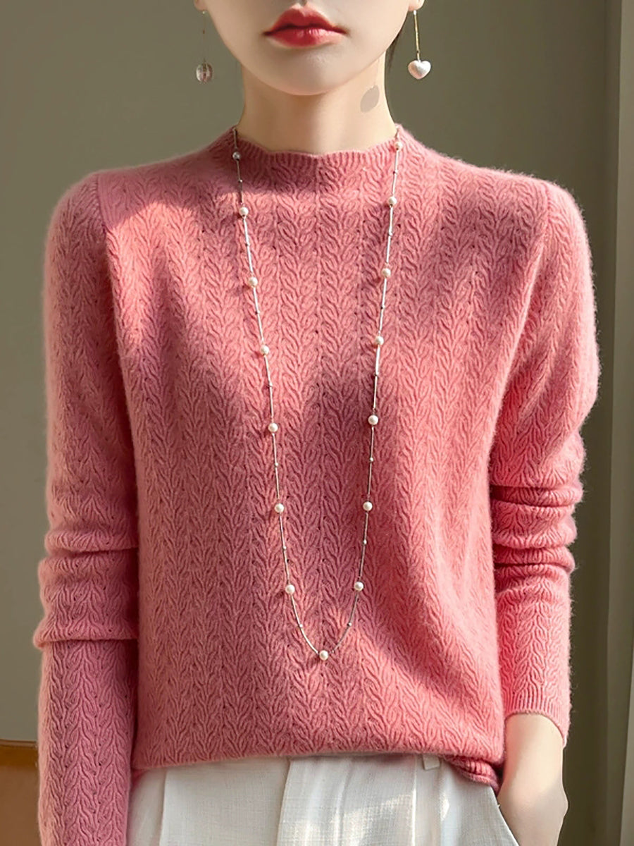 Suéter de cuello redondo de color puro y artístico de primavera para mujer