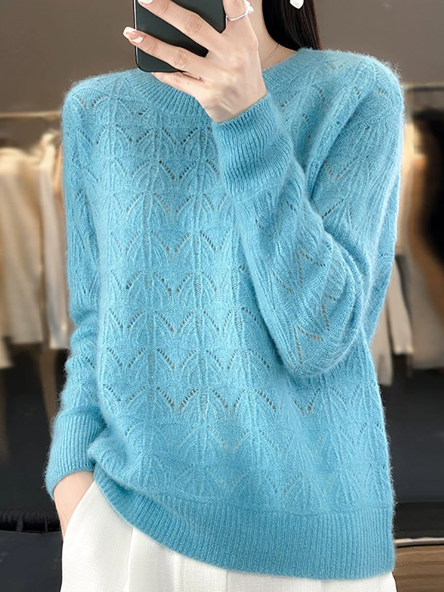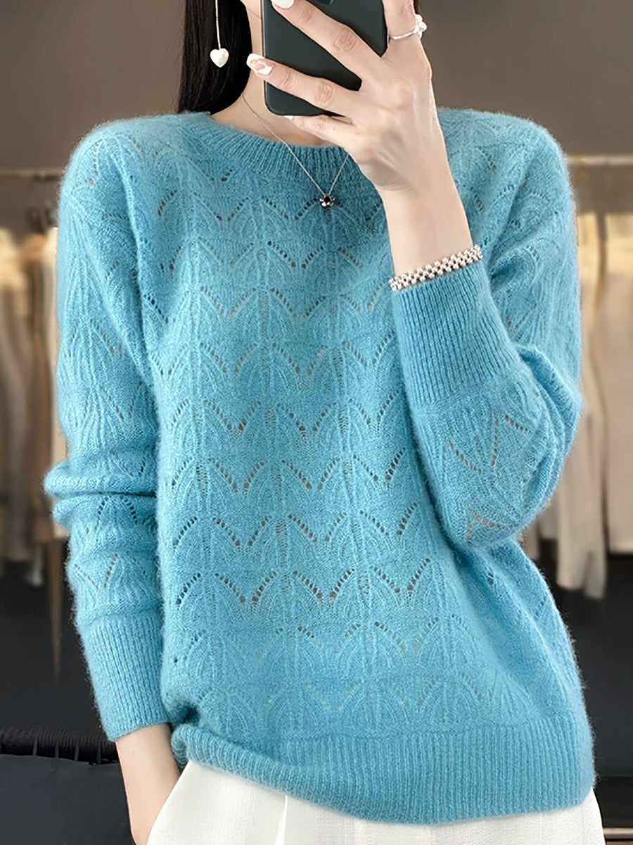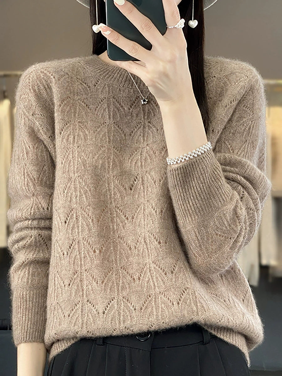 Suéter de lana con cuello redondo y color puro Artsy de primavera para mujer