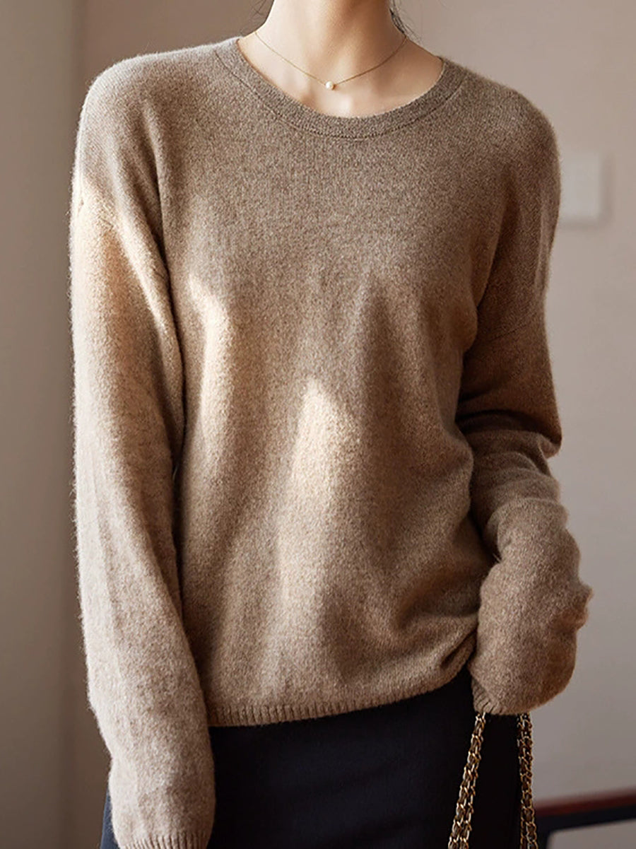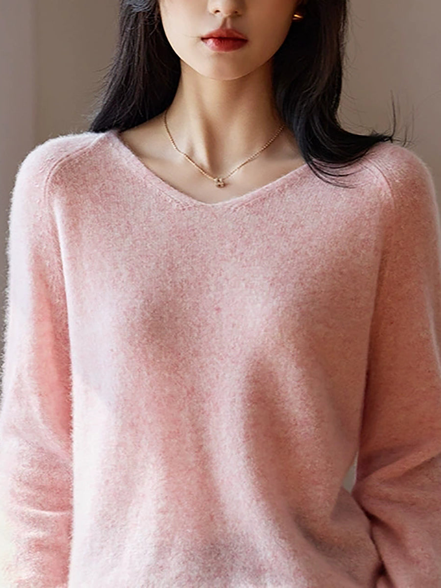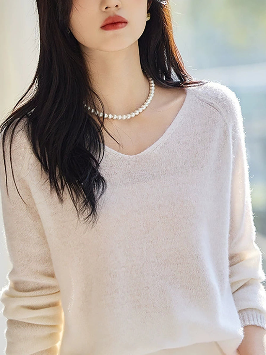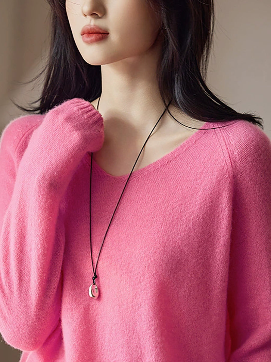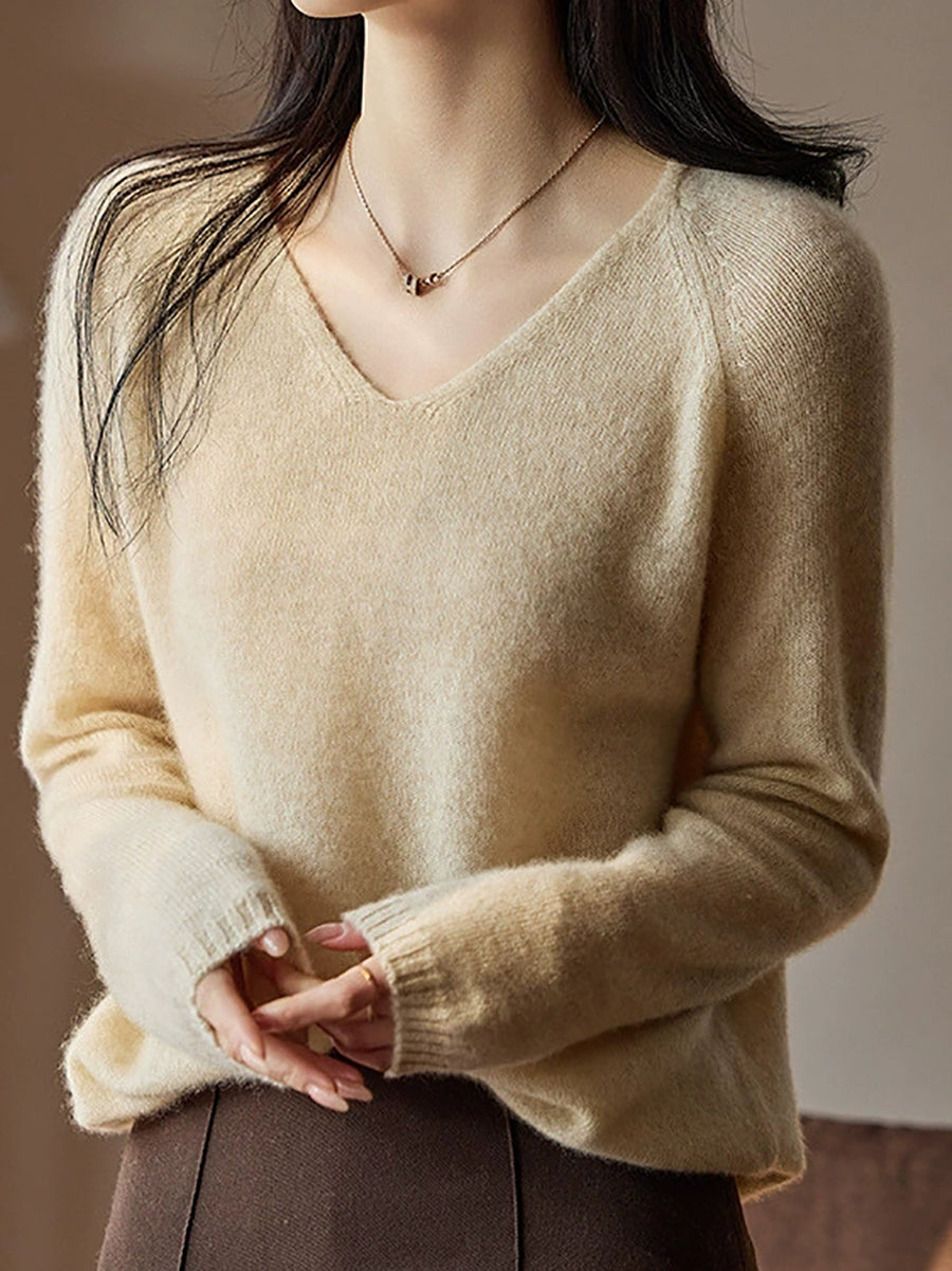 Suéter de lana con cuello en V y color puro Artsy de primavera para mujer