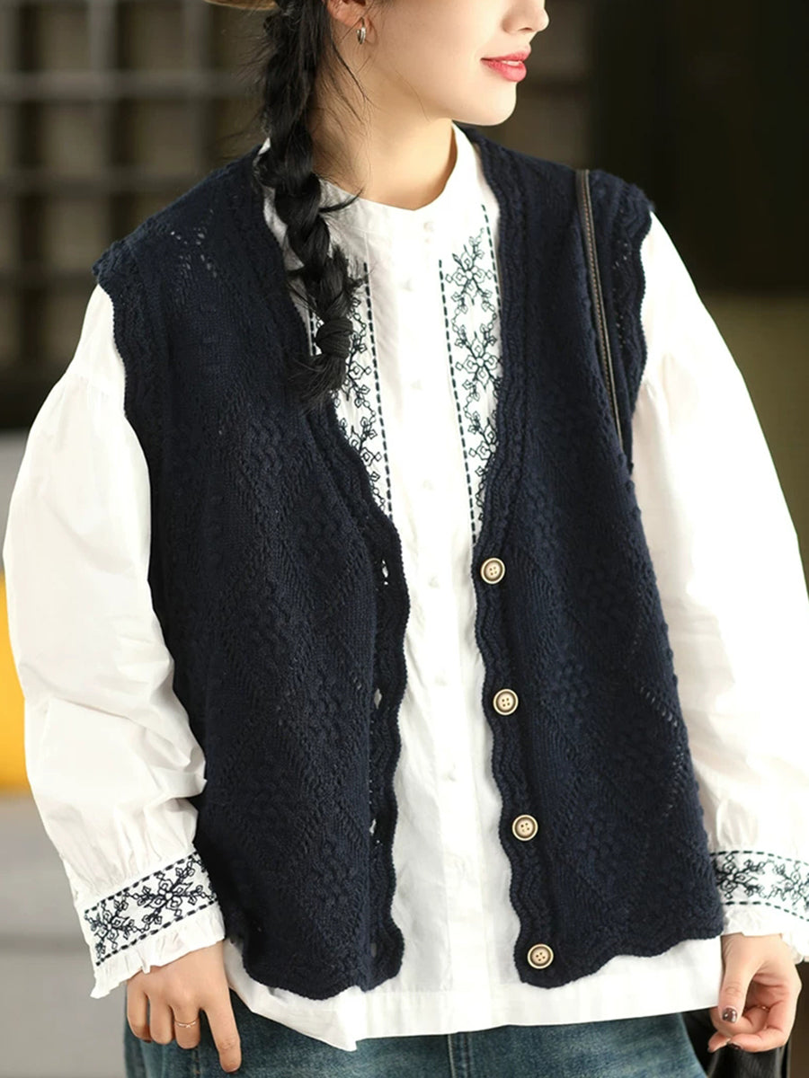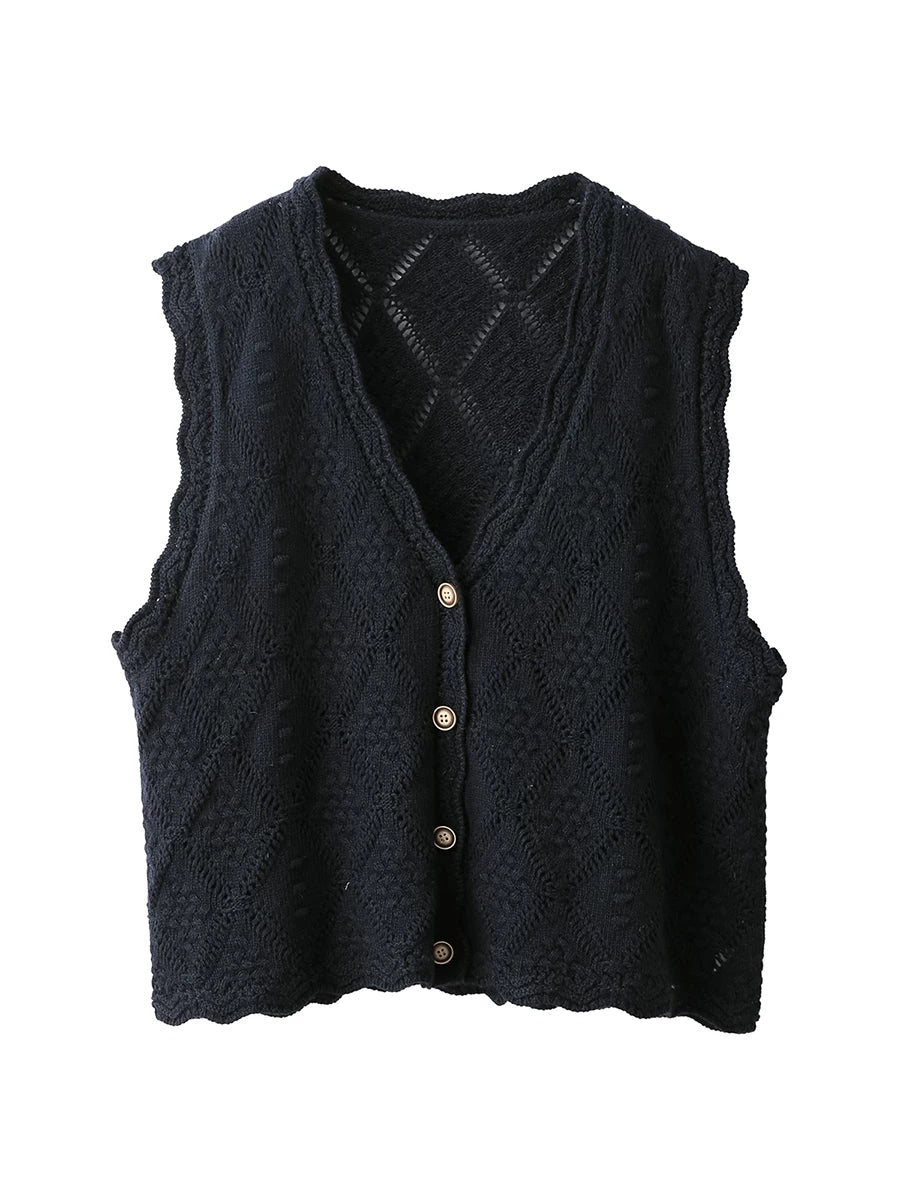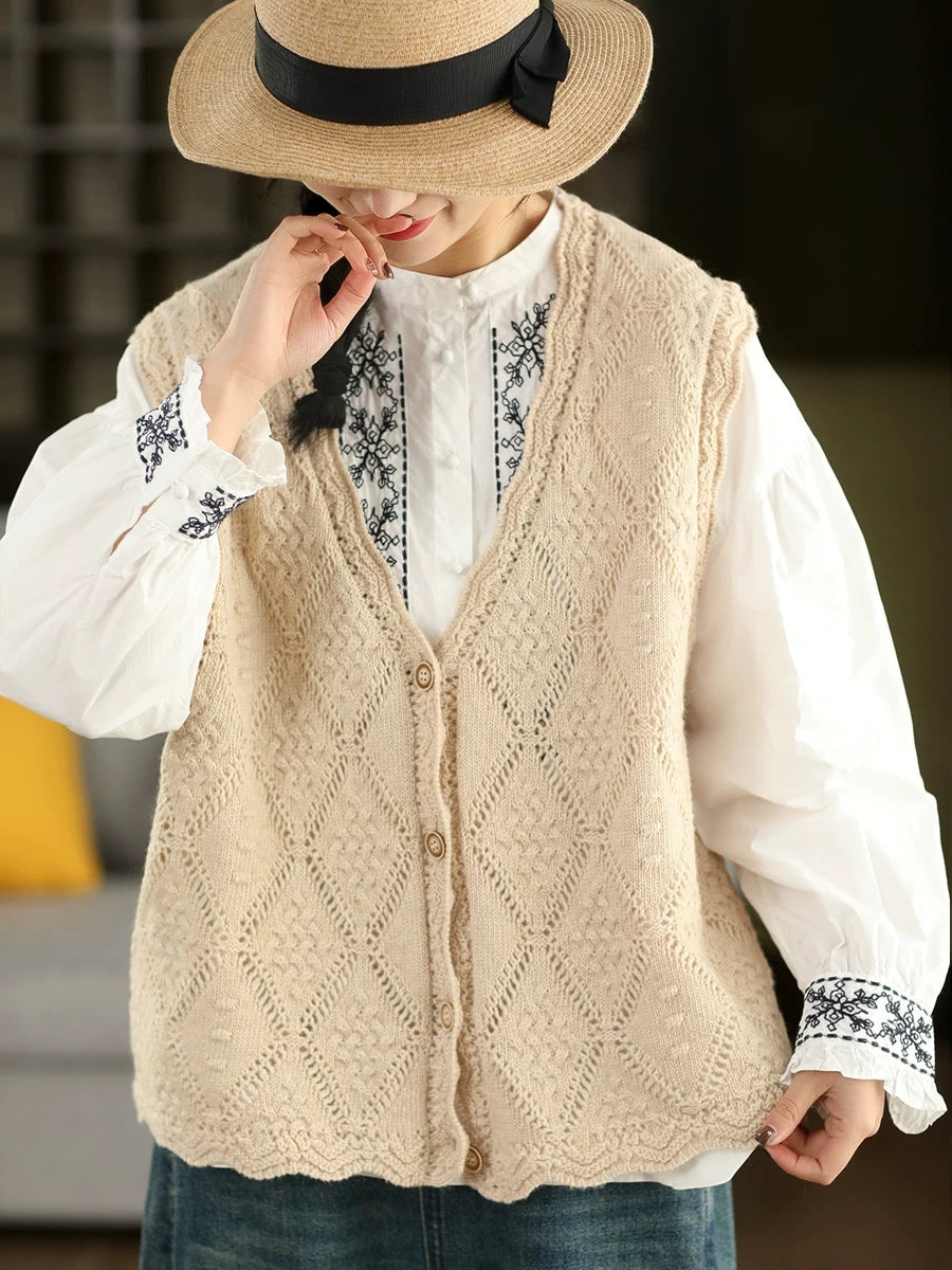 Chaleco de punto con cuello en V y romboides artísticos de primavera para mujer