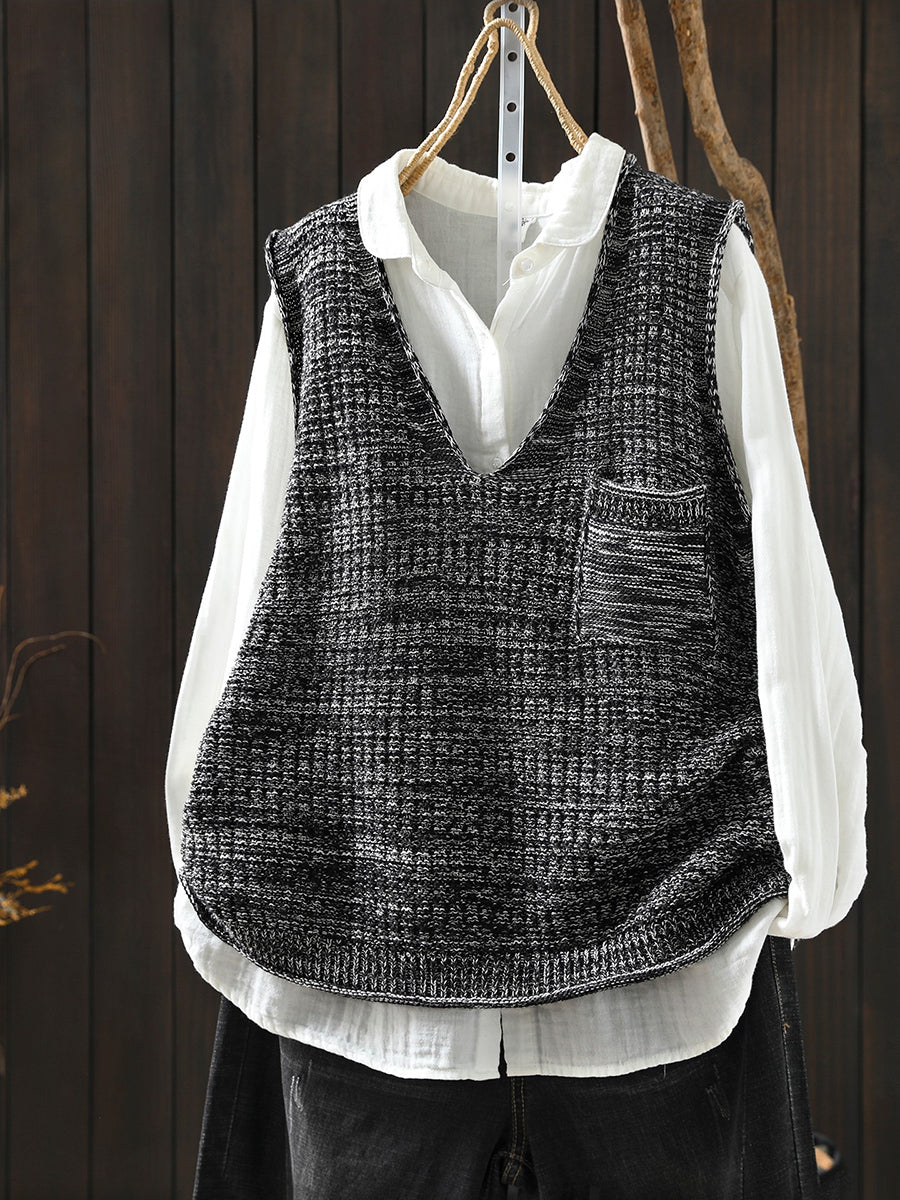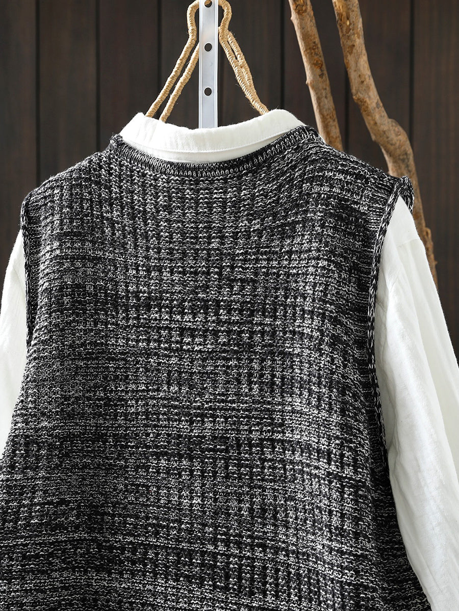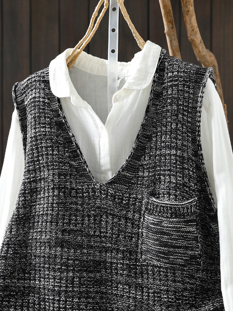Chaleco de punto con cuello en V artístico de primavera para mujer