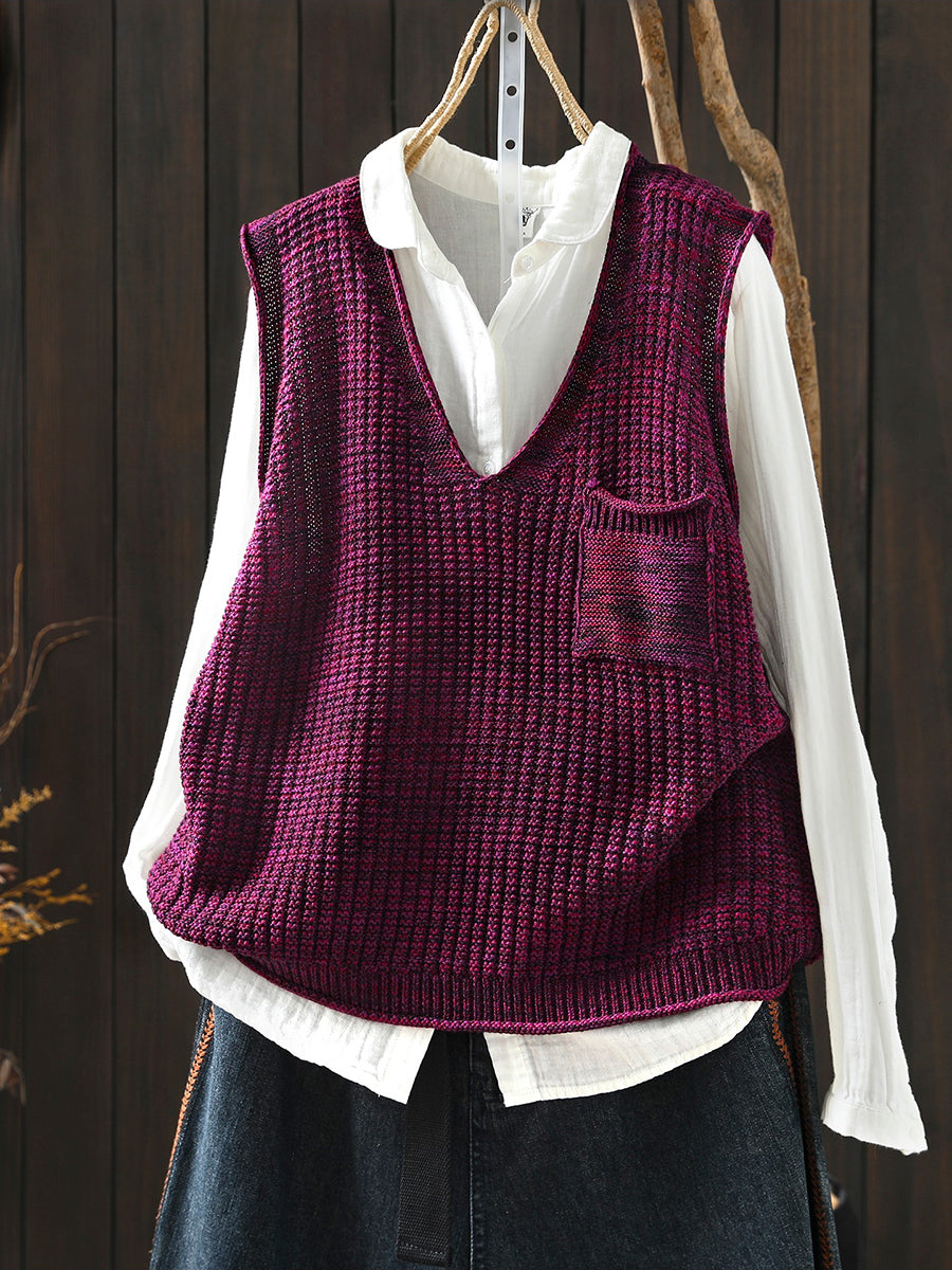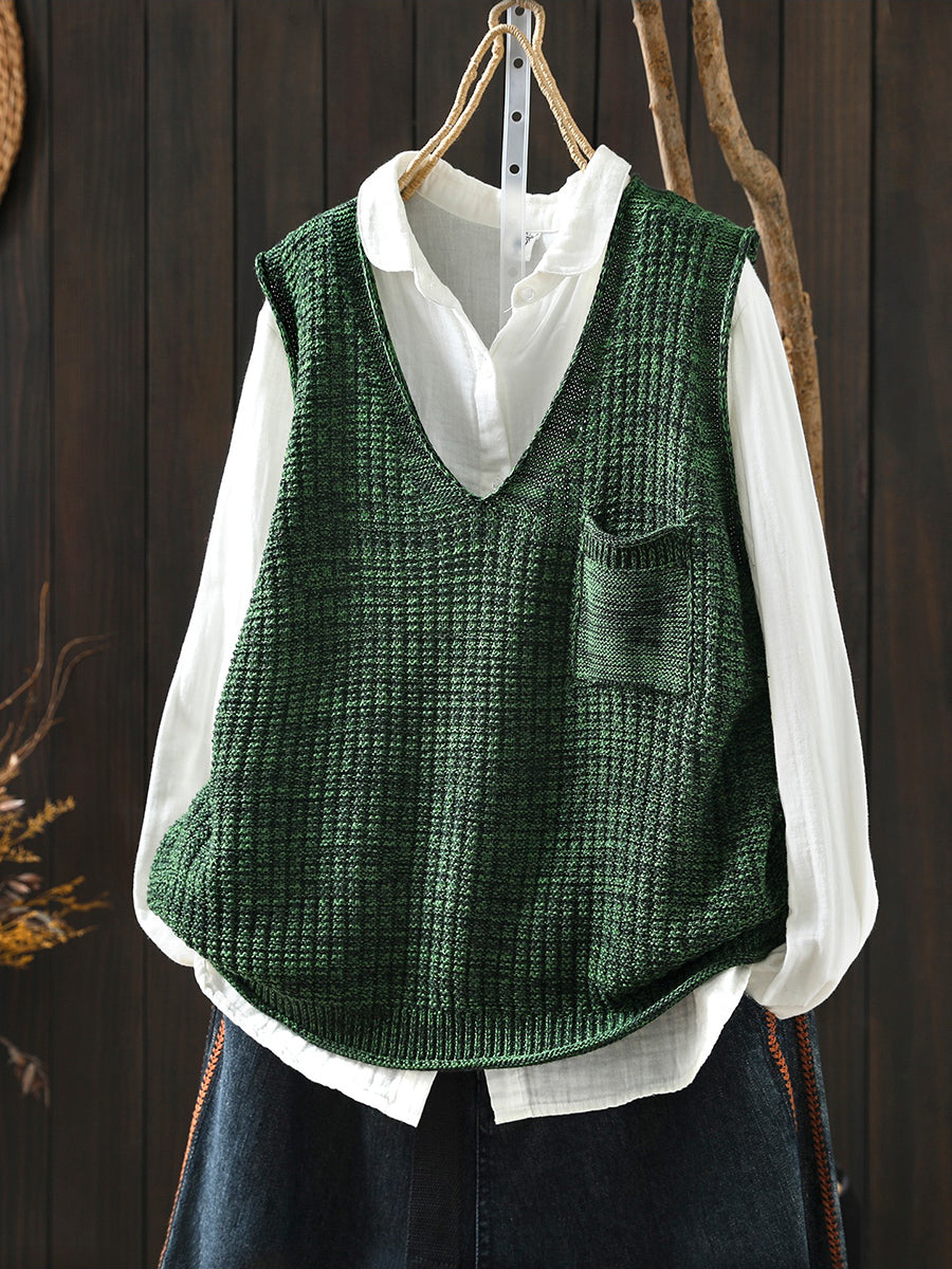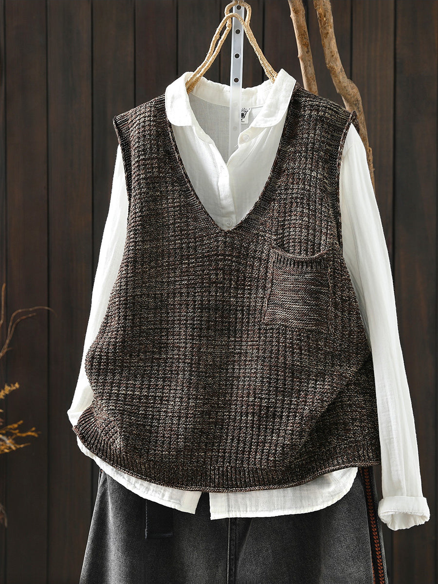 Chaleco de punto con cuello en V artístico de primavera para mujer