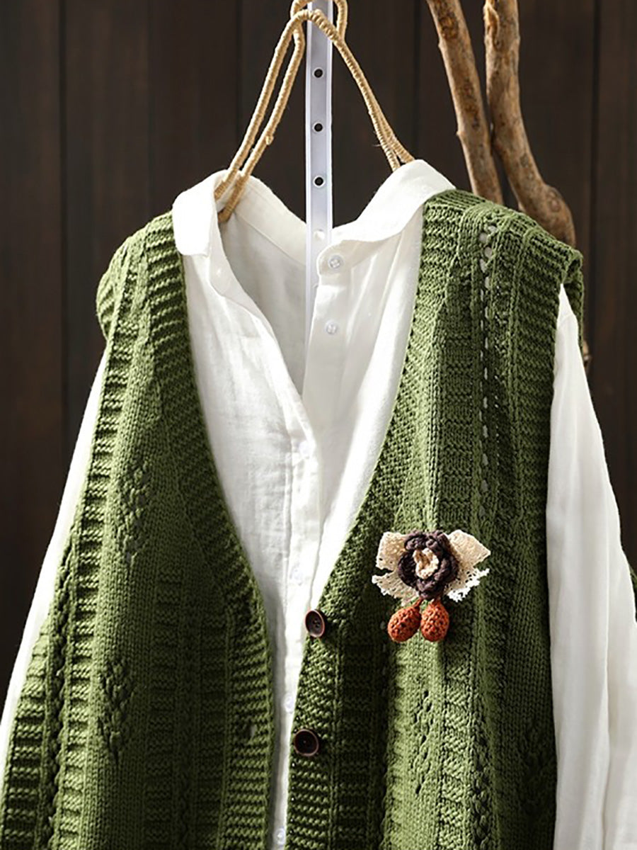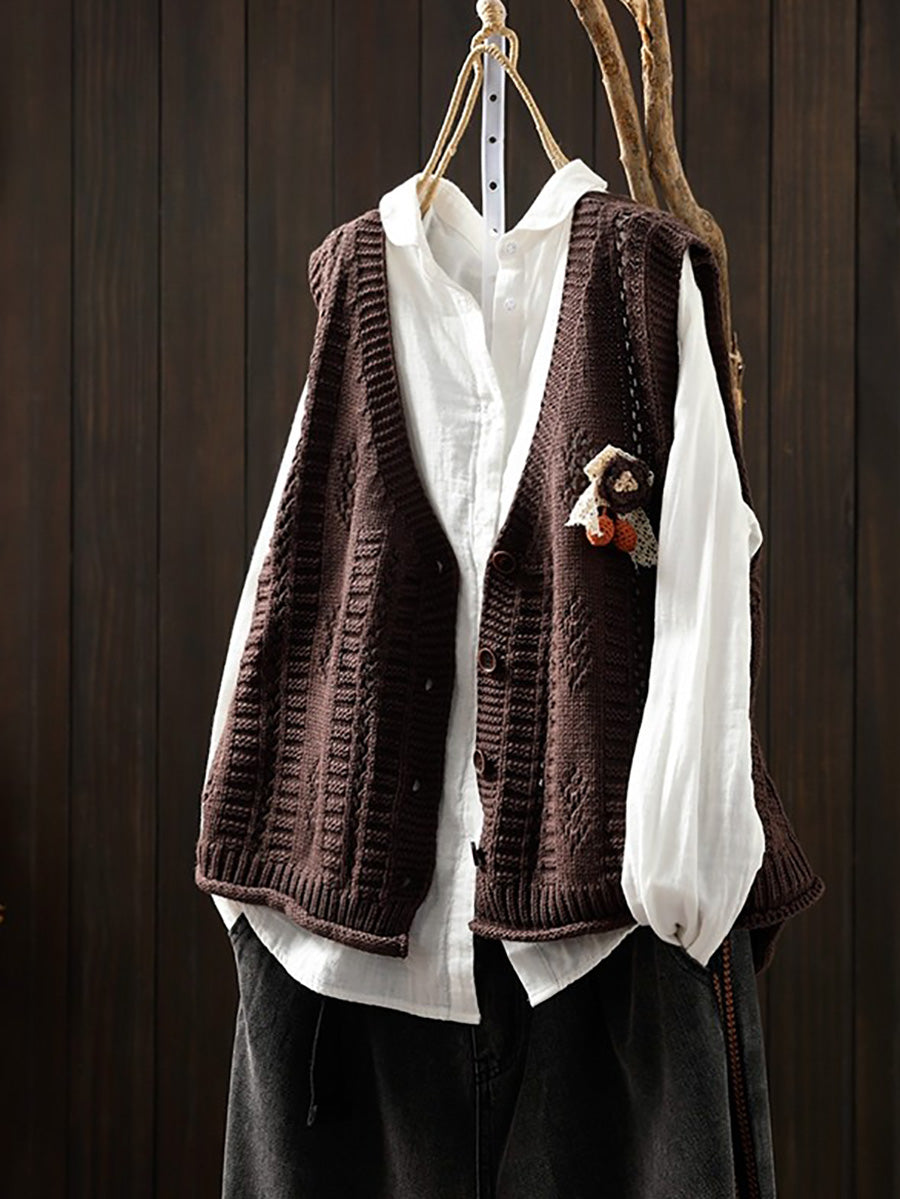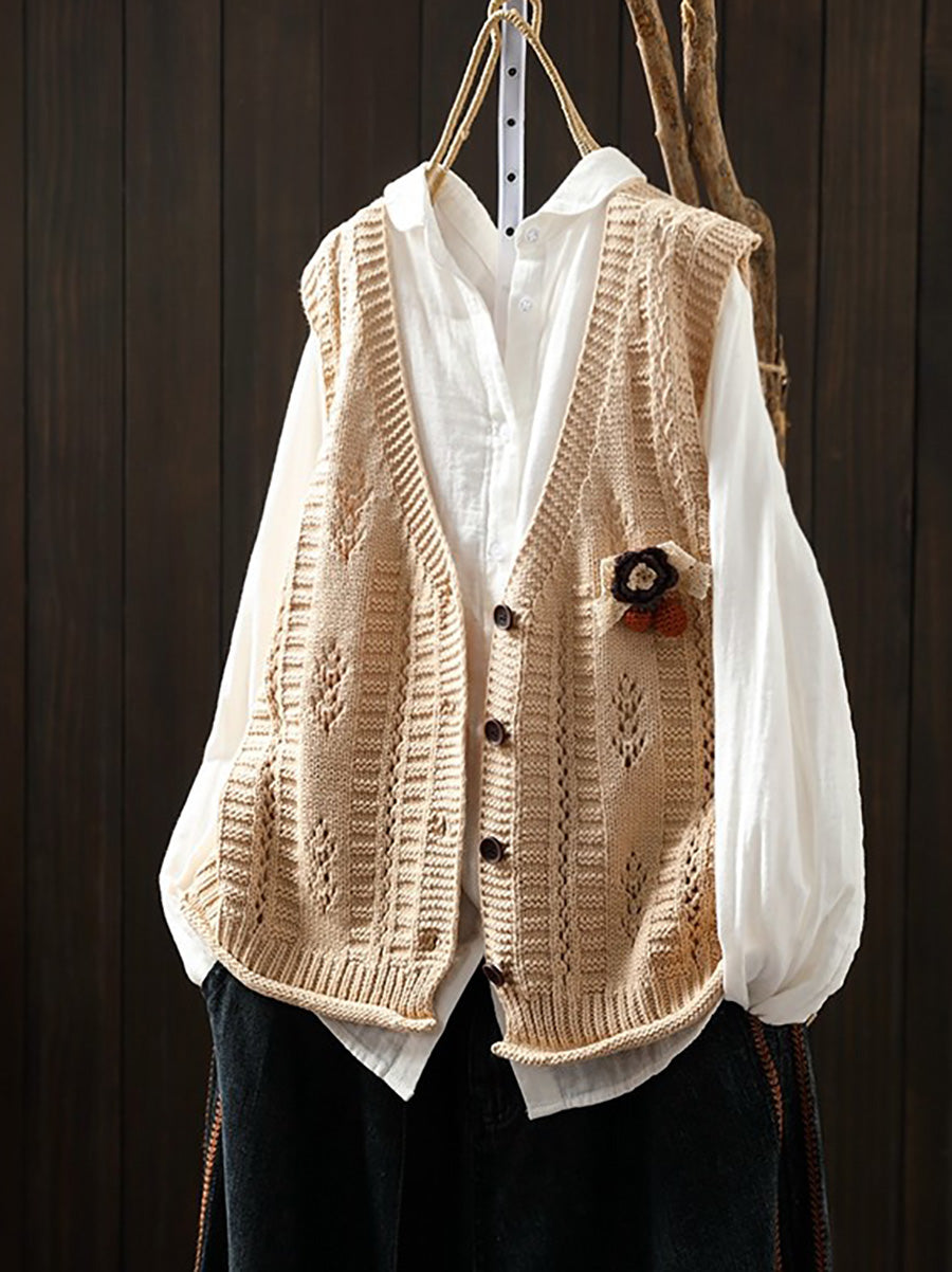 Chaleco de punto con cuello en V artístico de primavera para mujer