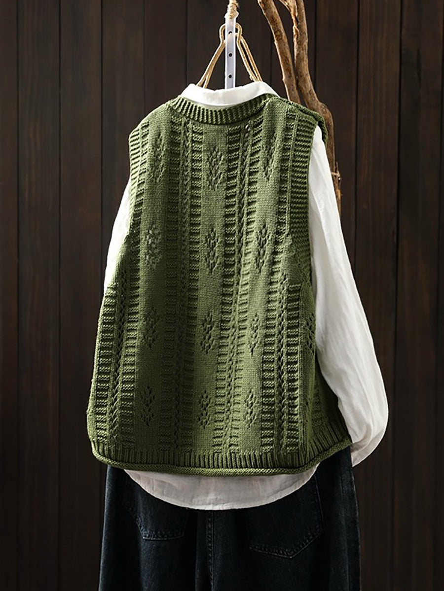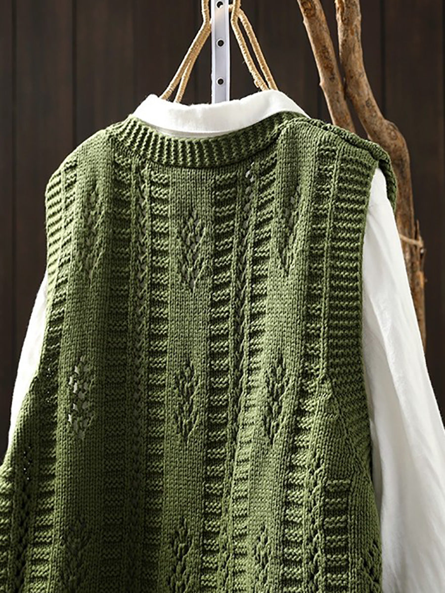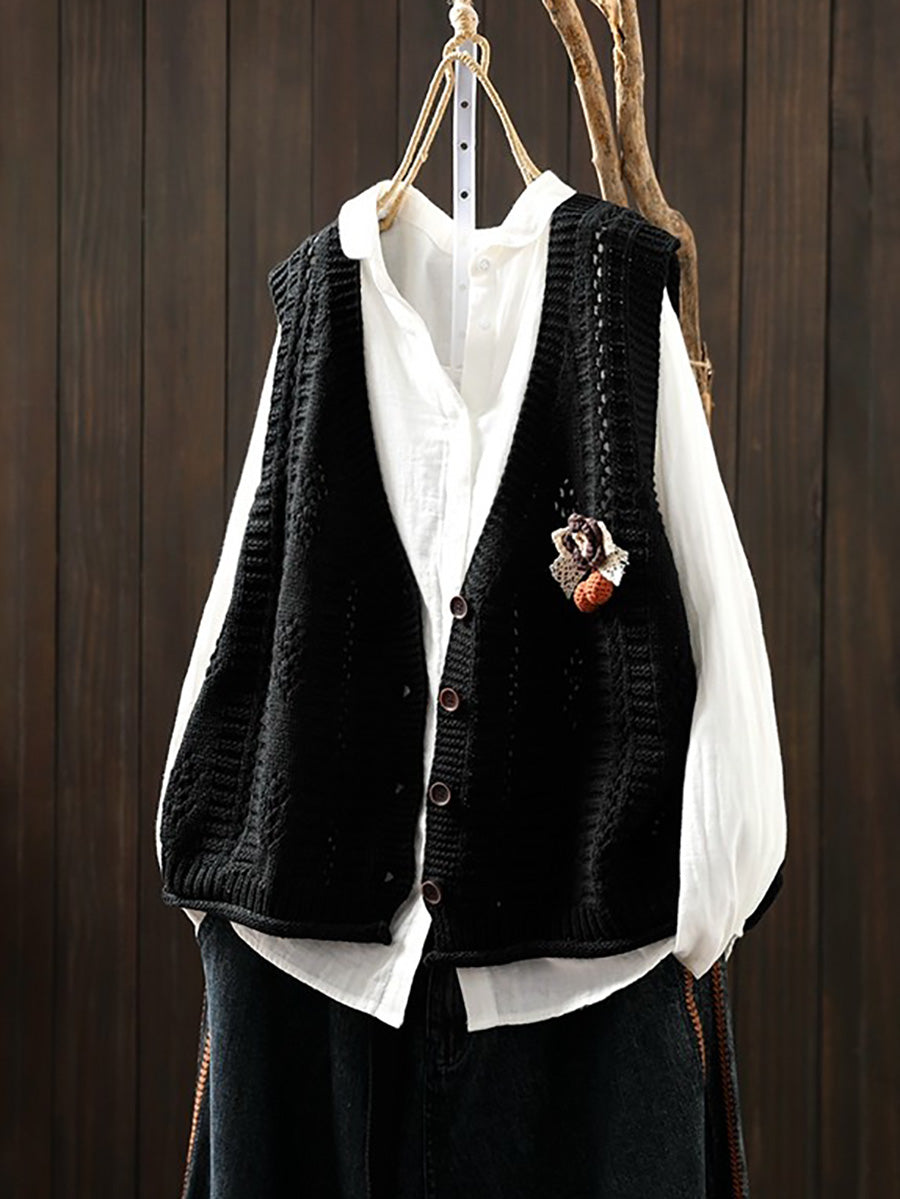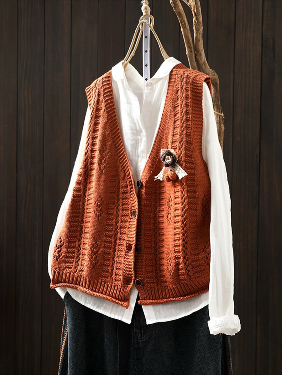 Chaleco de punto con cuello en V artístico de primavera para mujer