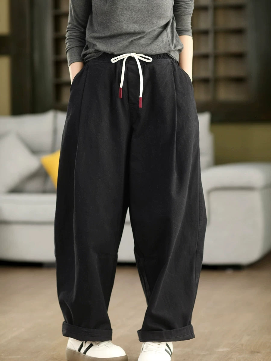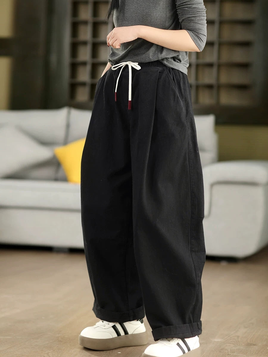 Pantalones harén 100 % algodón de color puro para mujer, informales, de primavera