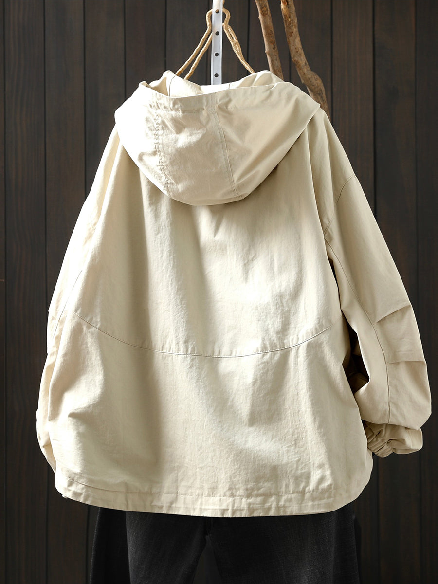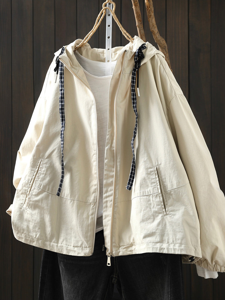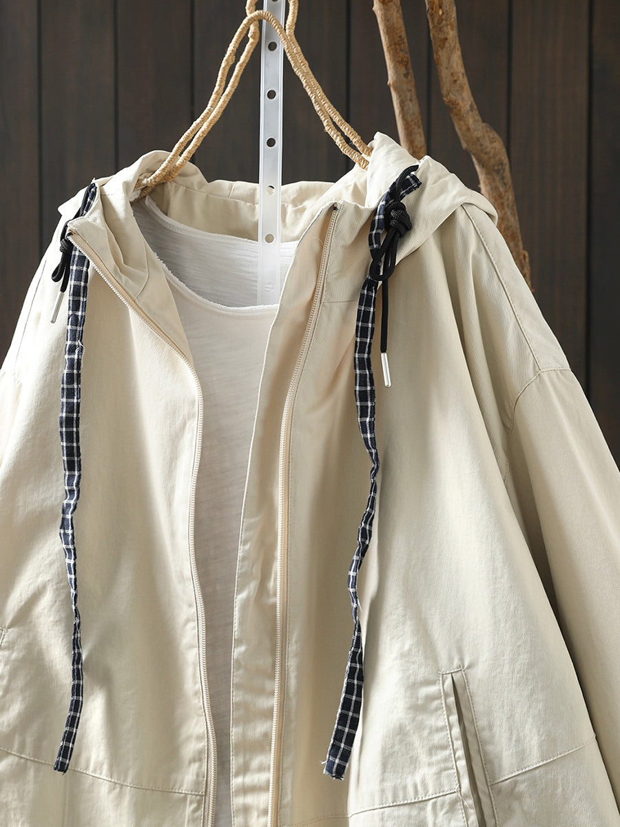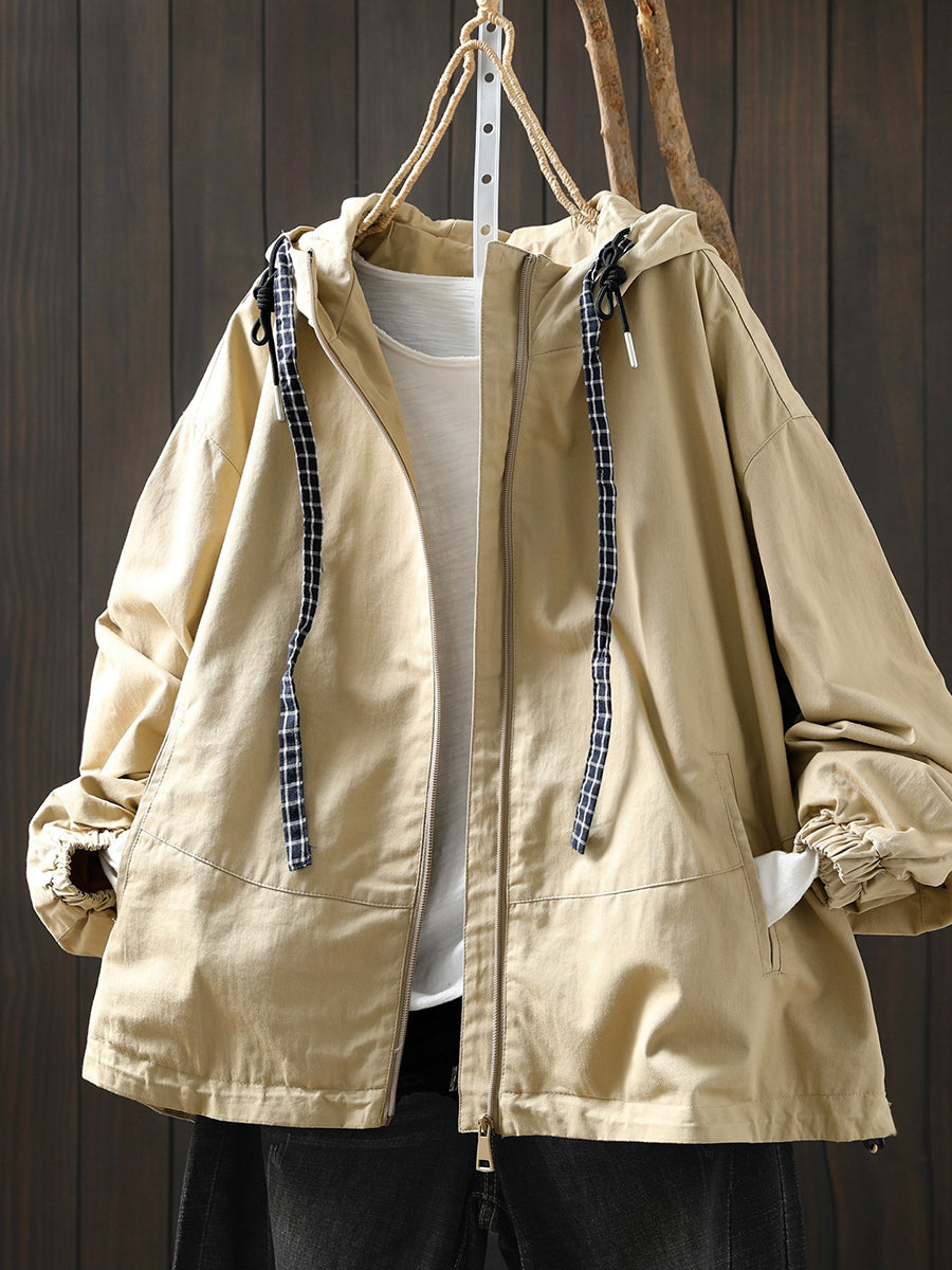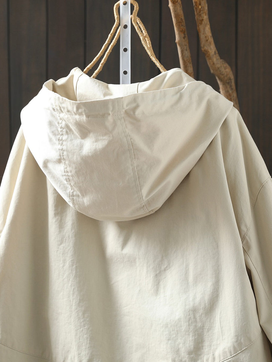 Abrigo con capucha 100 % algodón de color puro para mujer, informal, de primavera