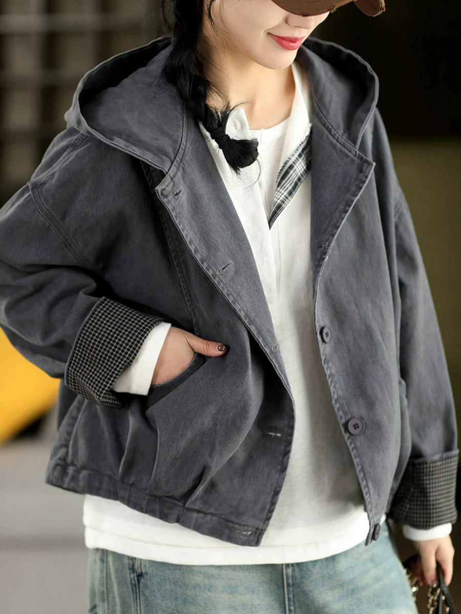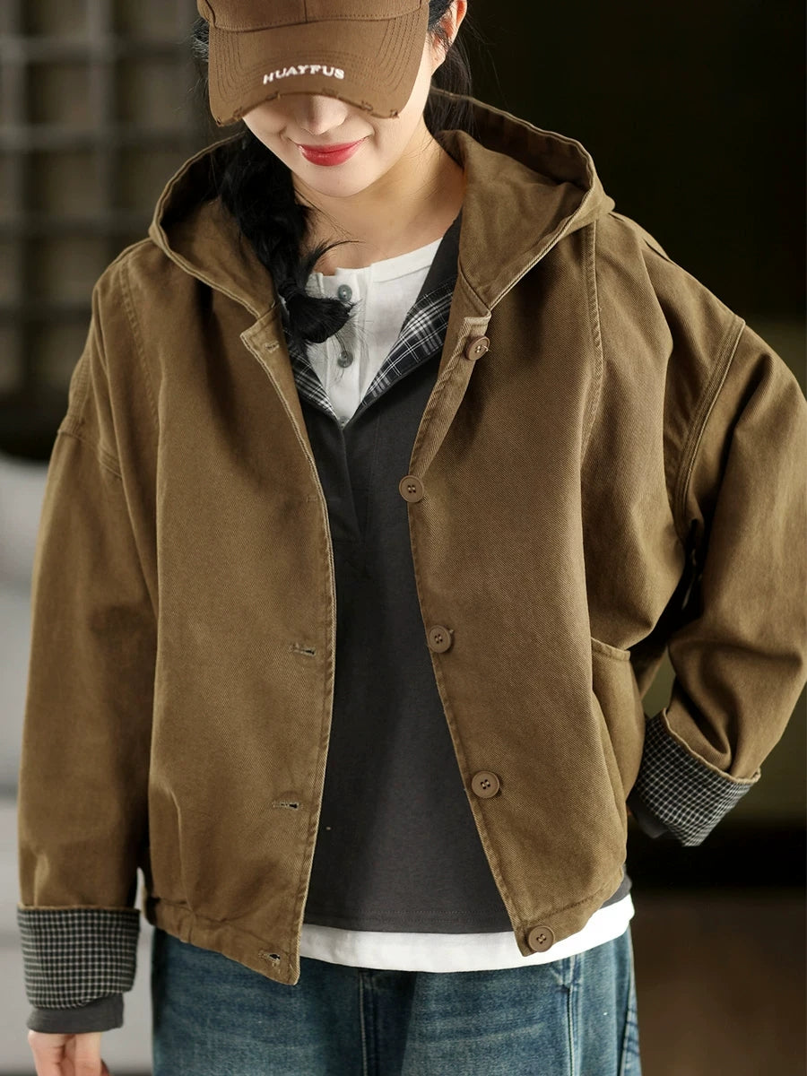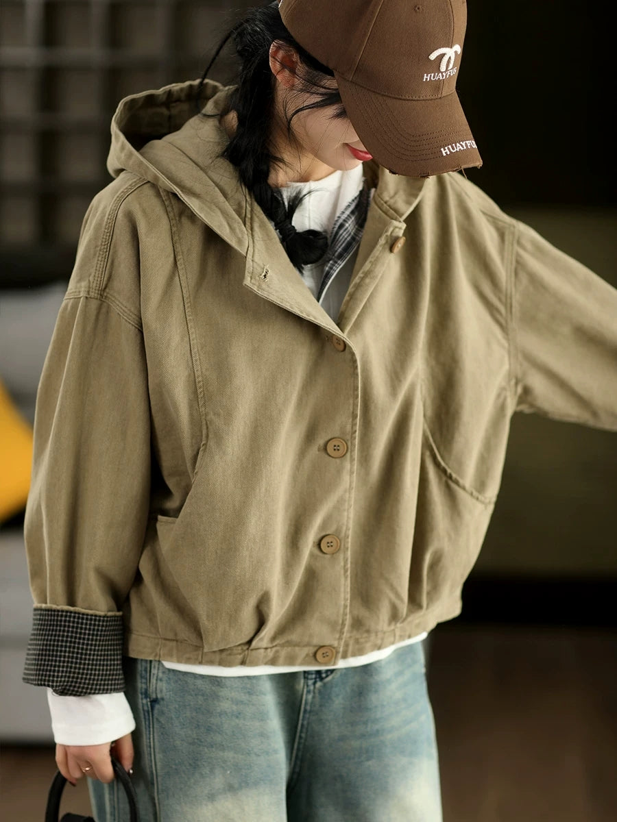 Abrigo con capucha 100 % algodón de color puro para mujer, informal, de primavera