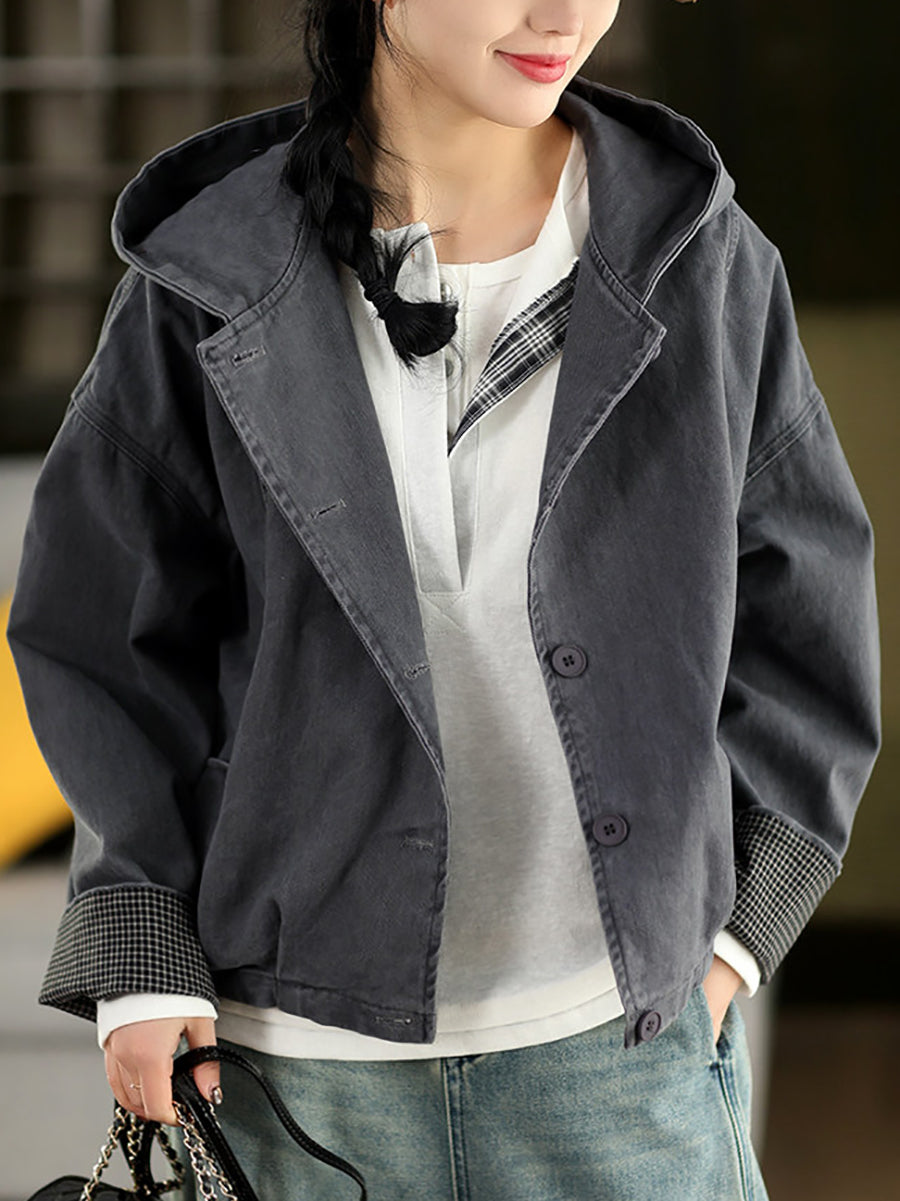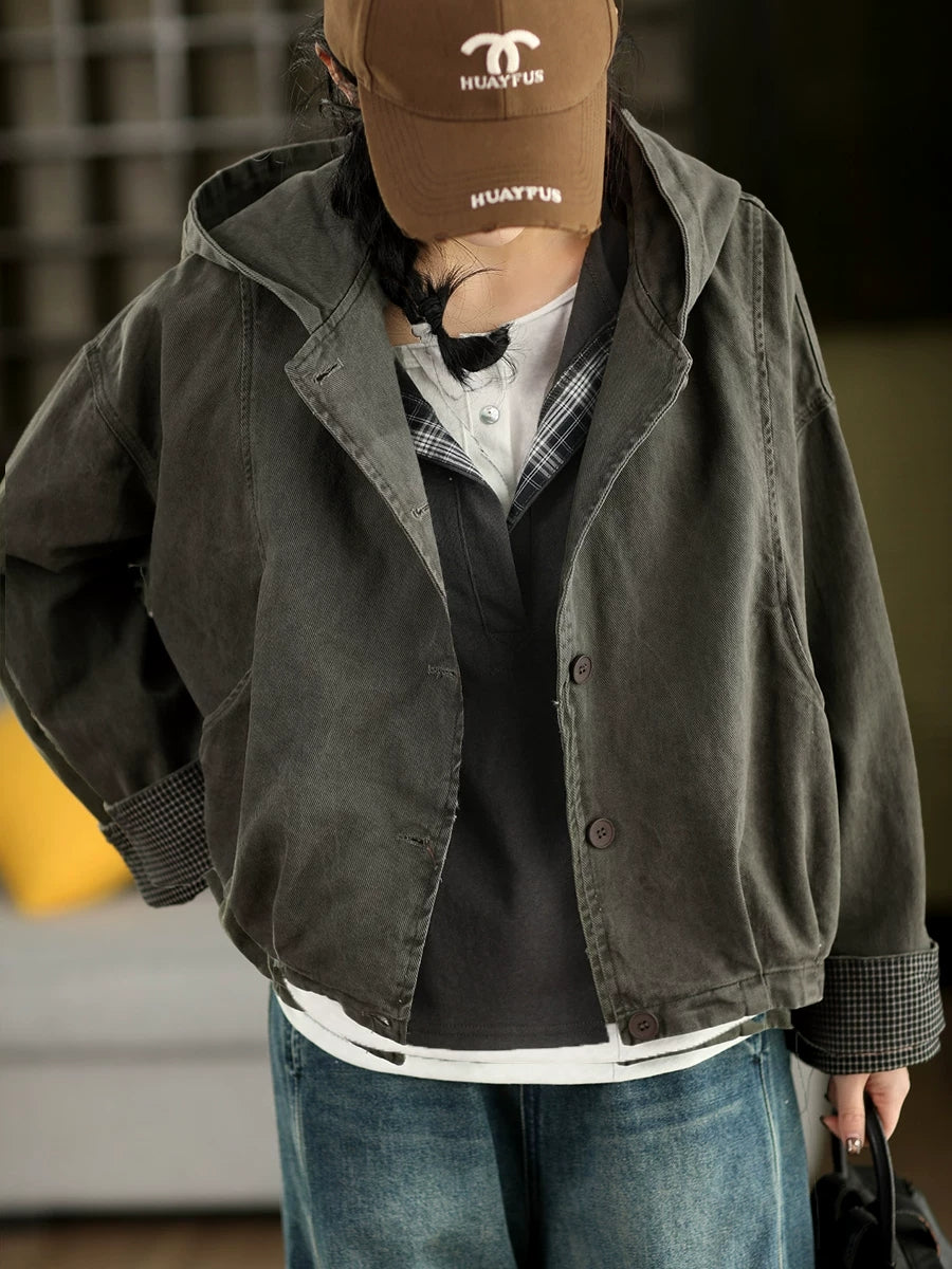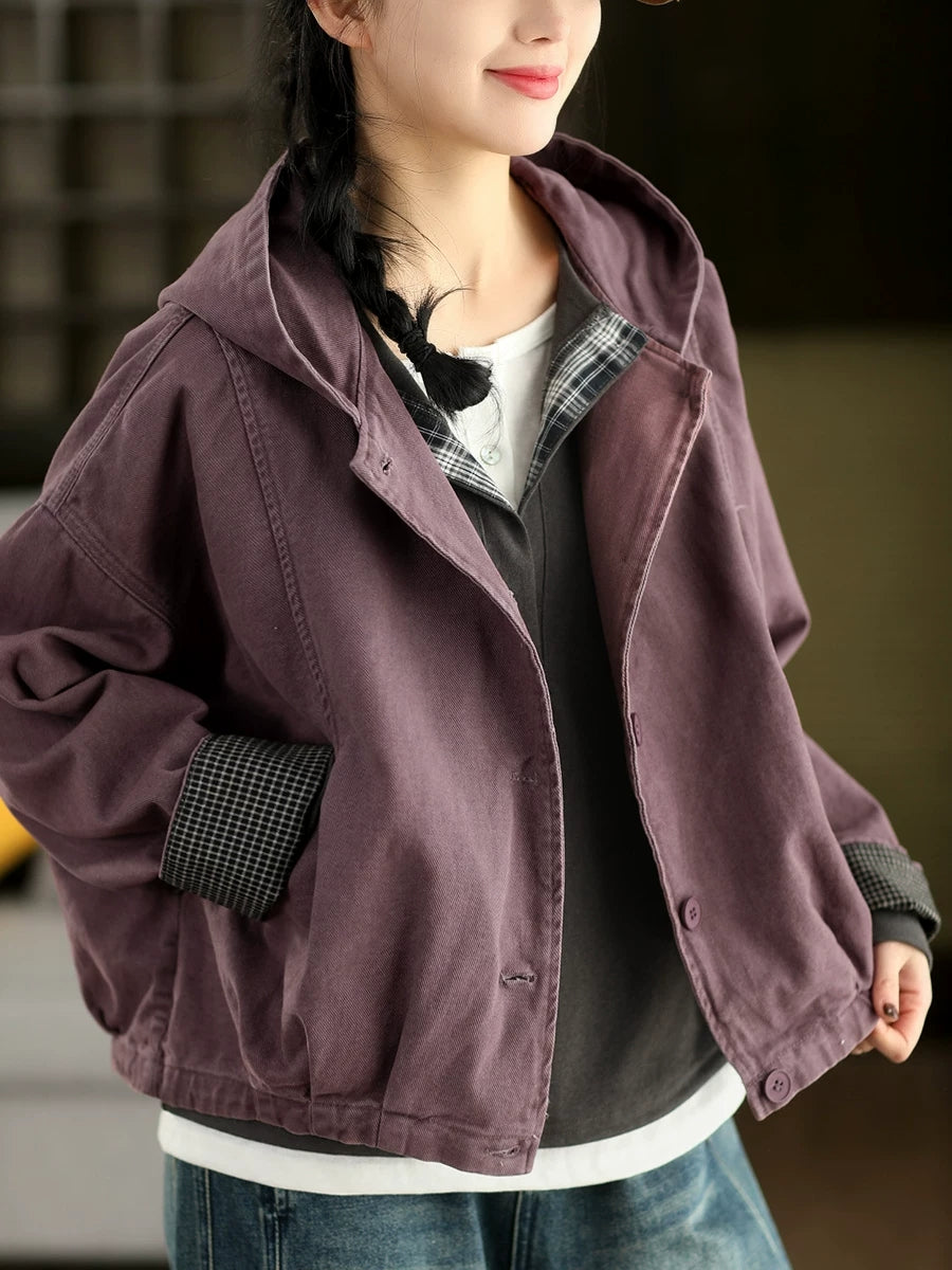 Abrigo con capucha 100 % algodón de color puro para mujer, informal, de primavera