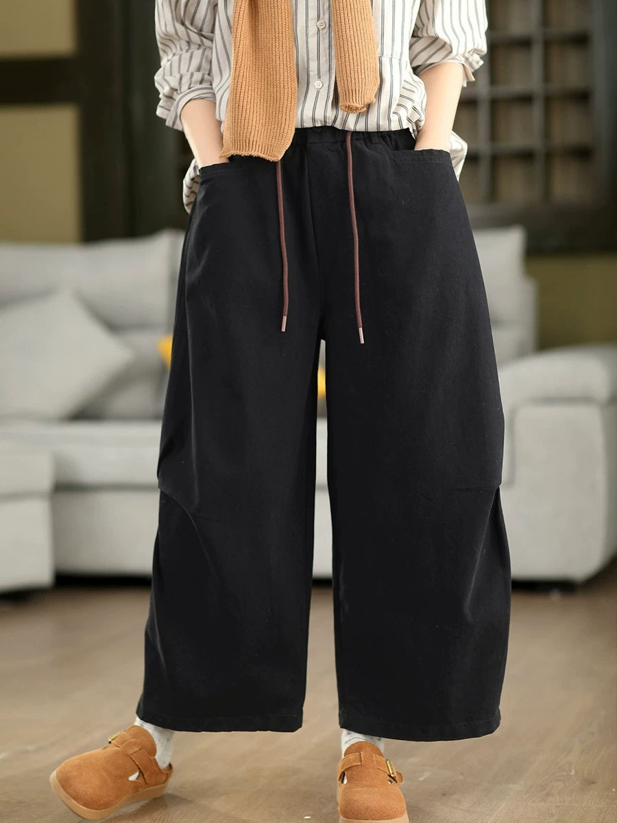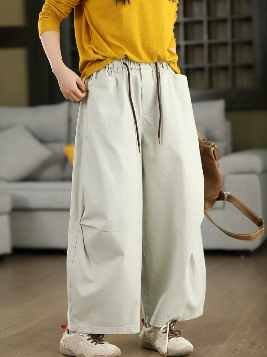 Pantalones rectos casuales de primavera para mujer, 100 % algodón, color puro