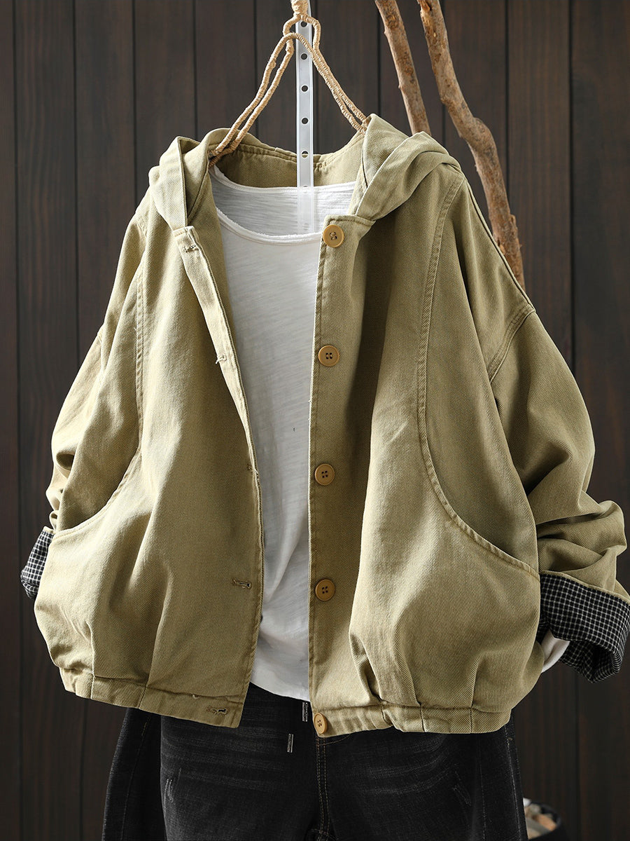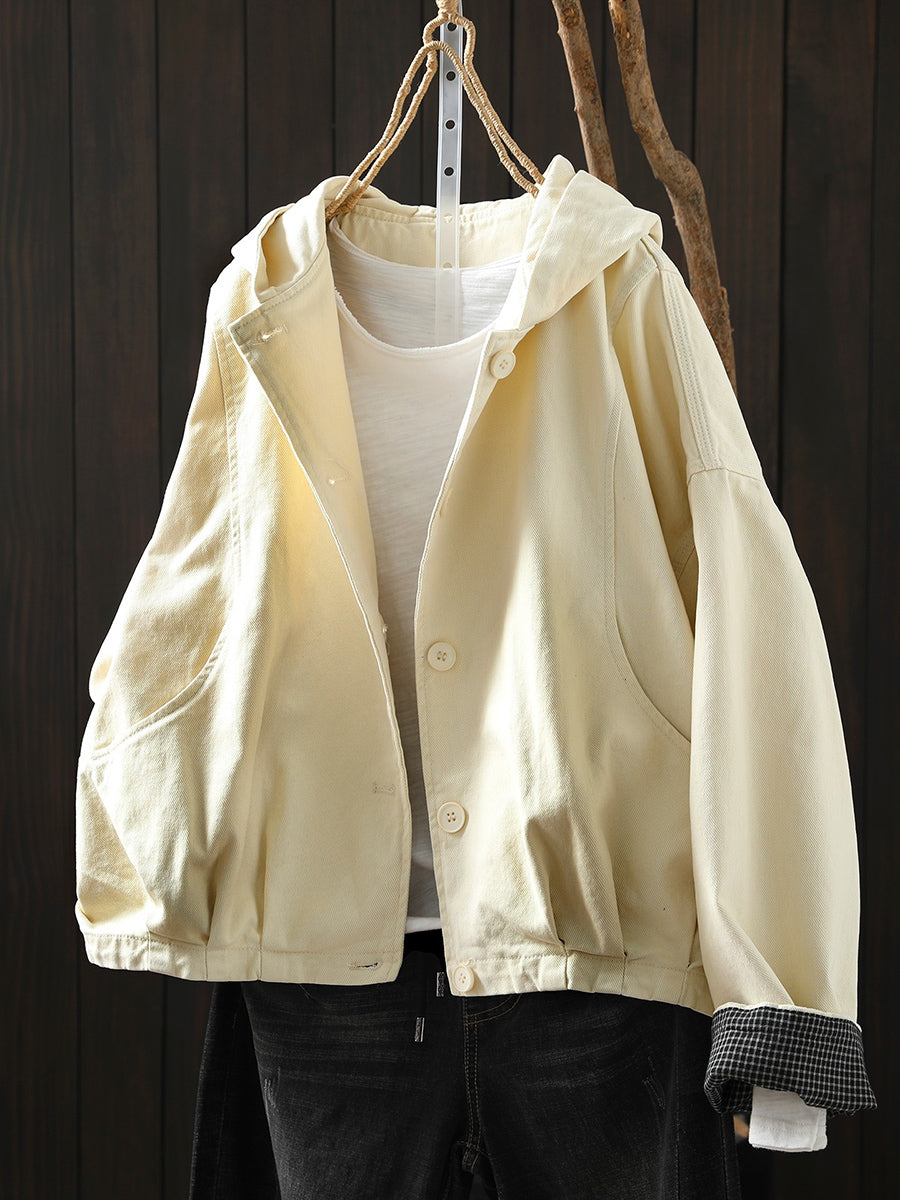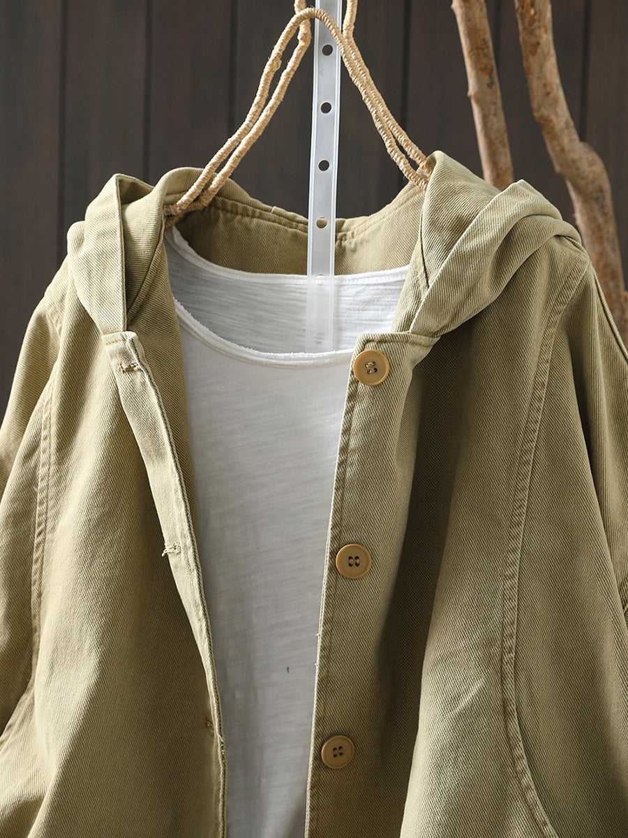 Abrigo informal de algodón con capucha de color puro para mujer, primavera