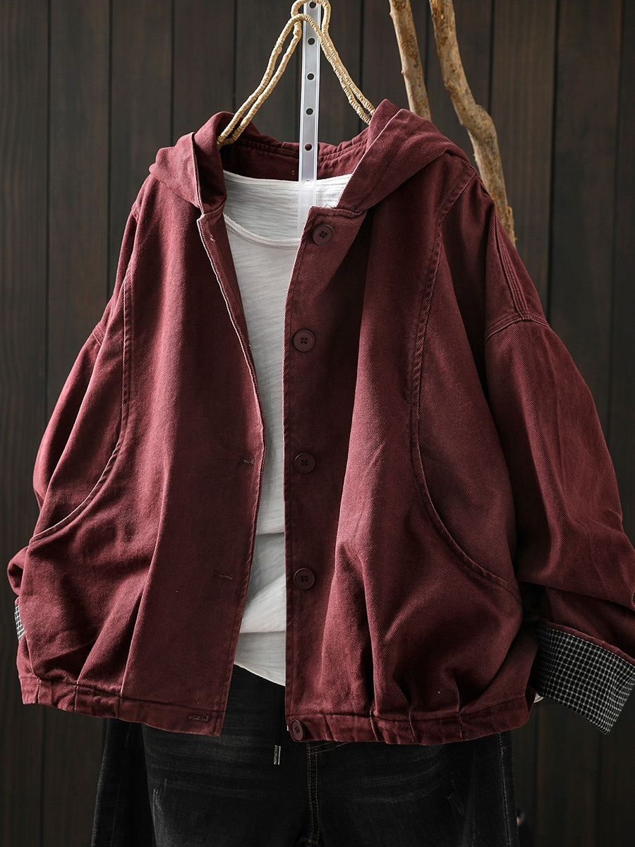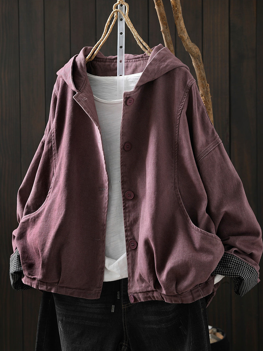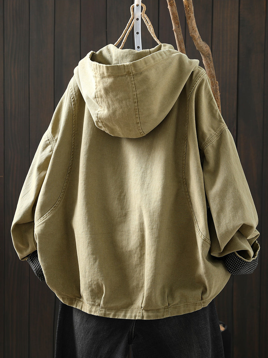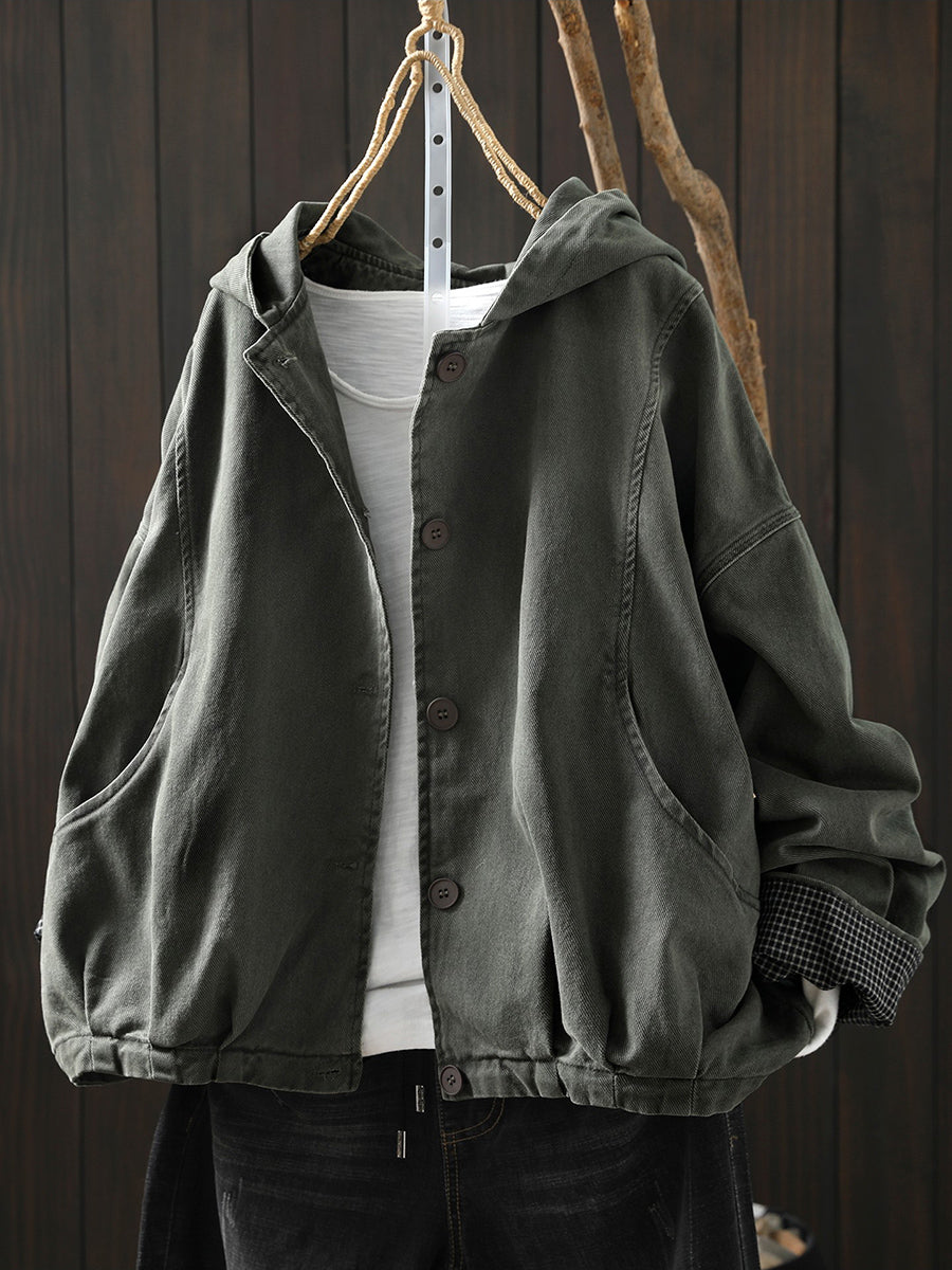 Abrigo informal de algodón con capucha de color puro para mujer, primavera