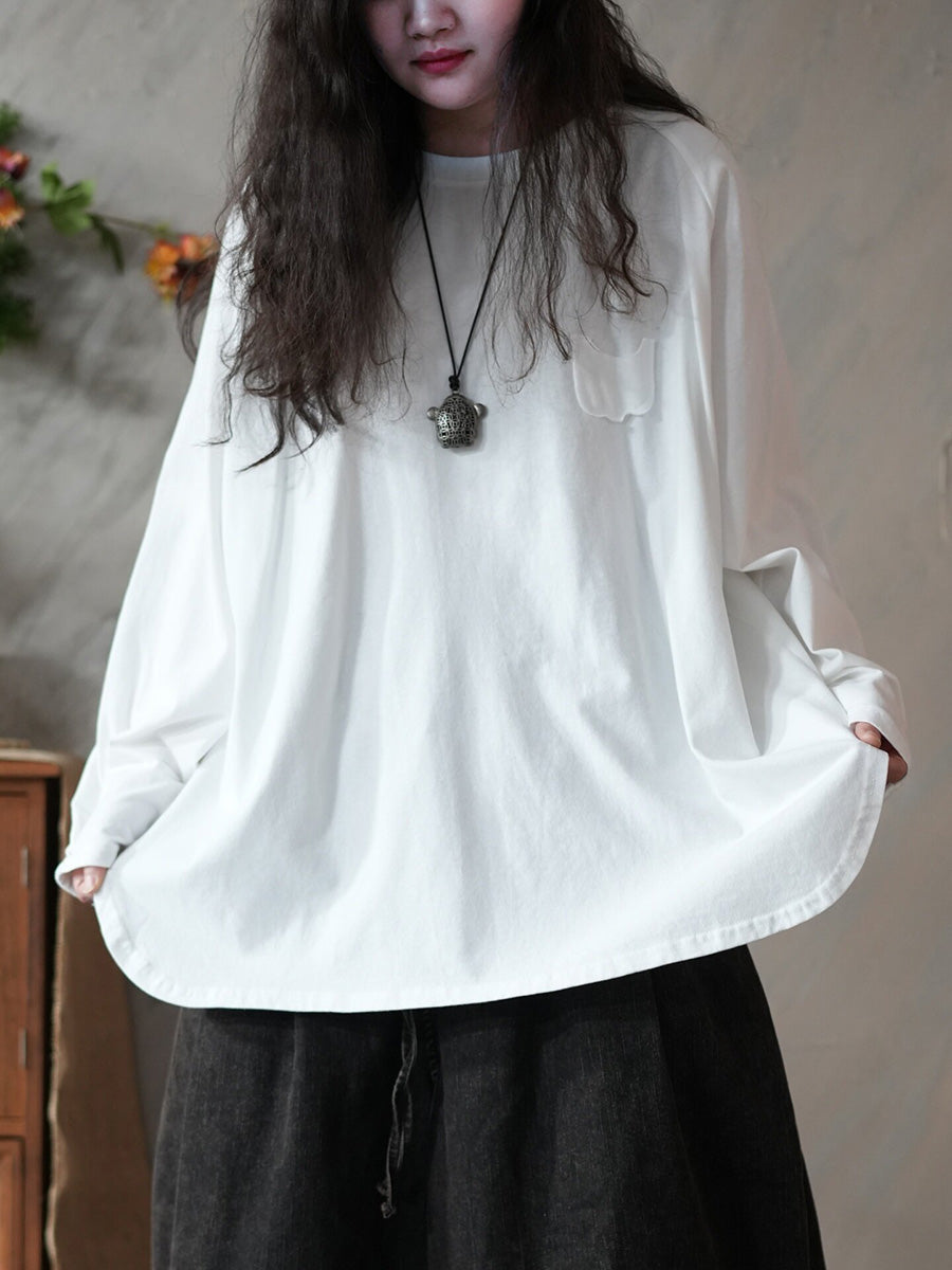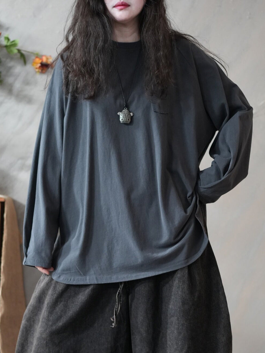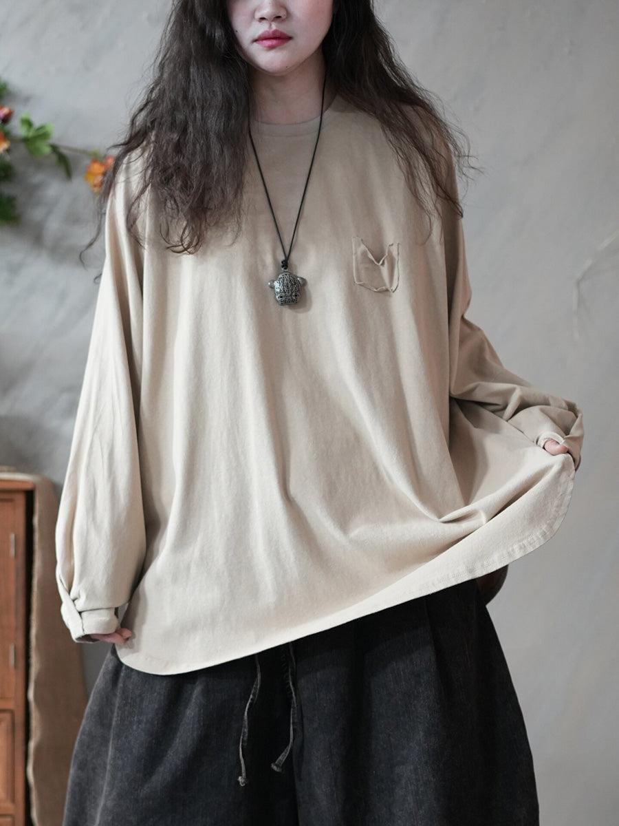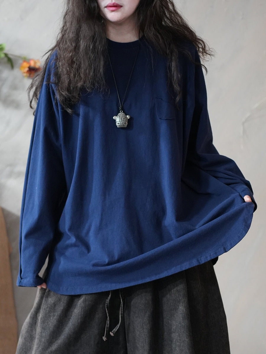 Blusa informal de primavera para mujer, color puro, con cuello redondo