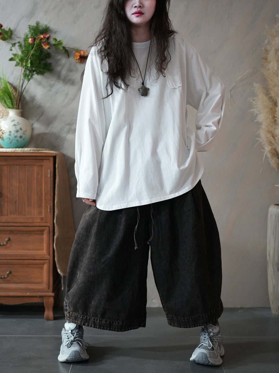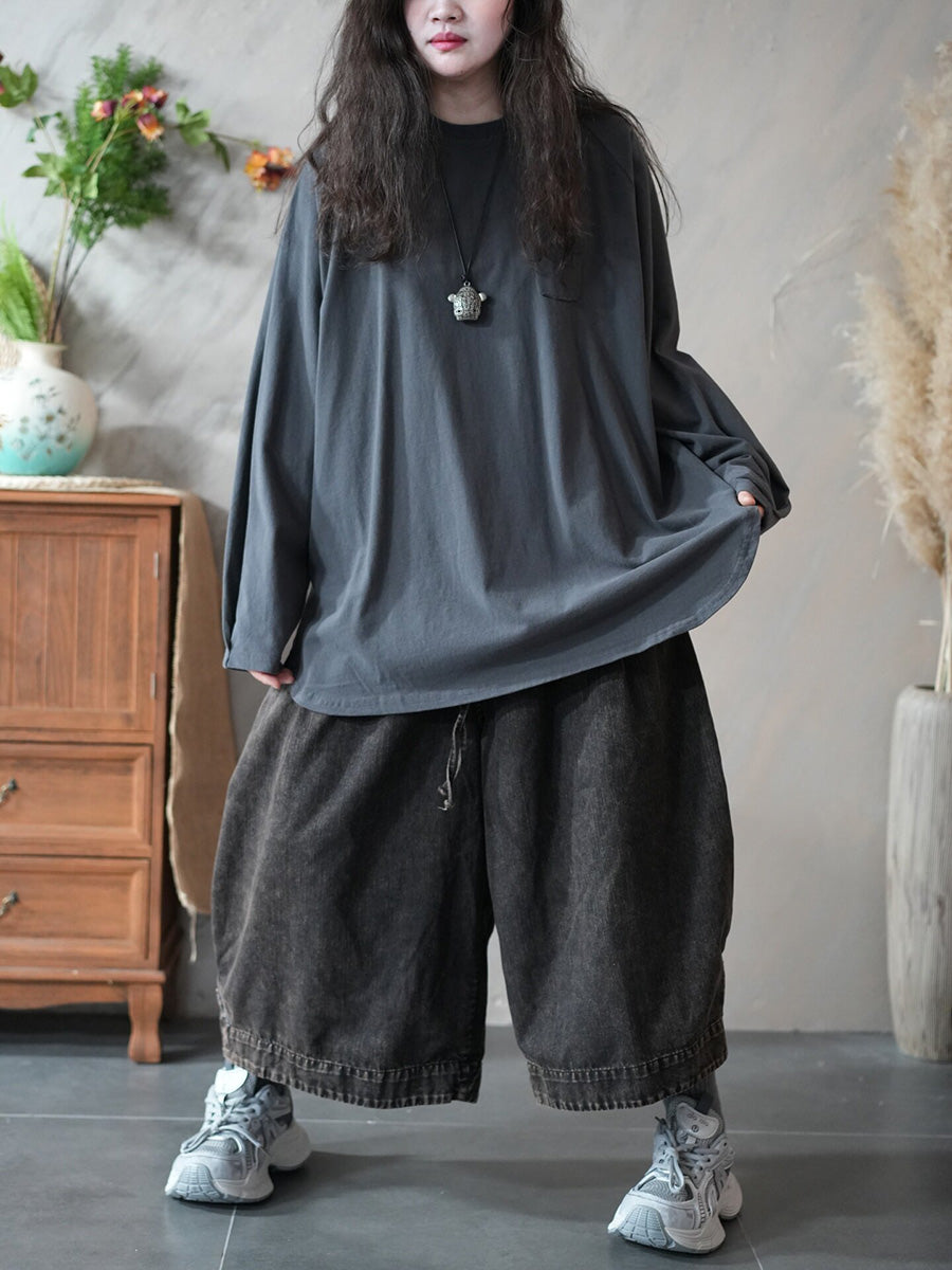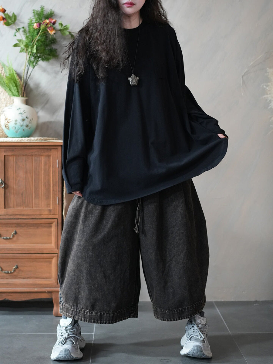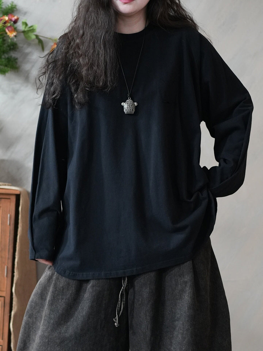 Blusa informal de primavera para mujer, color puro, con cuello redondo