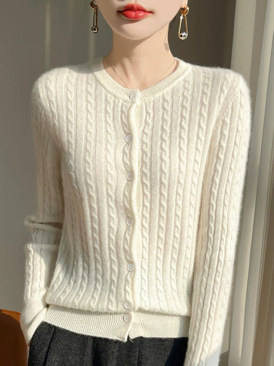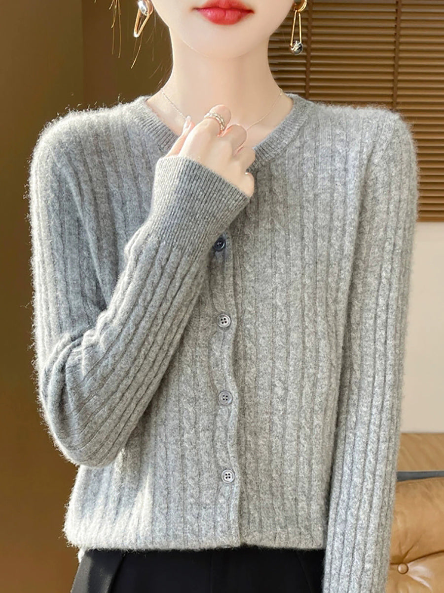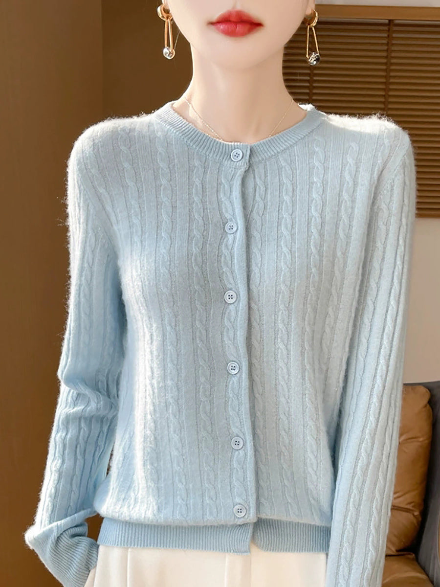 Suéter casual de primavera para mujer, color puro, cuello redondo