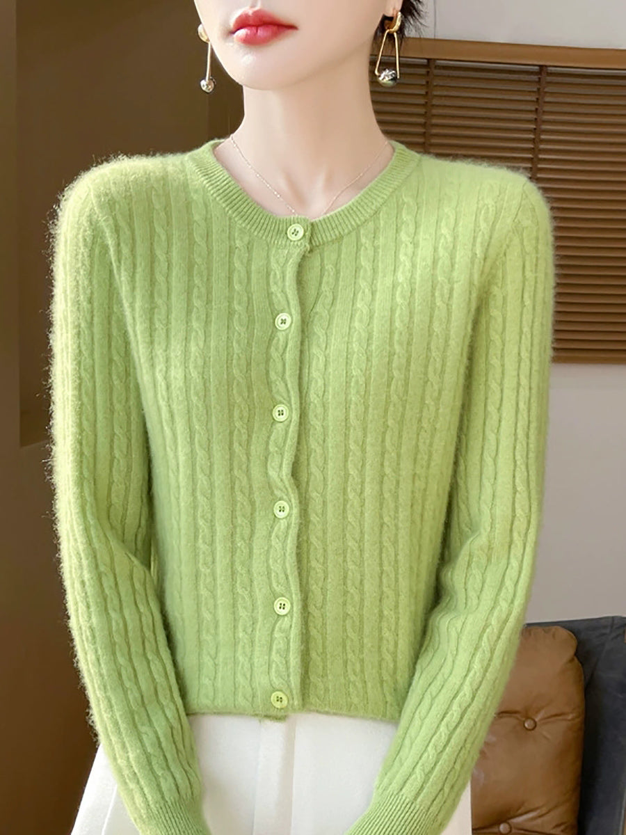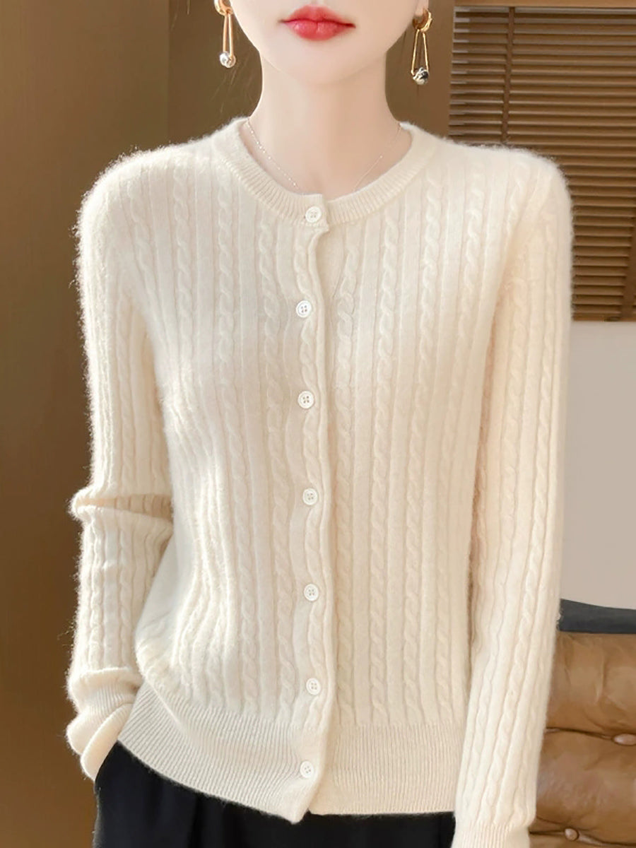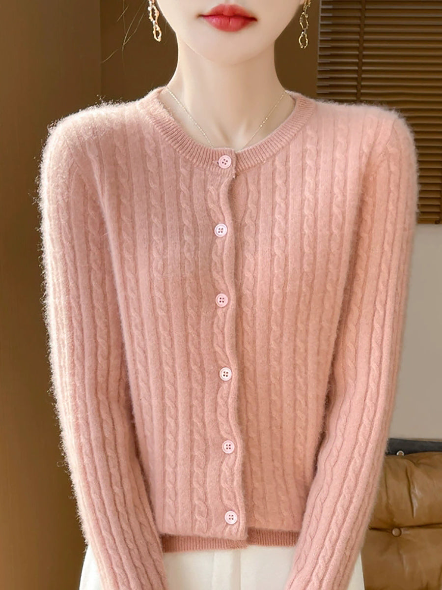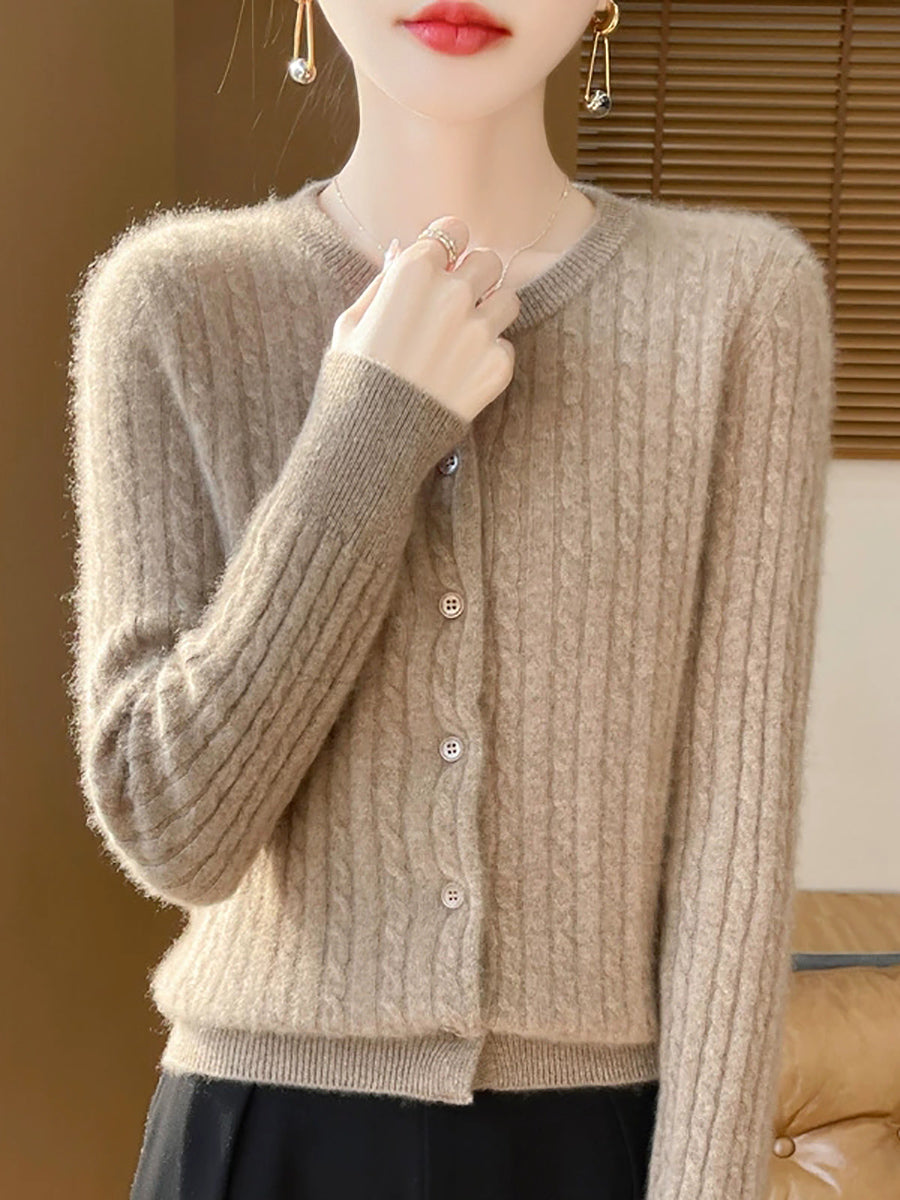 Suéter casual de primavera para mujer, color puro, cuello redondo