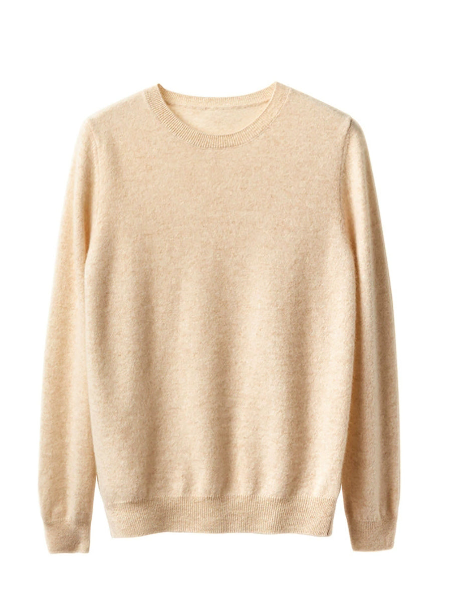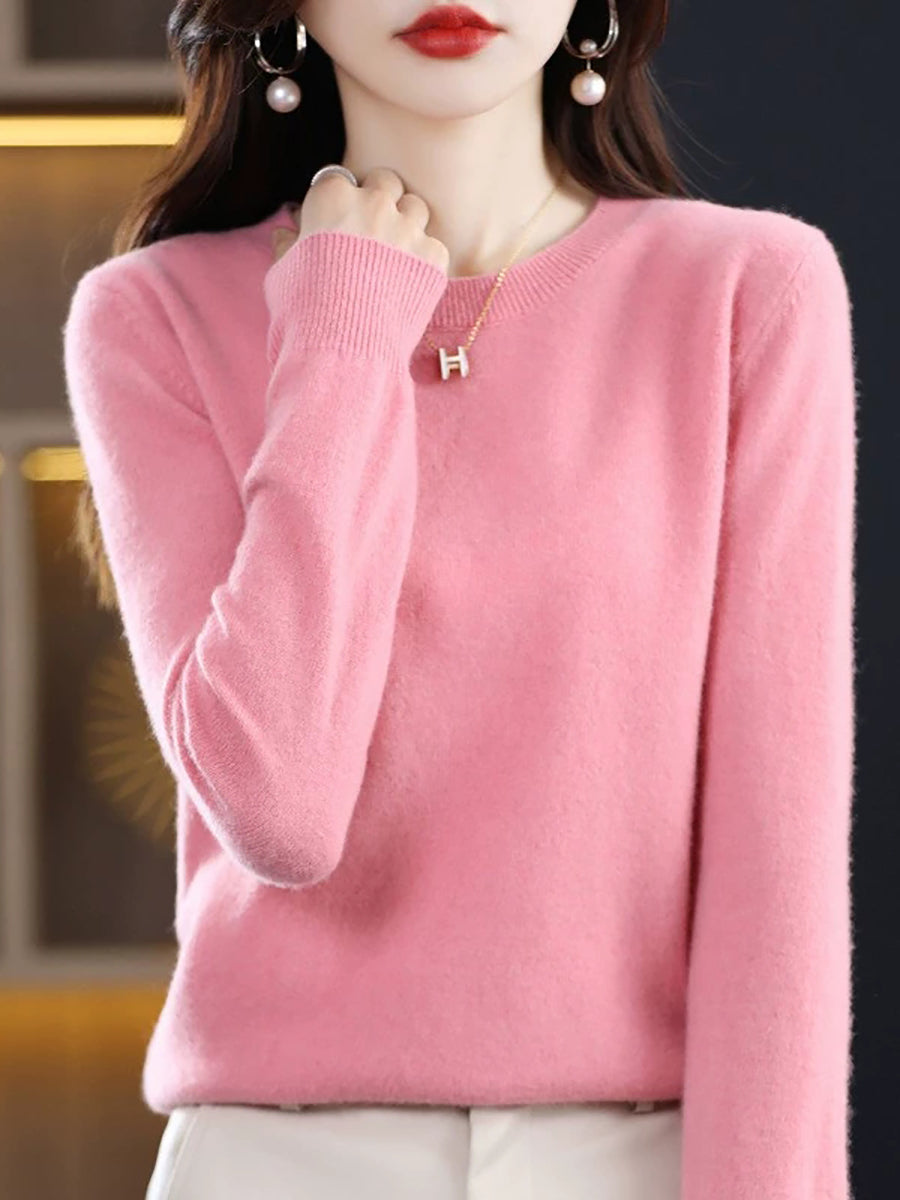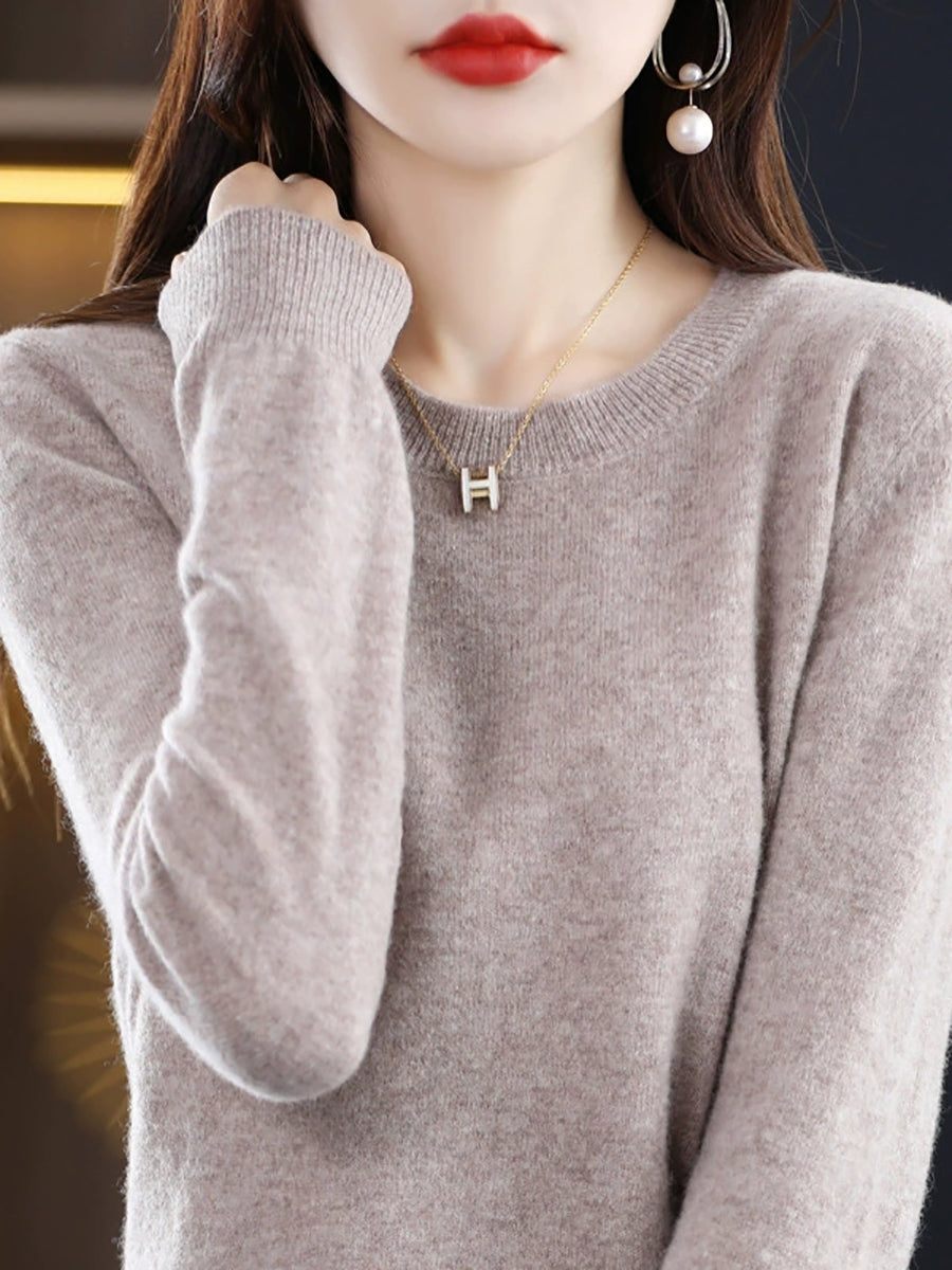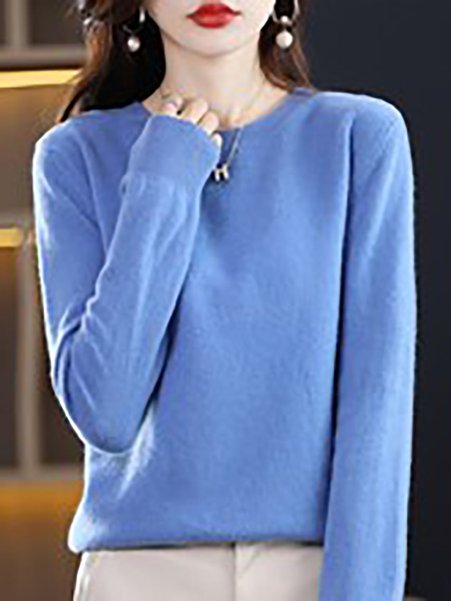 Suéter casual de primavera para mujer, color puro, cuello redondo