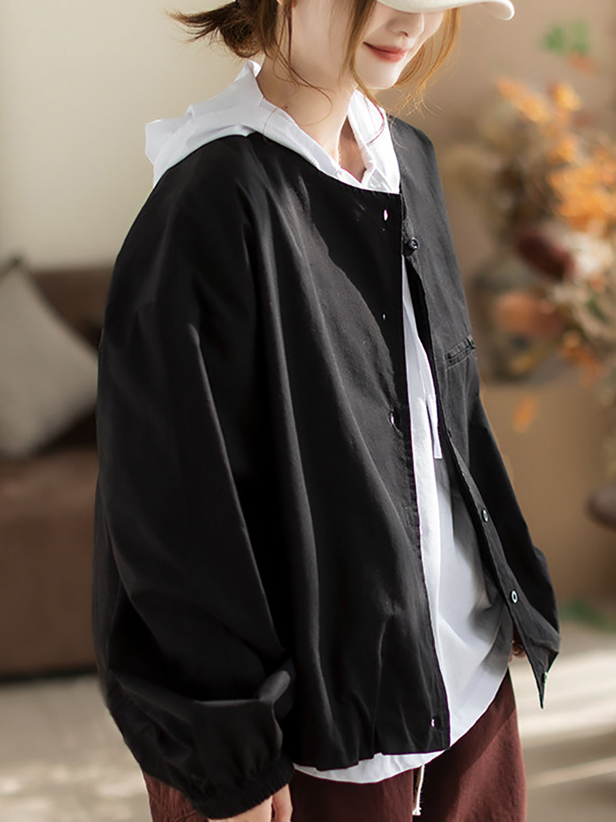 Camisa de algodón con cuello redondo y color puro para mujer, primavera