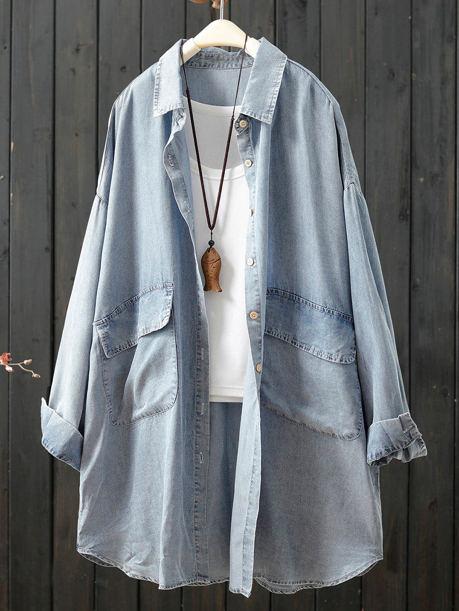 Camisa de algodón de color puro para mujer, abrigo de primavera