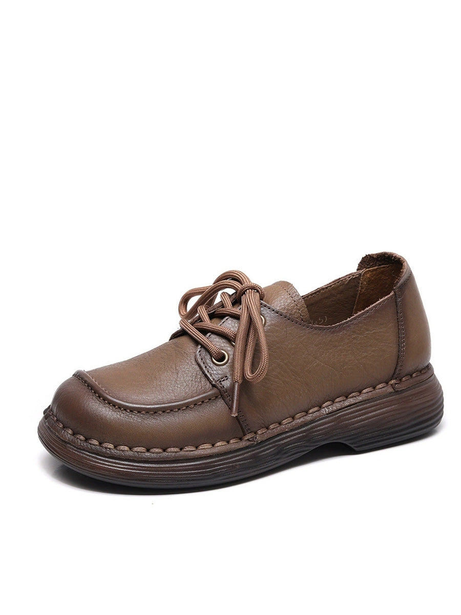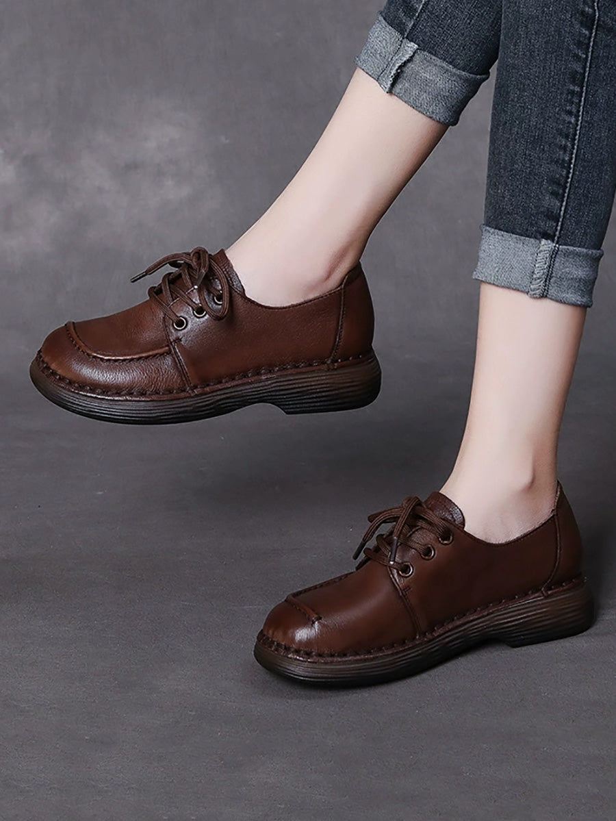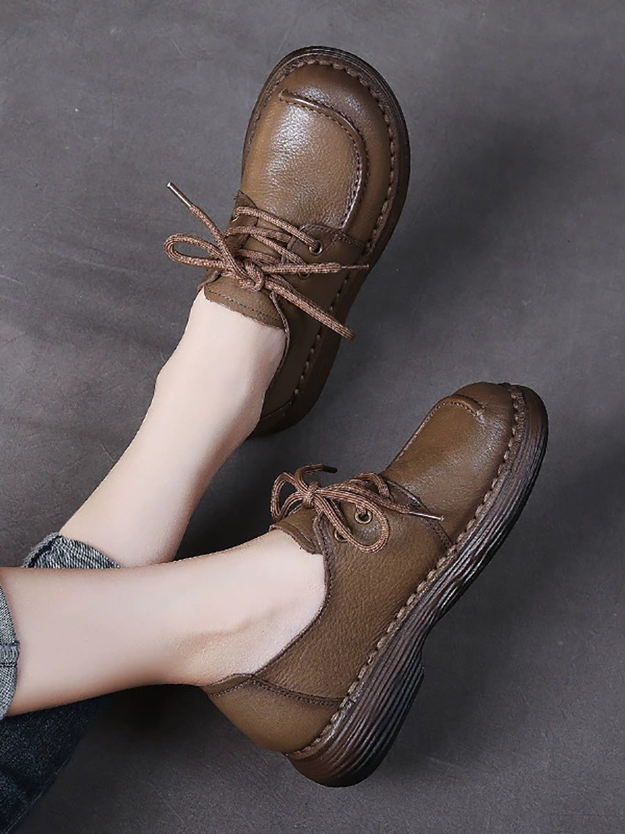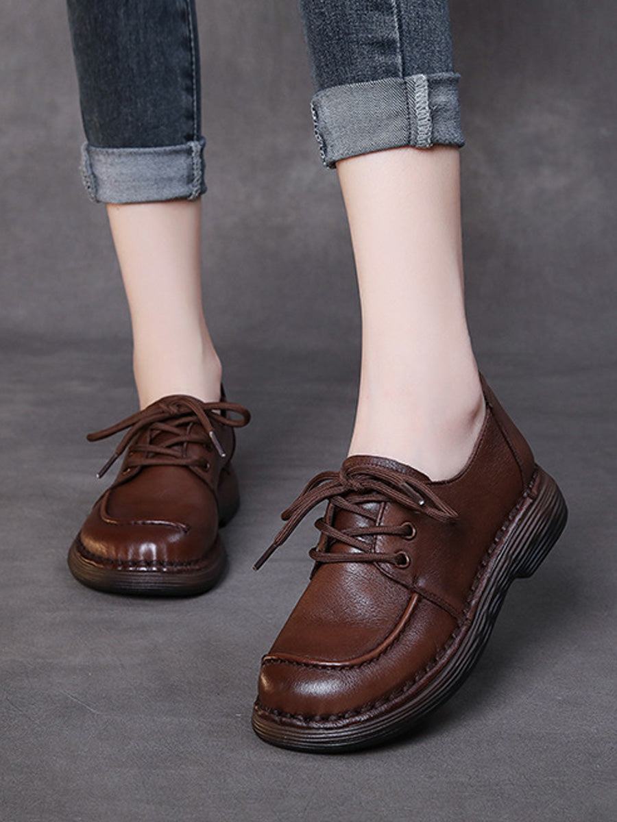 Zapatos planos de piel auténtica de color puro para mujer, primavera