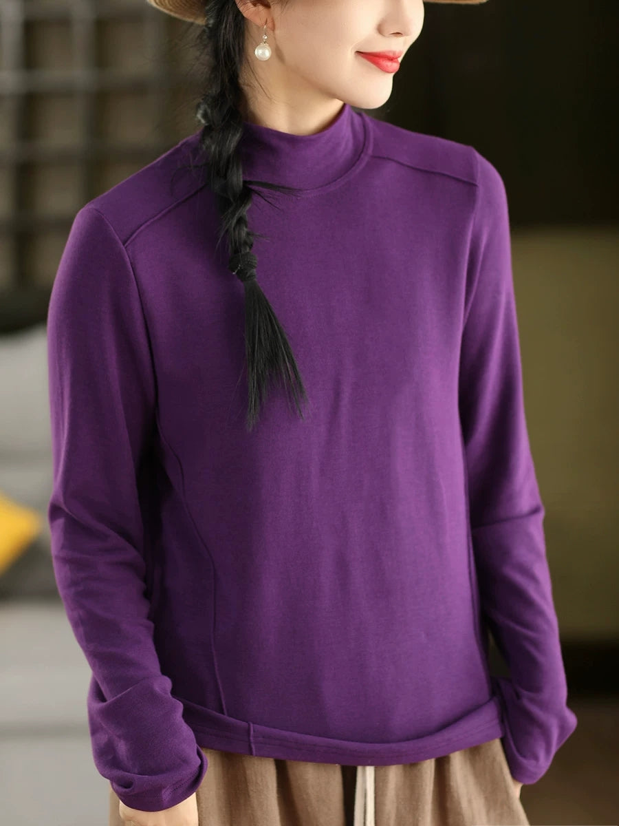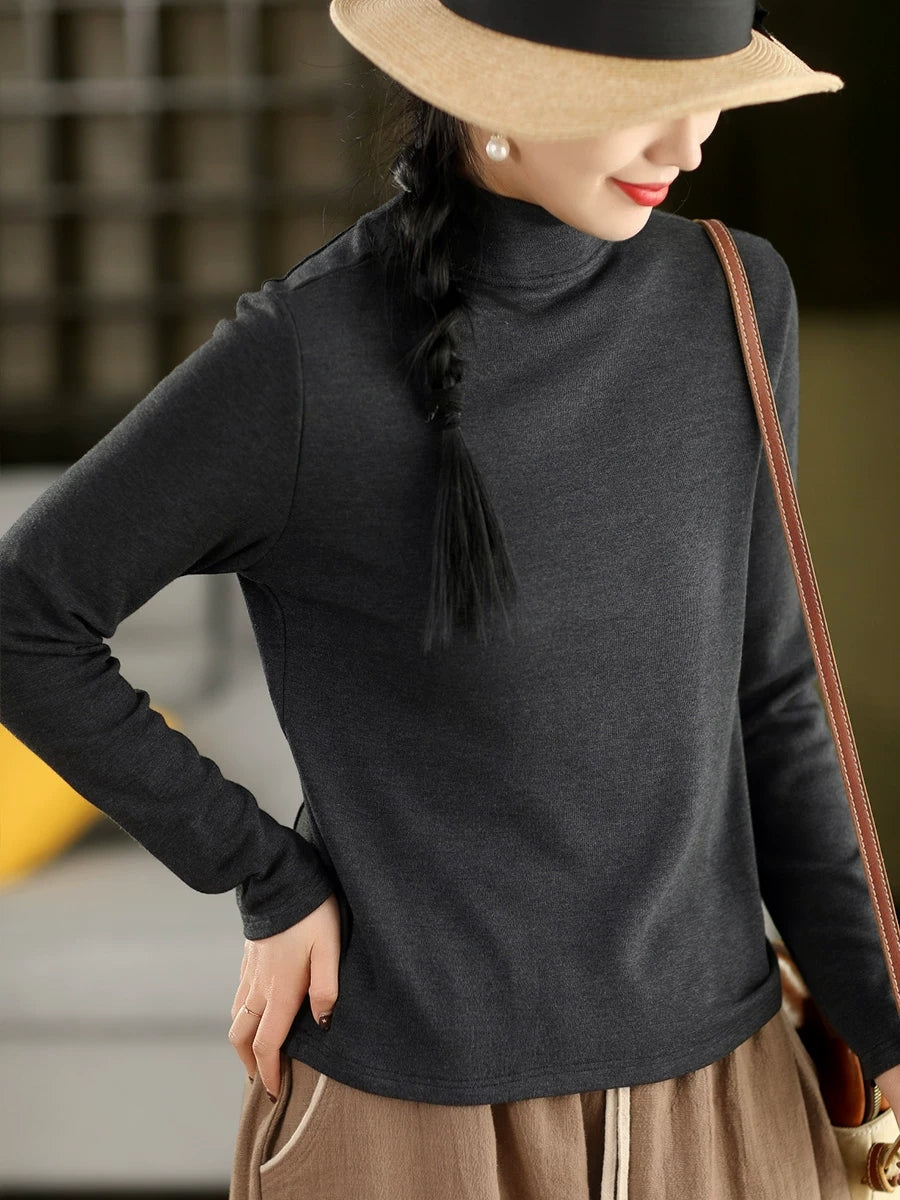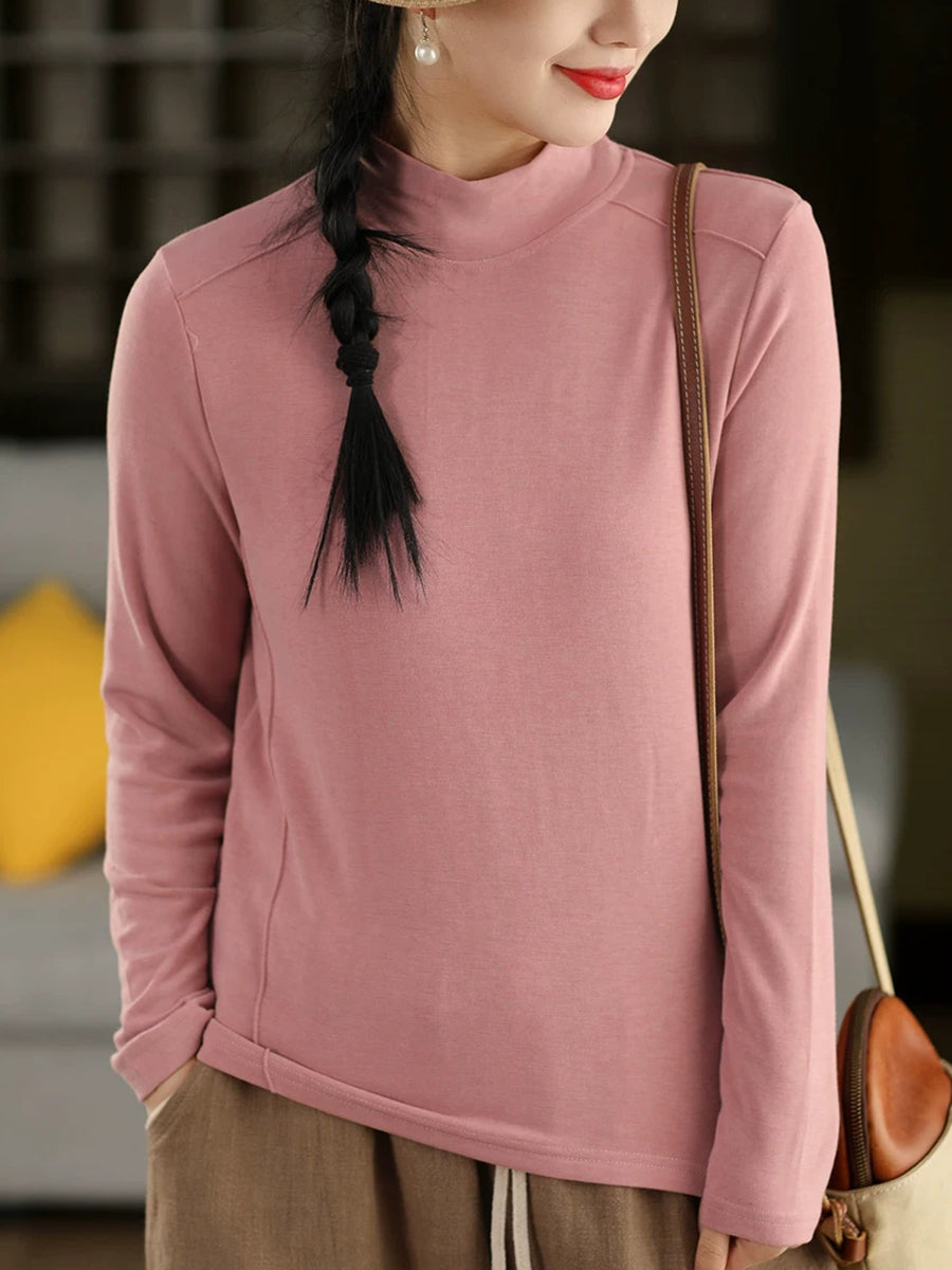 Blusa de cuello alto medio de color puro para mujer de primavera